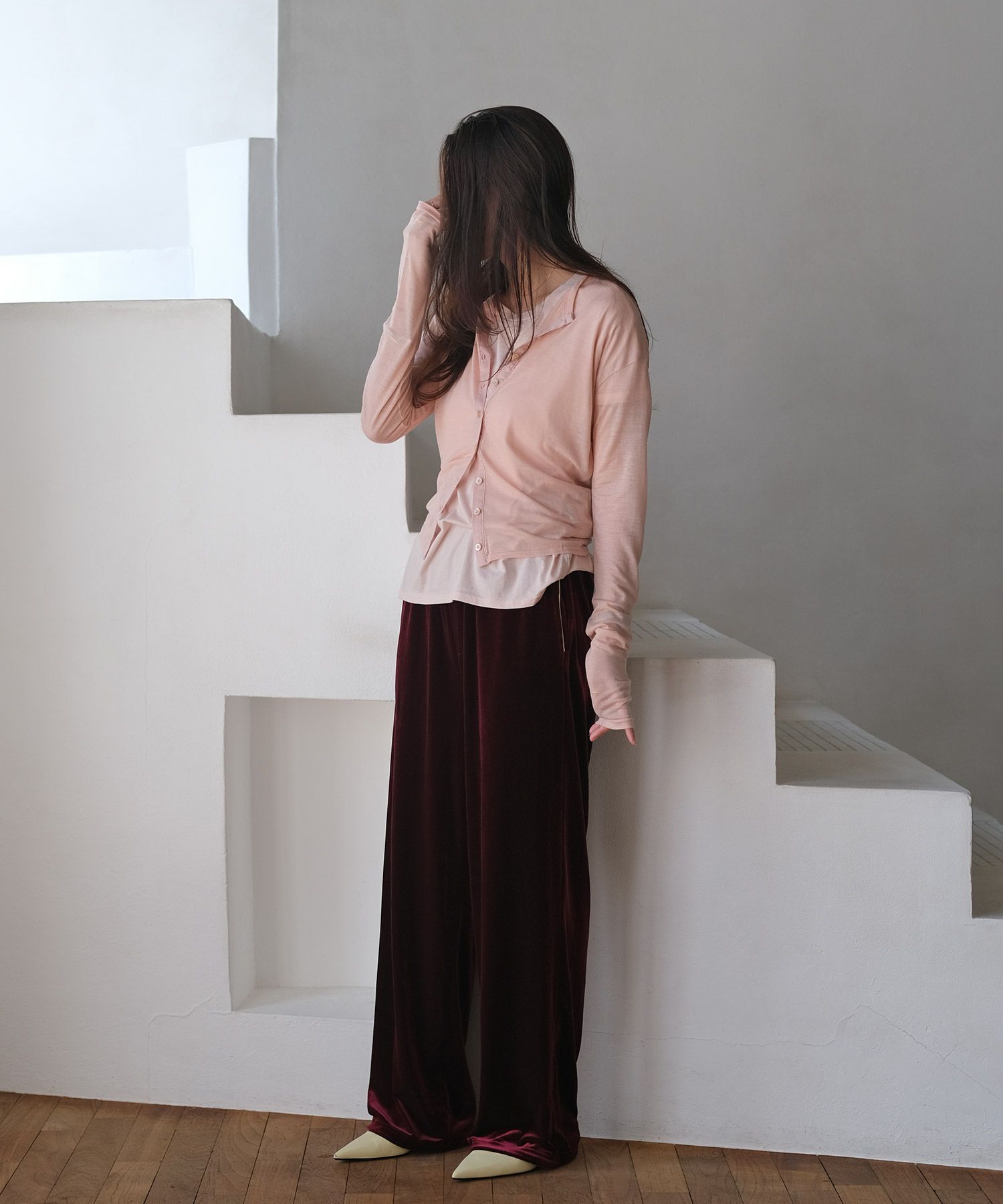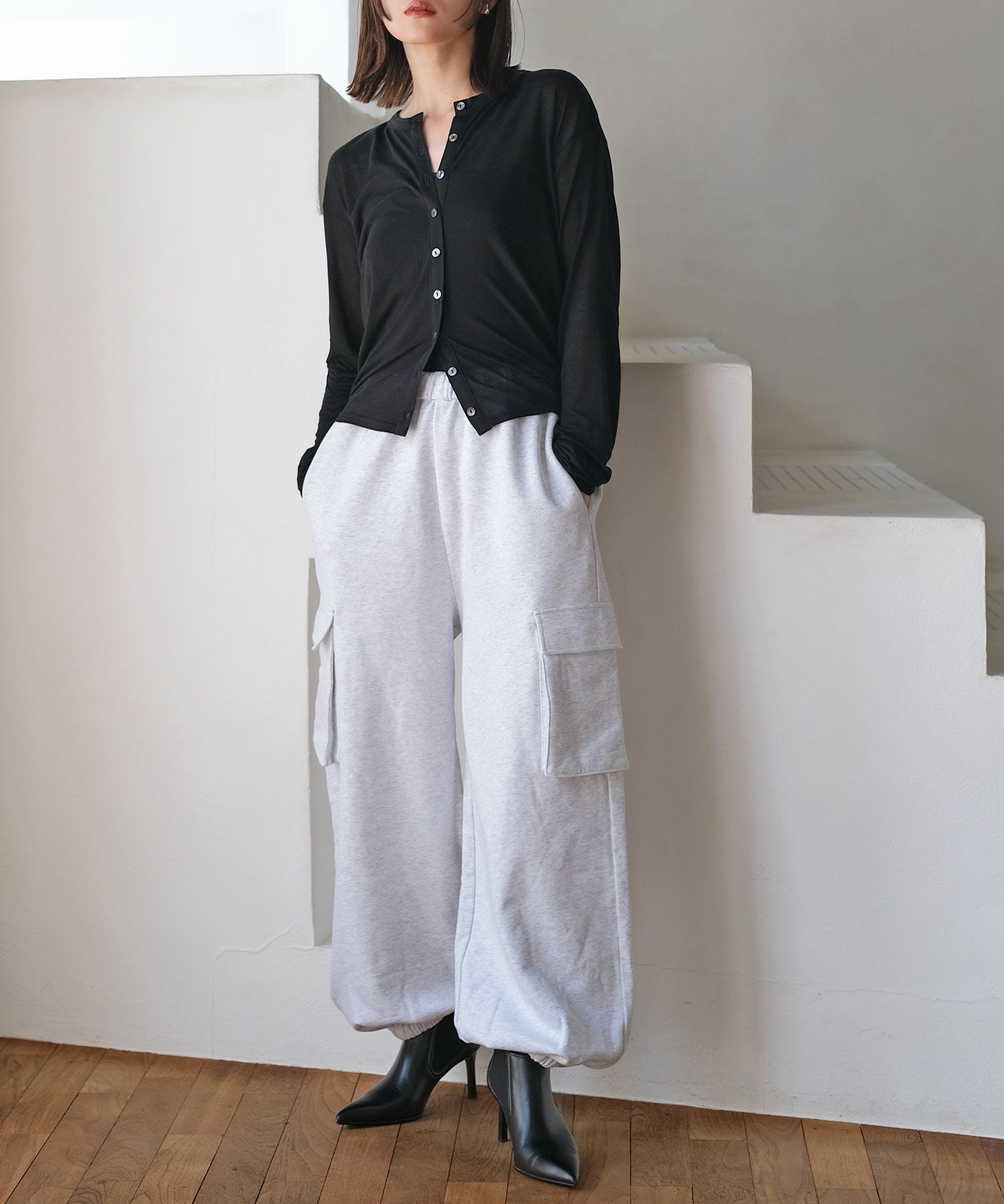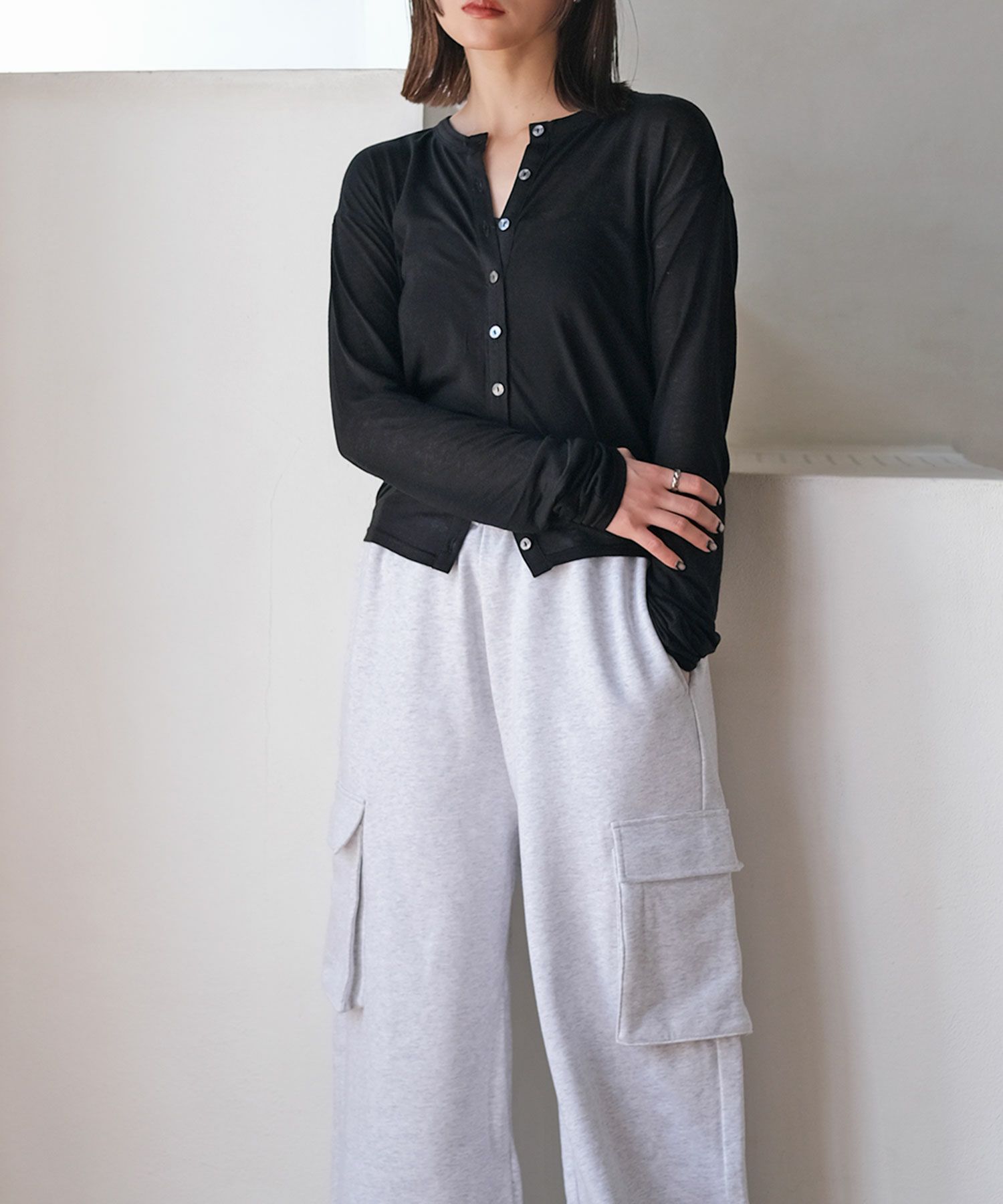 さり気ない肌見せができるシアーのカットソーカーディガン。