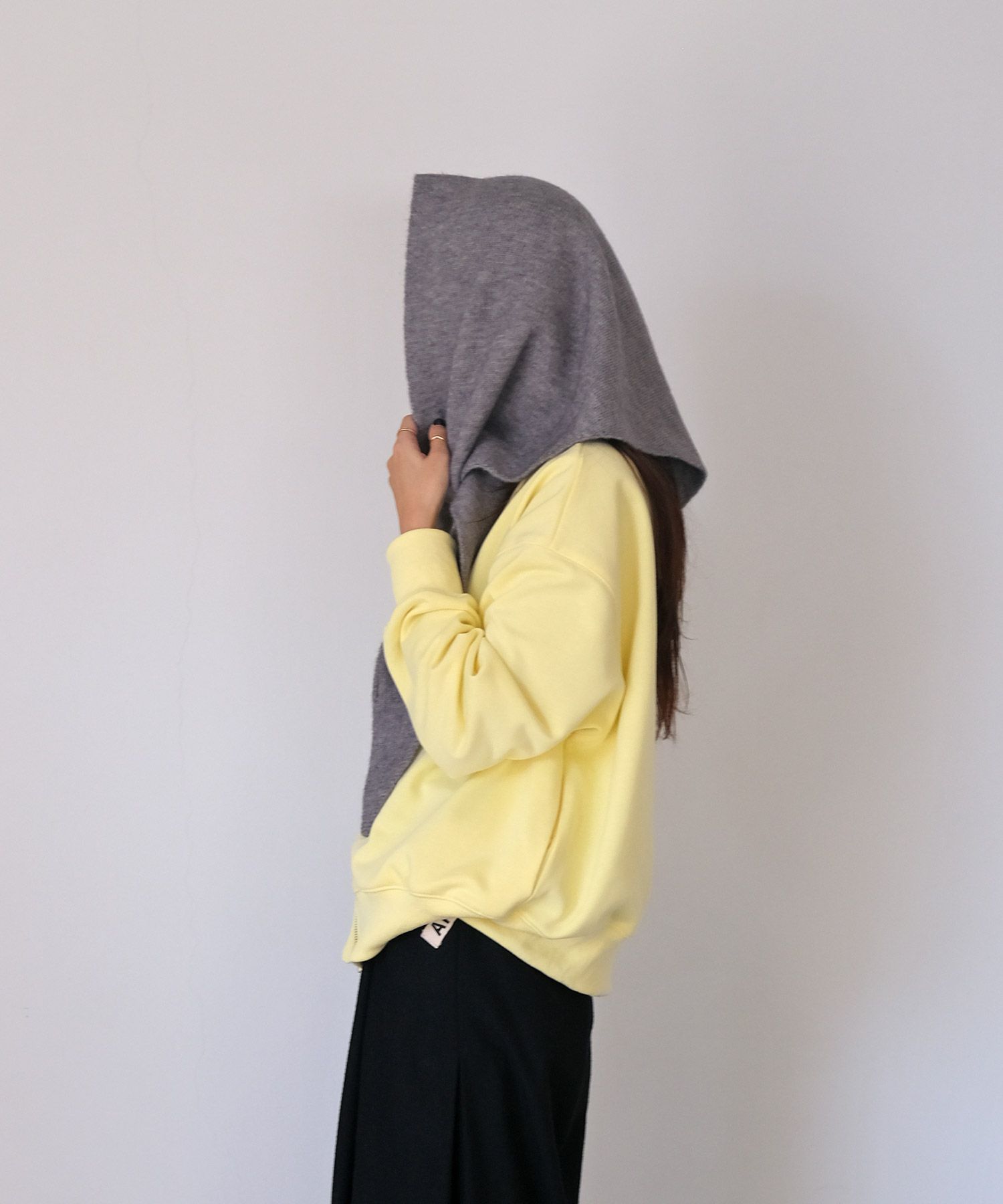 後ろ襟にはニットのブランドネームを入れ、バックスタイルにアクセントをプラス。