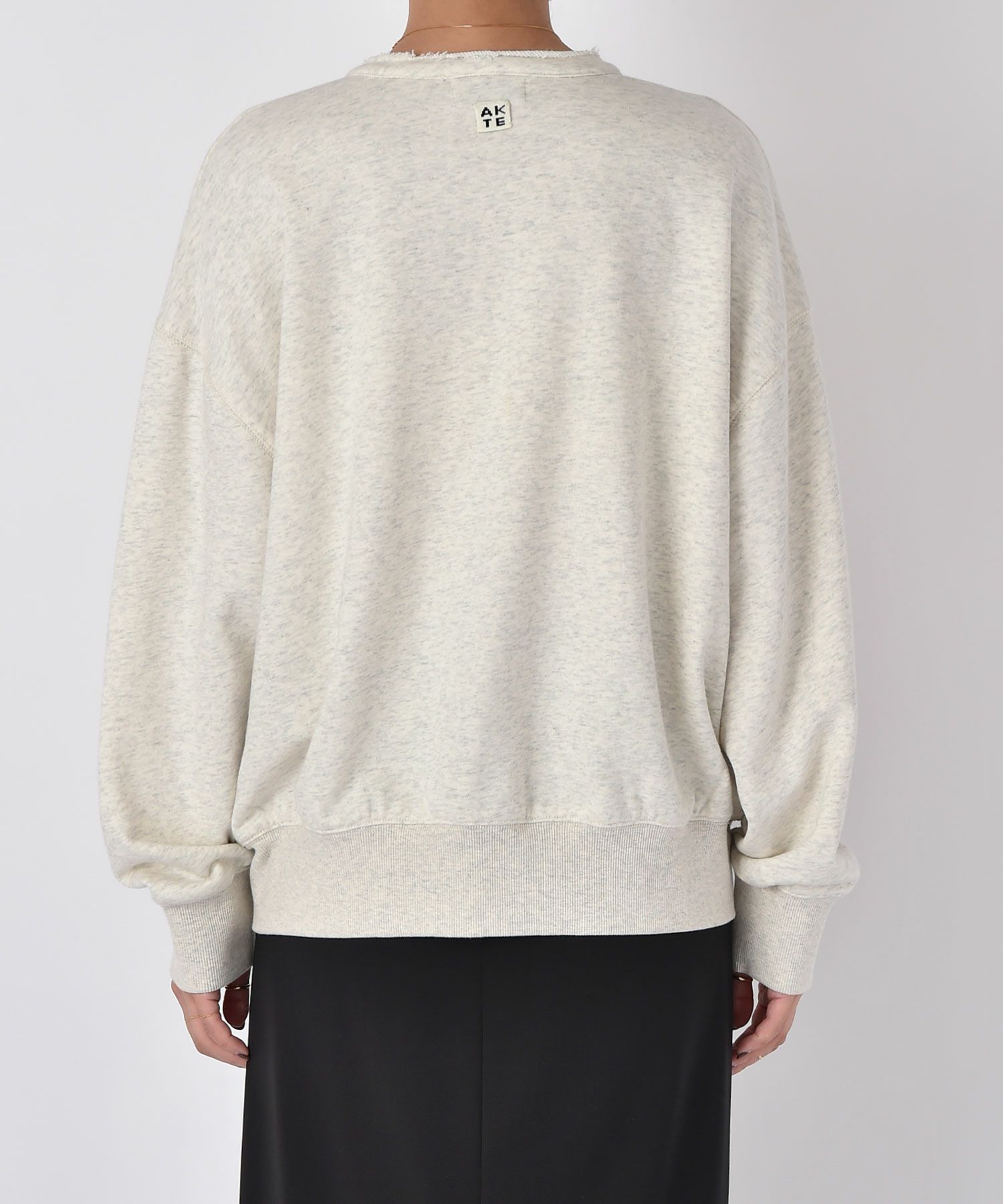 ゆったりとしたサイズ感と襟元の裁ち切りデザインが程よいラフさとこなれ感を。