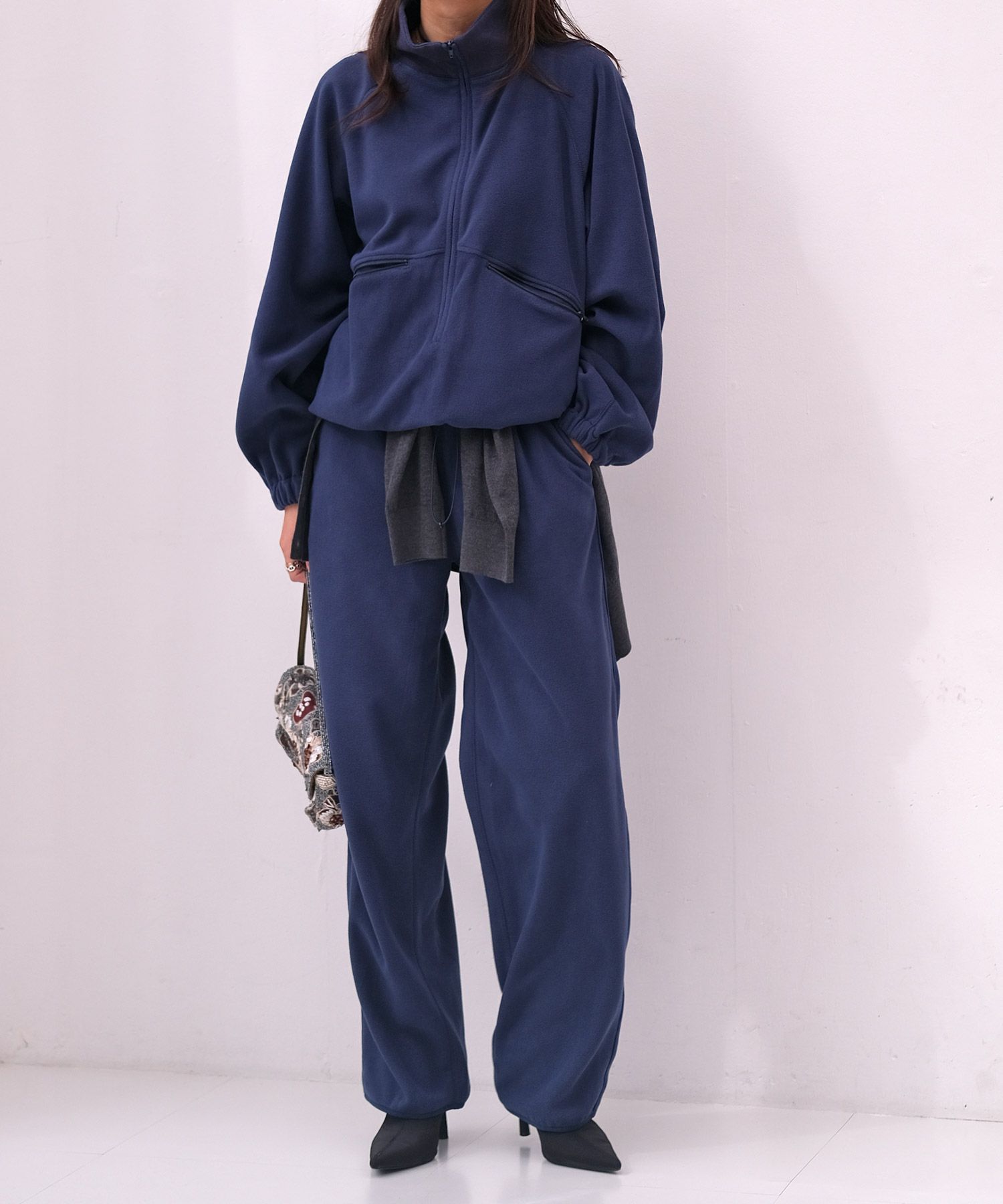 ネイビーは同素材のフリースラインパンツとセットアップでの着用もおすすめです。