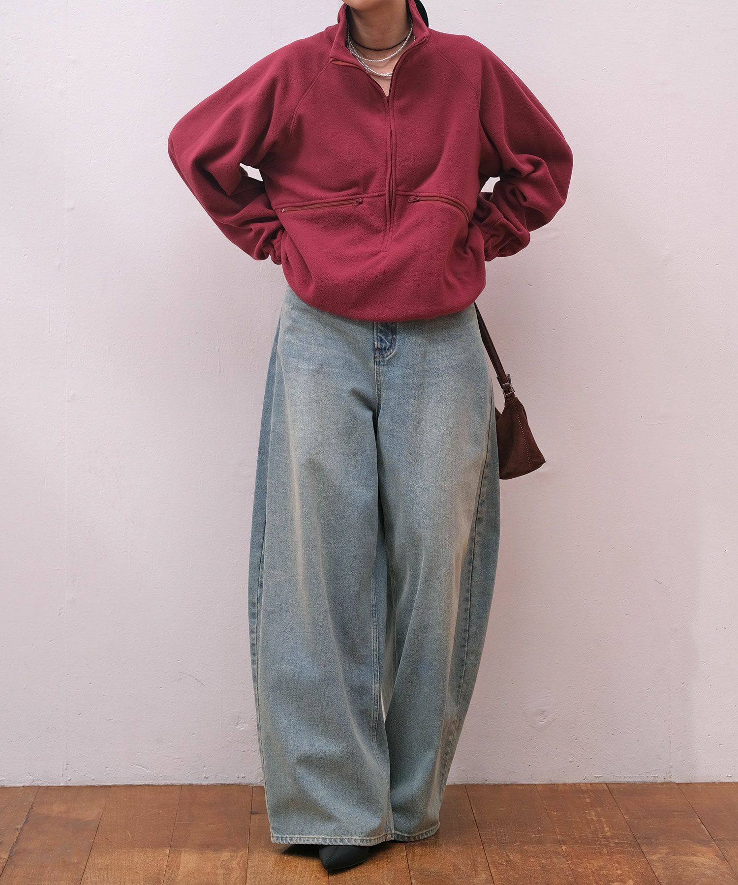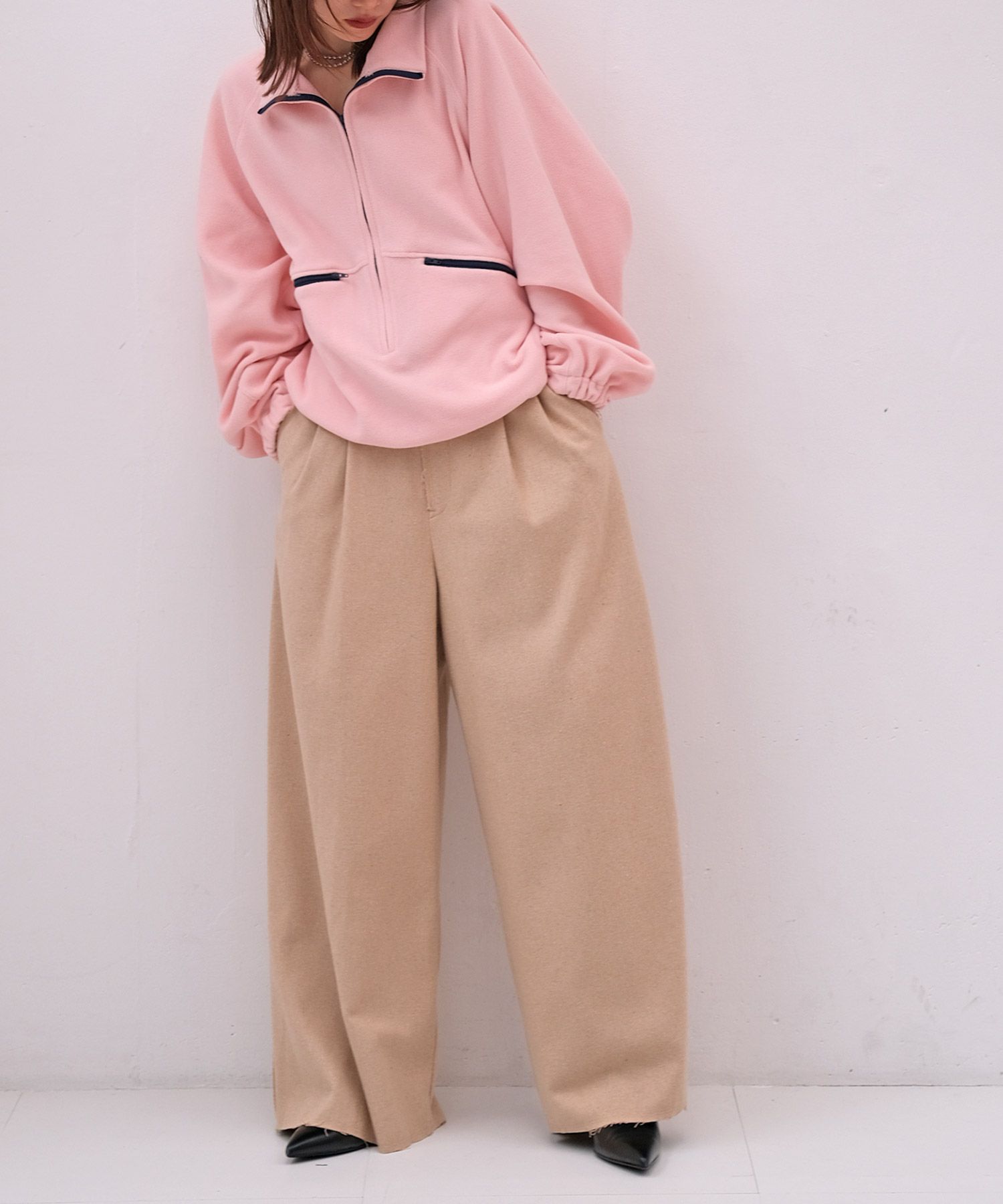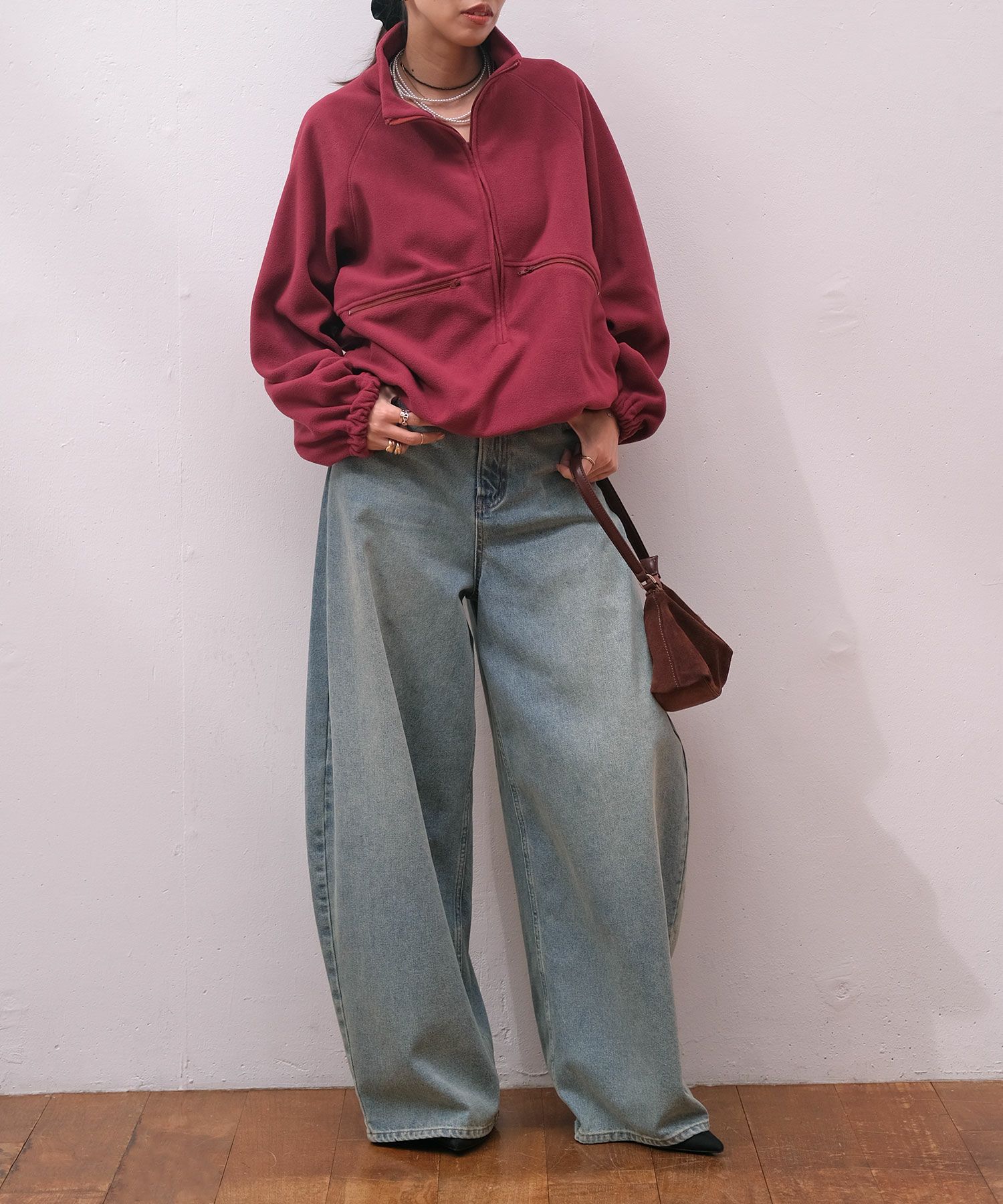 程よいボリュームが着こなしにニュアンスを与えるフリース素材のプルオーバー。