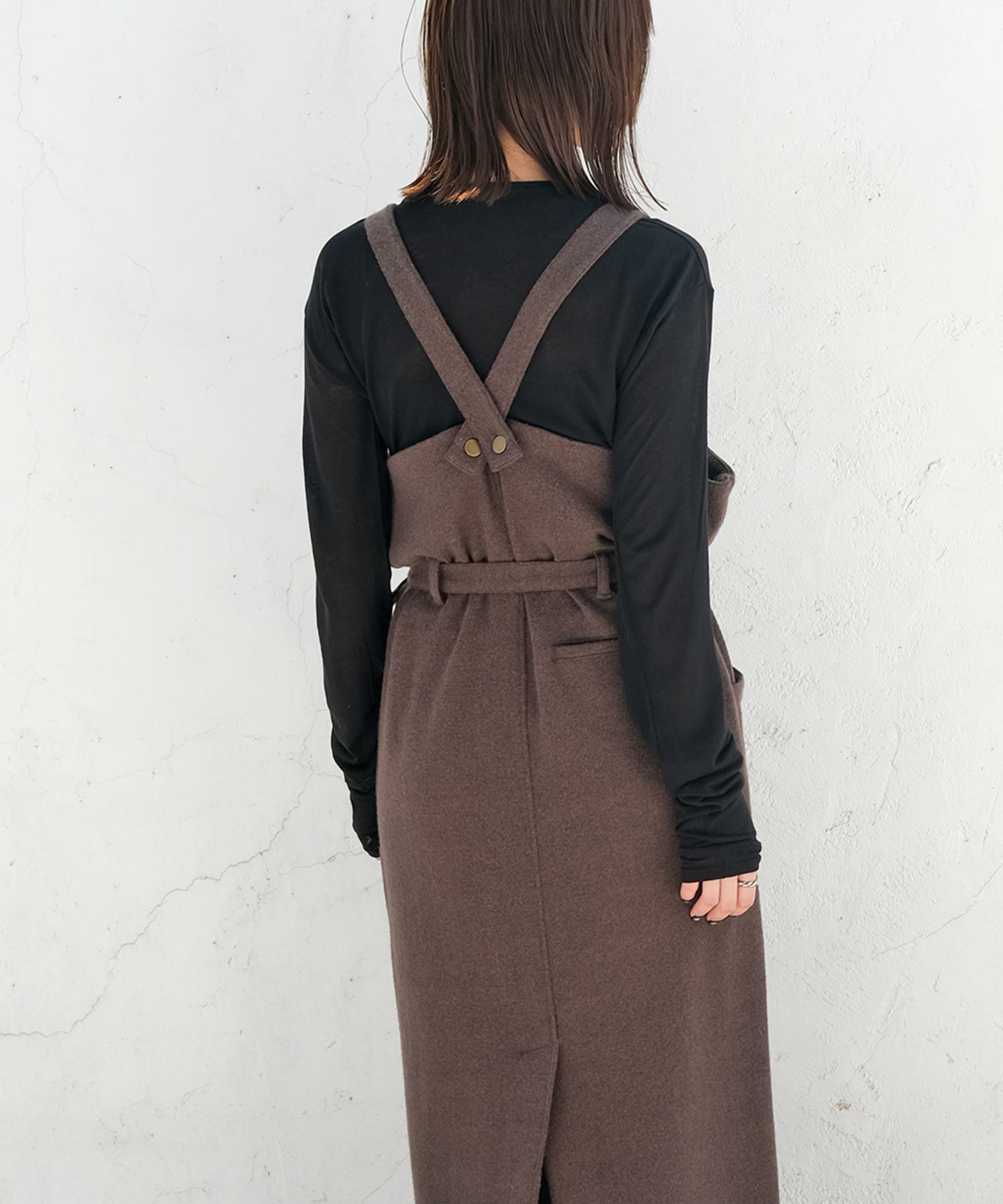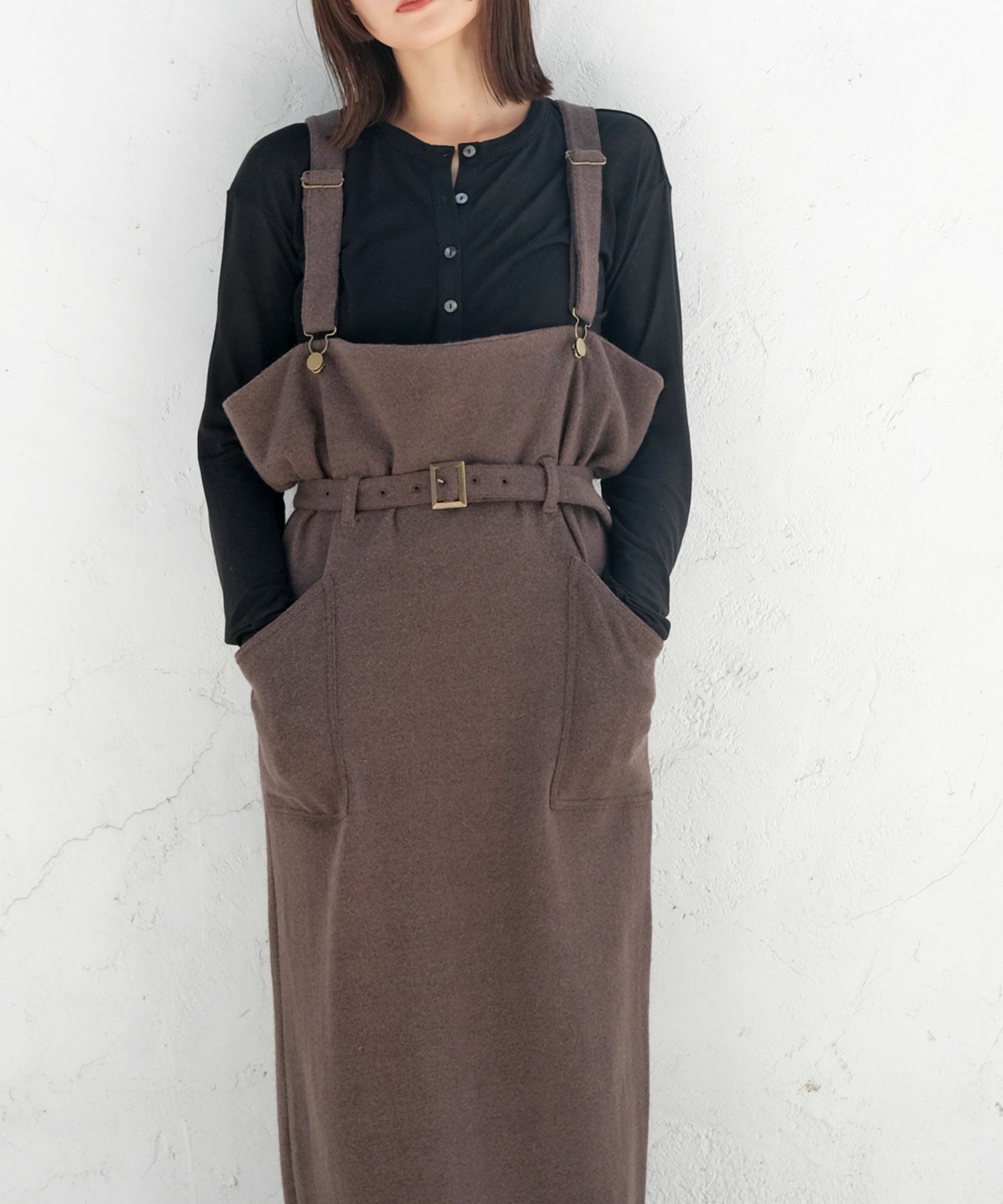 柔らかであたたかみのあるウール素材が魅力のジャンパースカート。