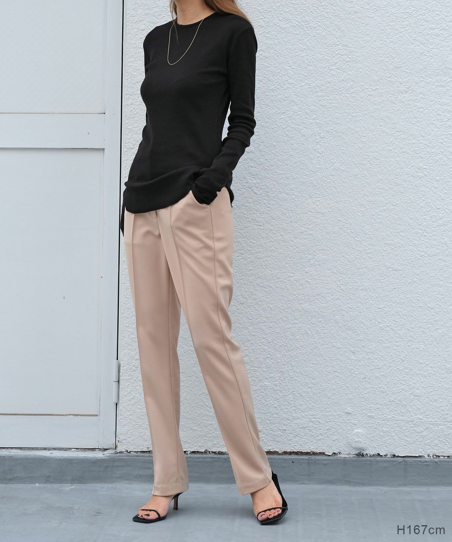 長めの袖丈と裾の船底とロック仕様がニュアンス感をプラス。