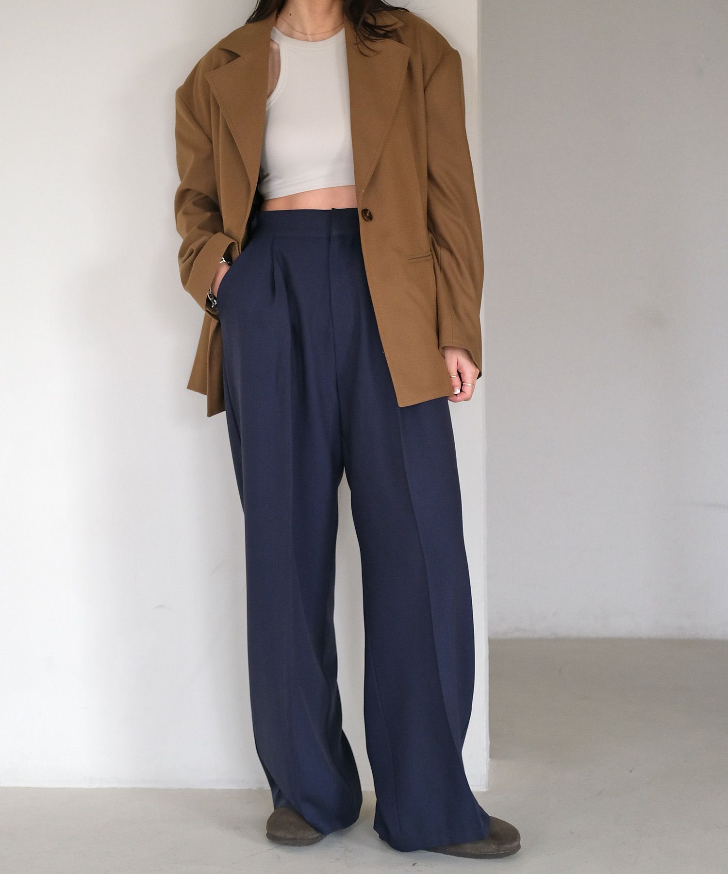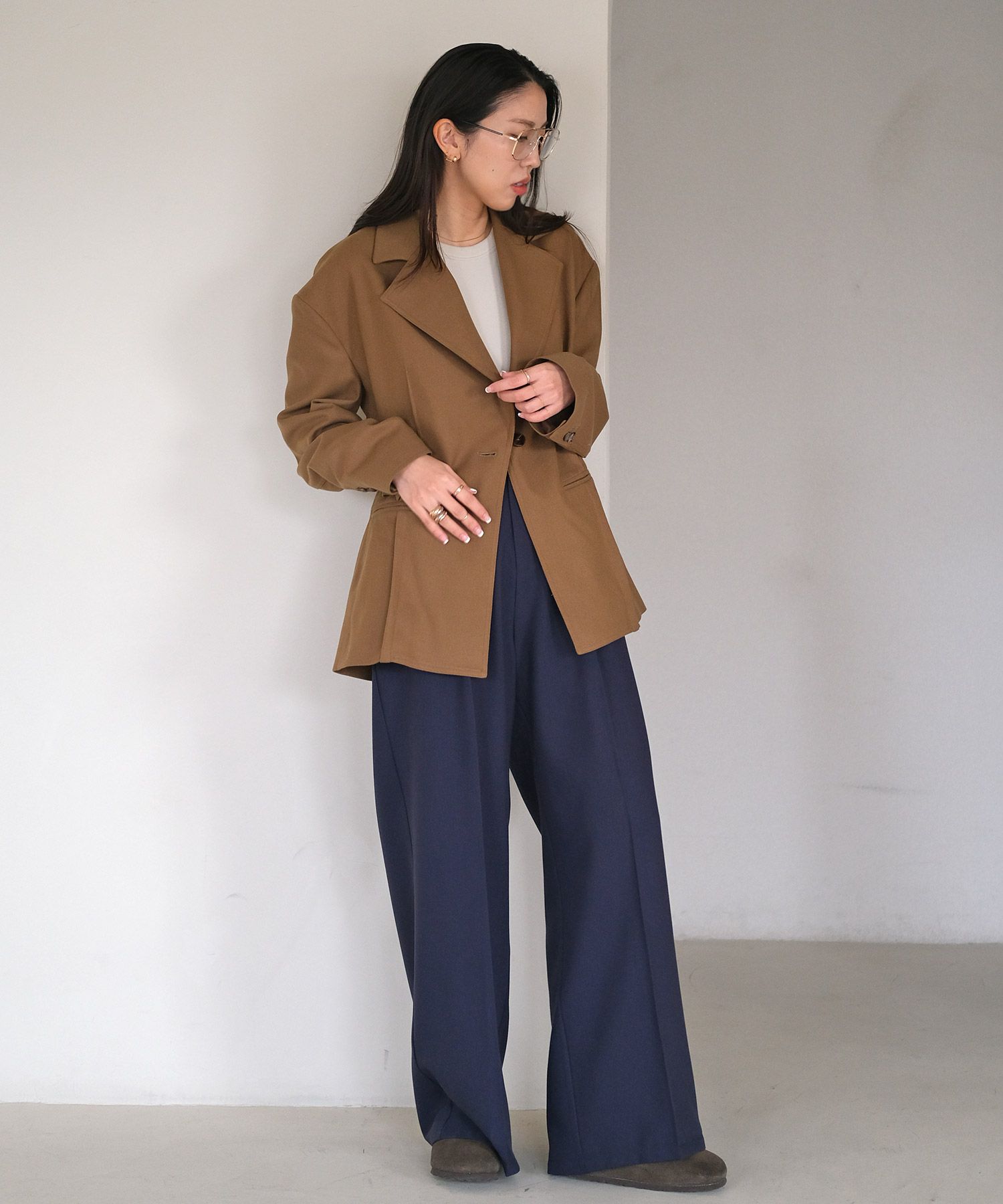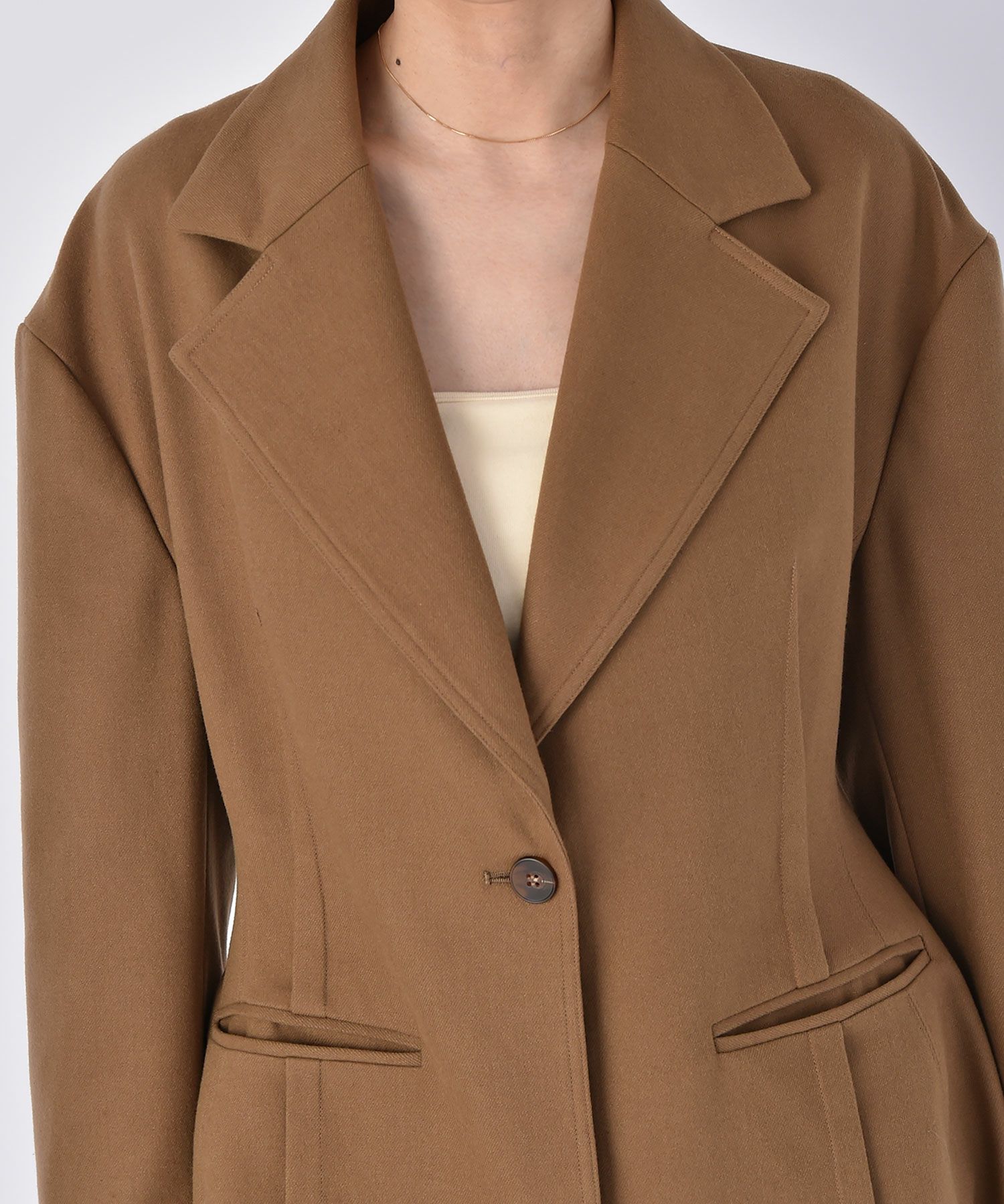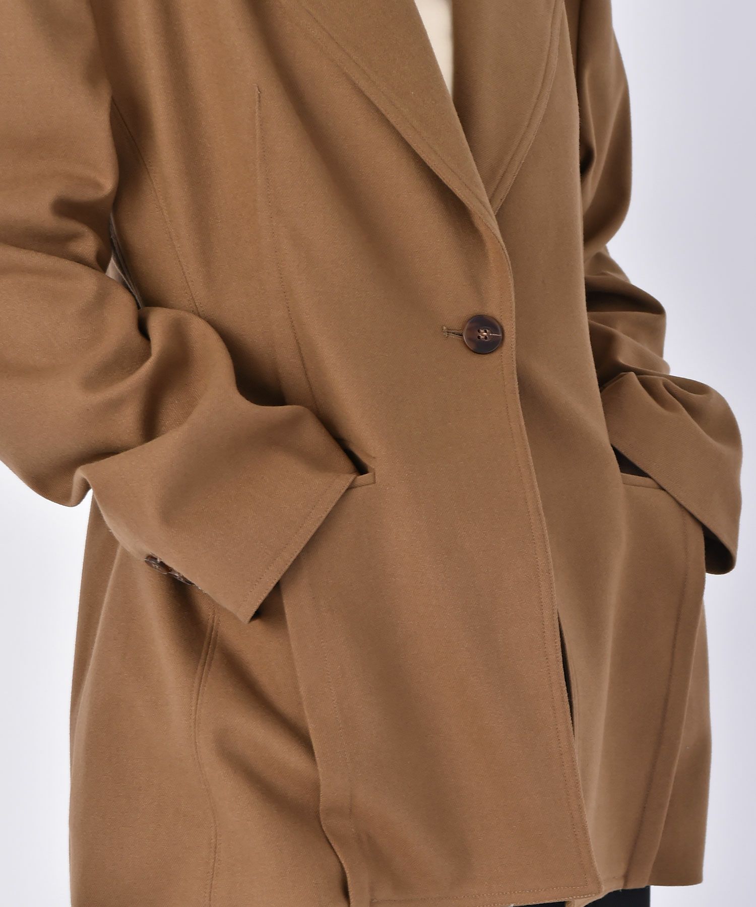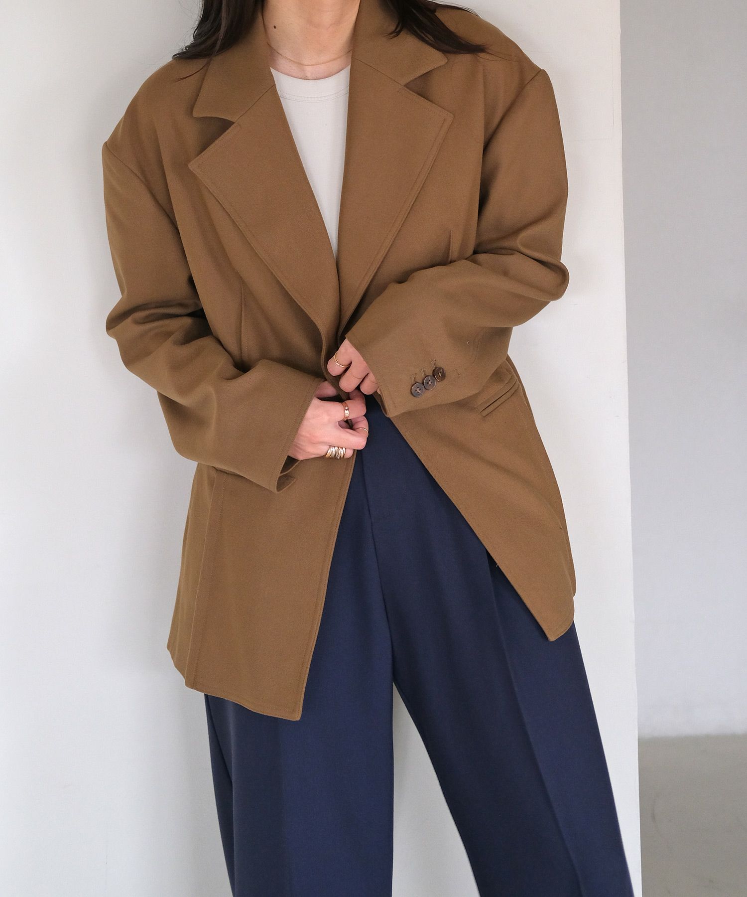 美しいシルエットで存在感を放ち、マニッシュさと女性らしさを兼ね備えたジャケット