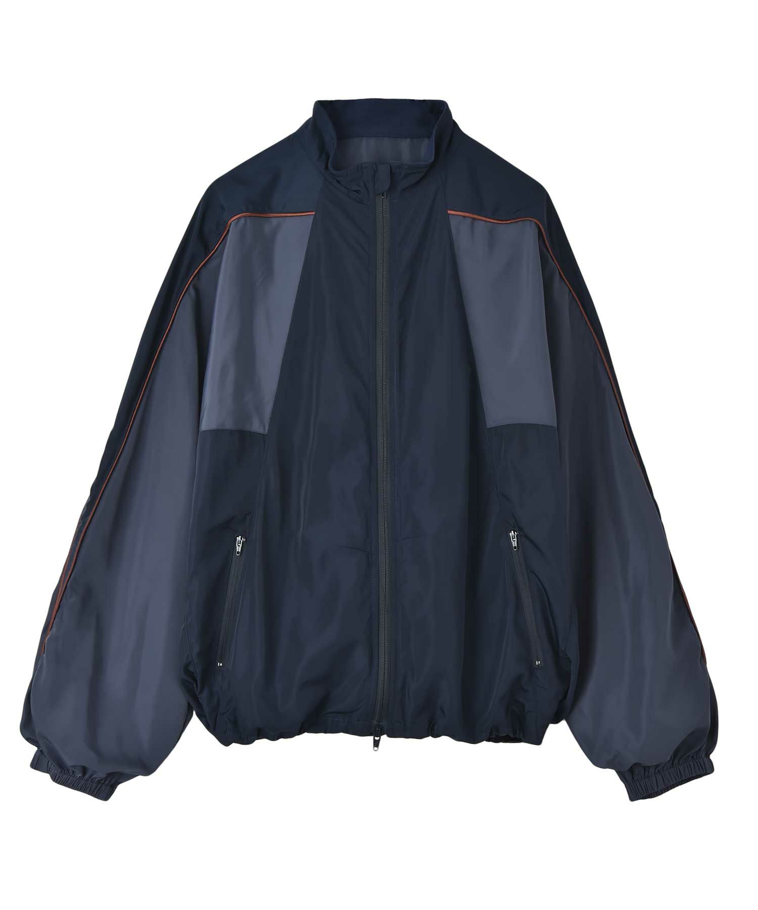 配色デザインと立体的な玉パイピングがアクセントになるナイロンジャケット。