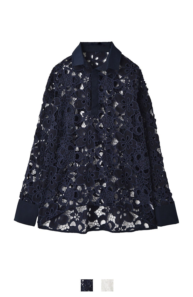 ケミカルレースを贅沢に全面に使用したラガーシャツ。