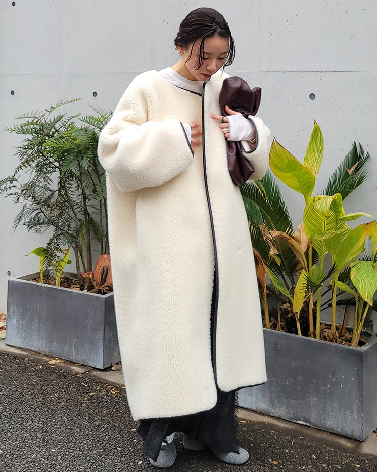 AKTEで定番人気のボア素材を使用したコート。