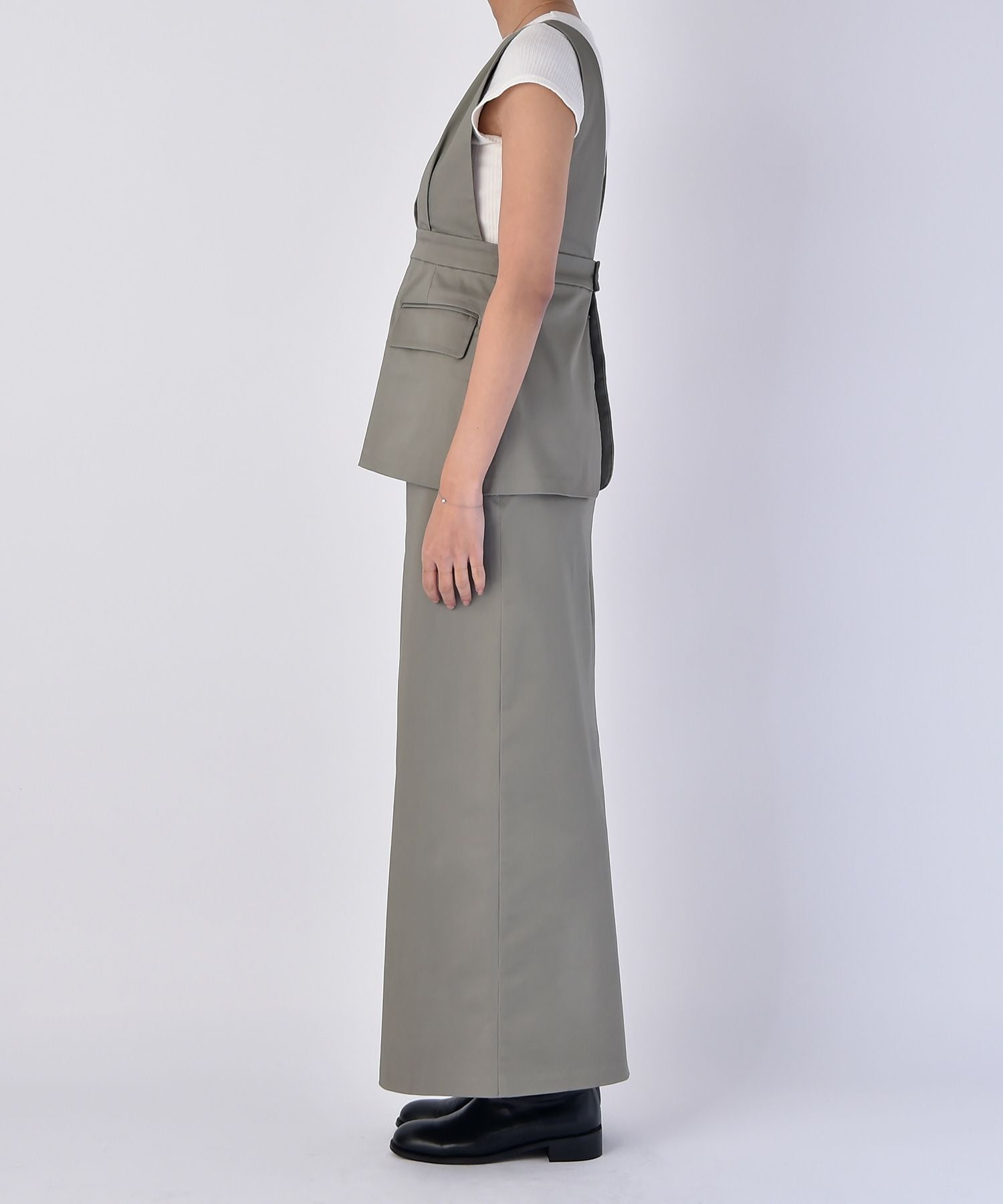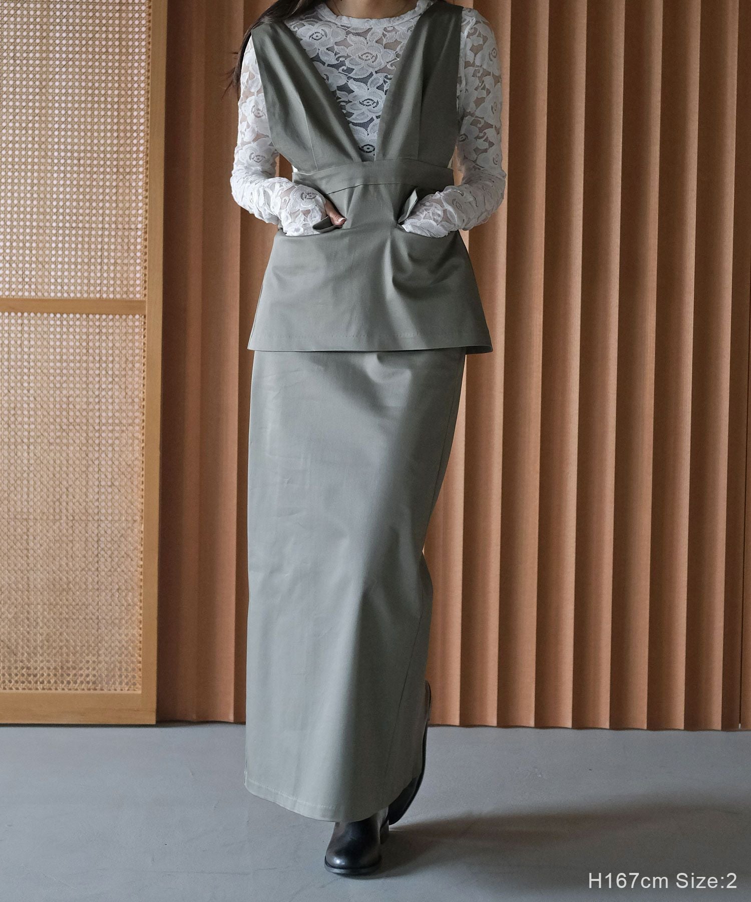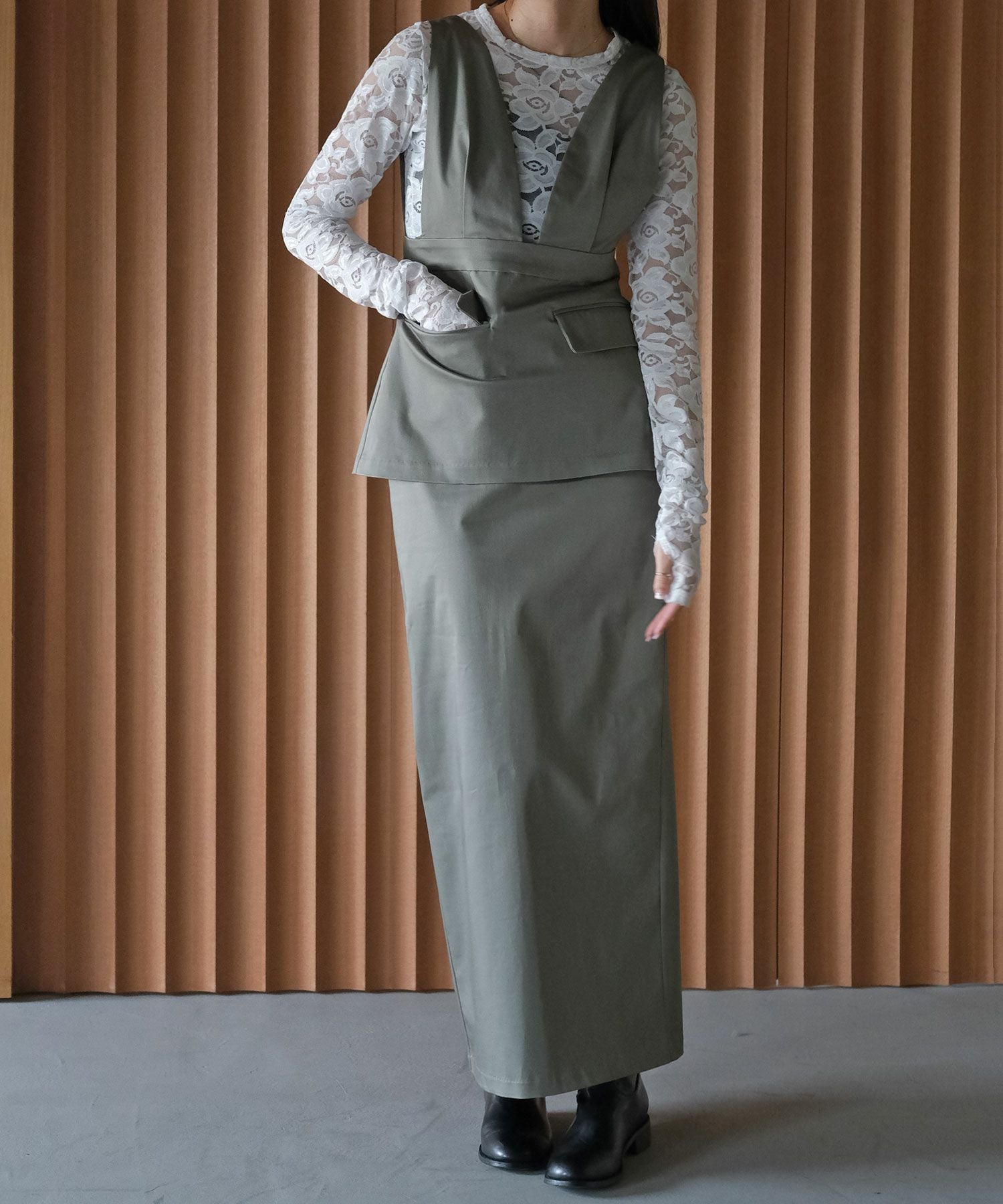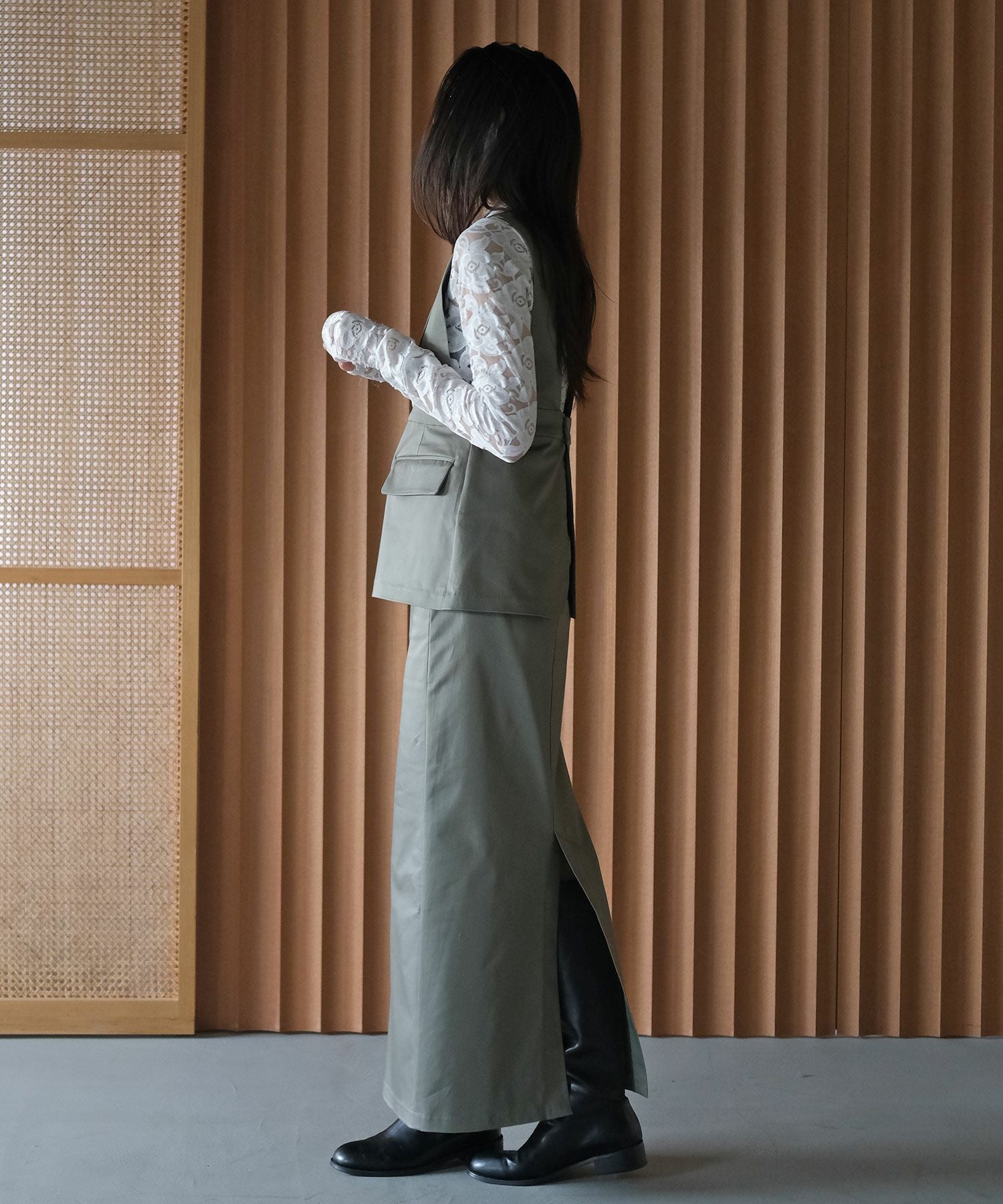ベストは前後2WAYで着用でき、高めのウエストマークがスタイルアップも叶います。