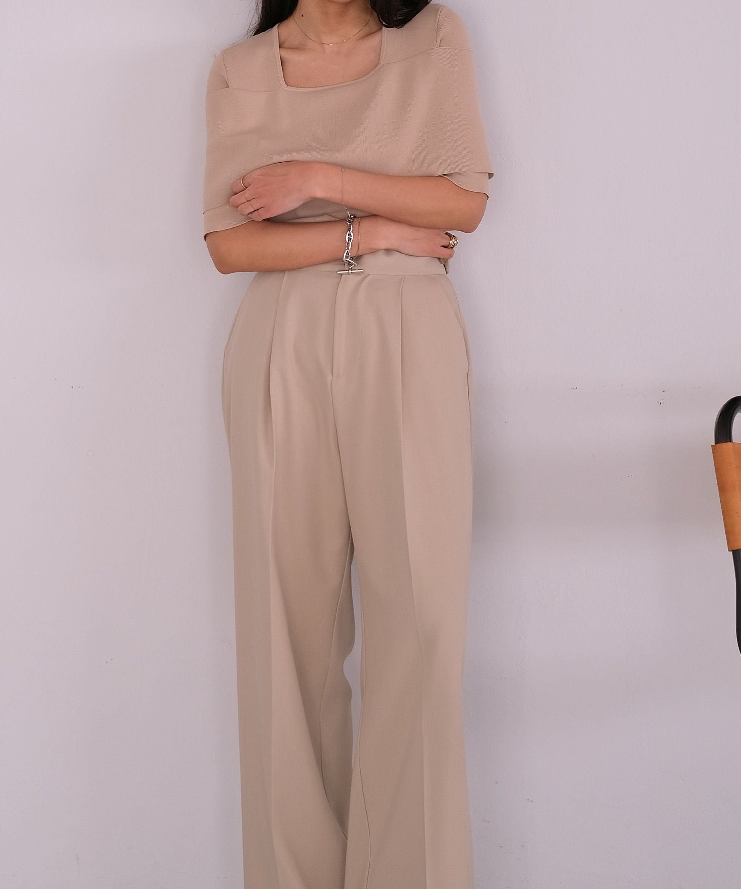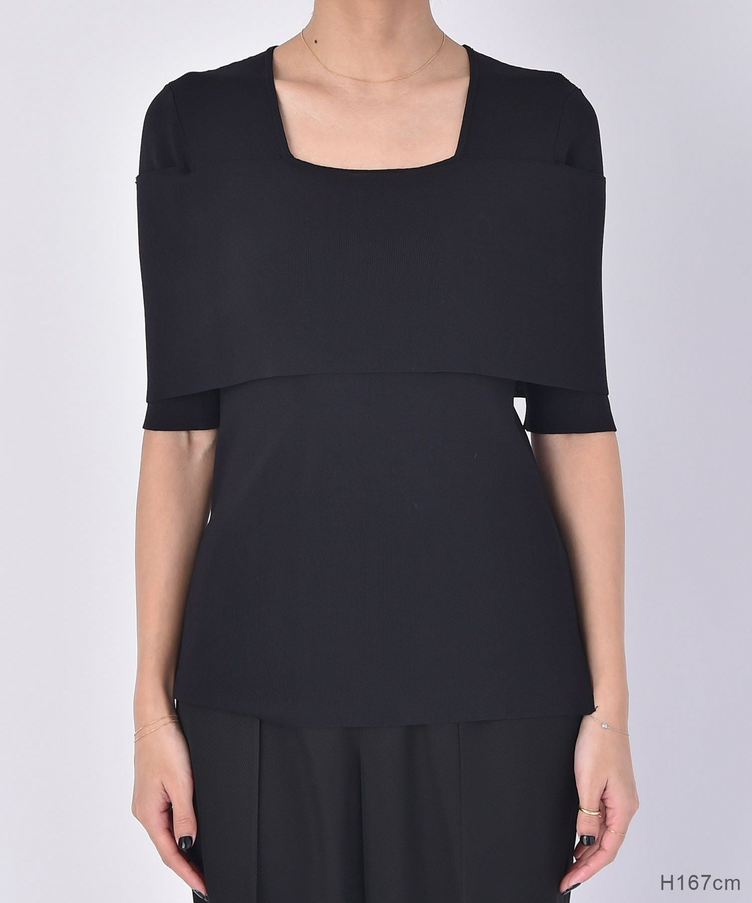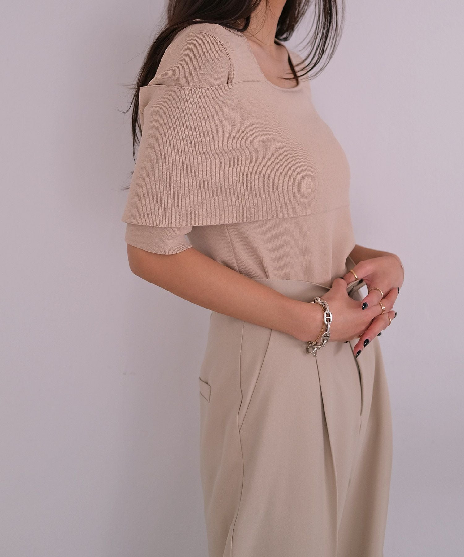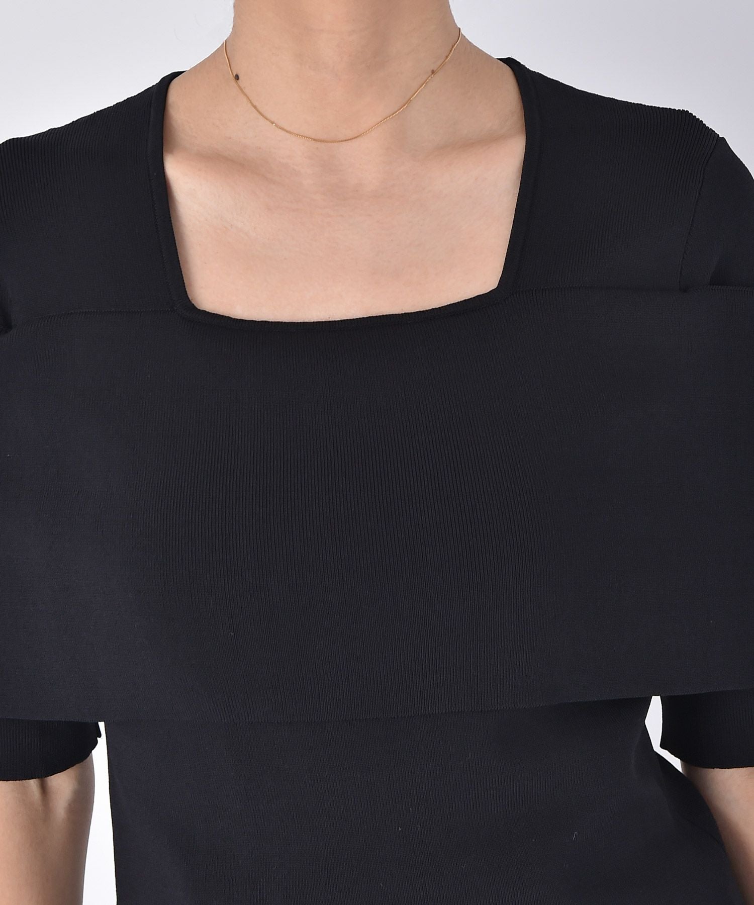 スクエアネックがデコルテを美しく見せてくれます。