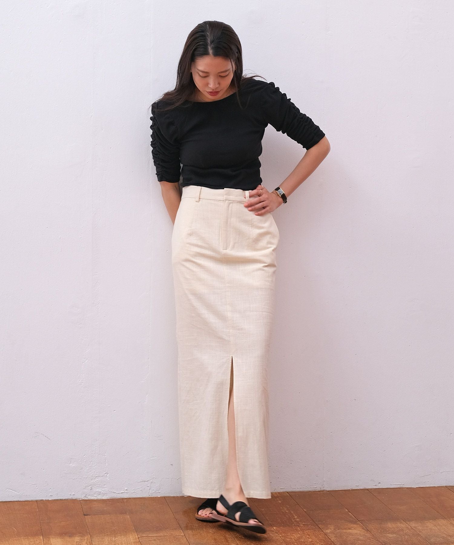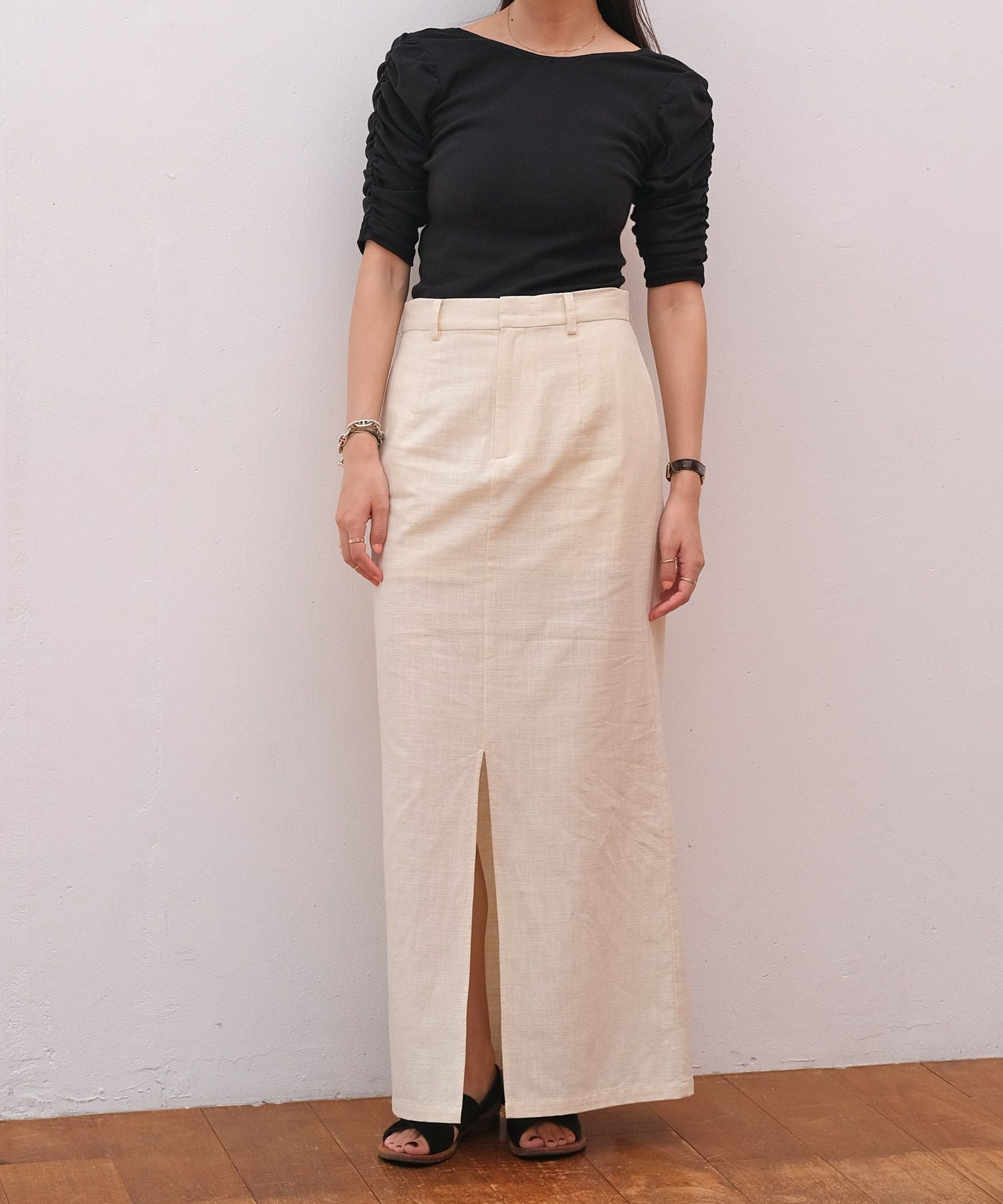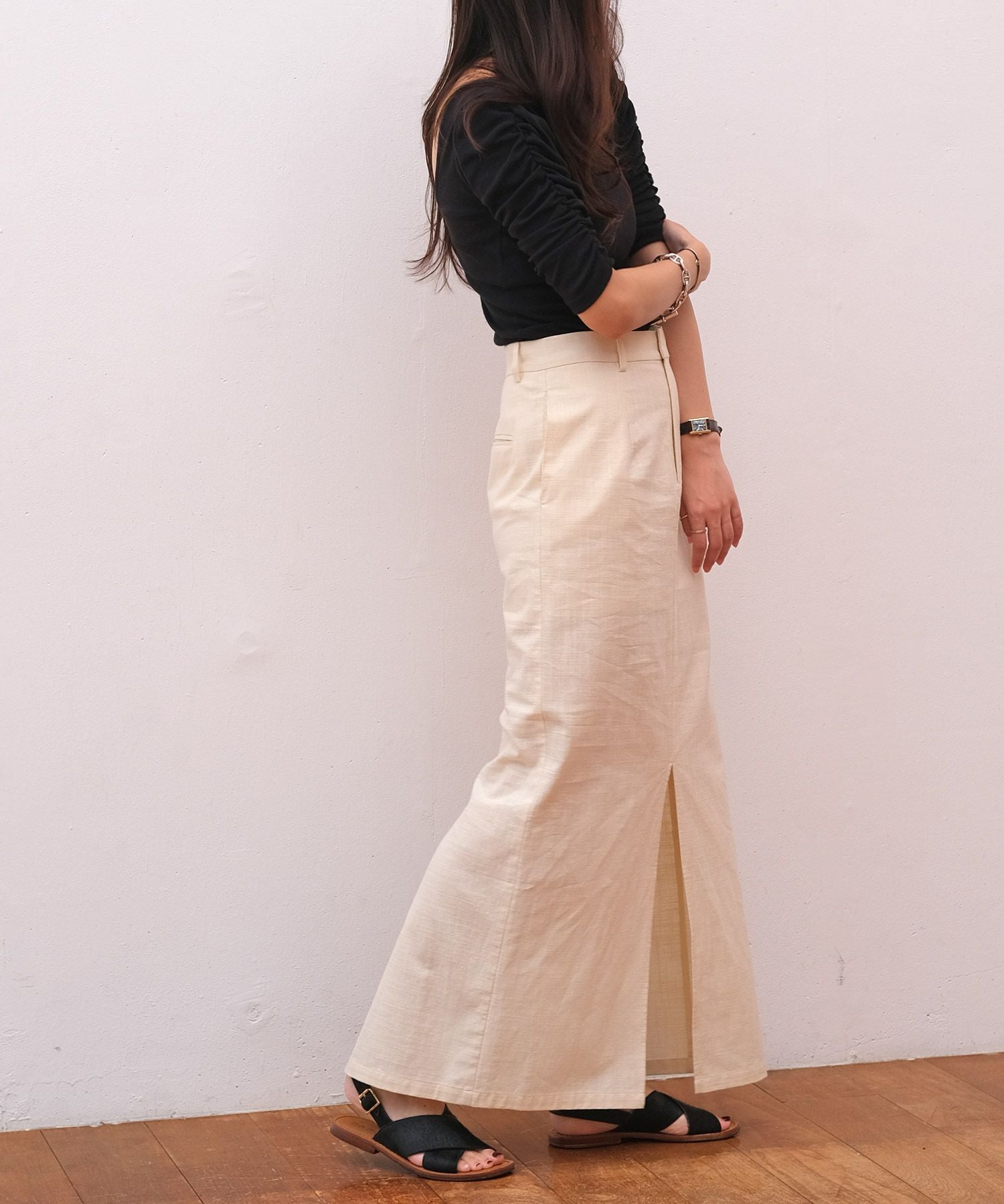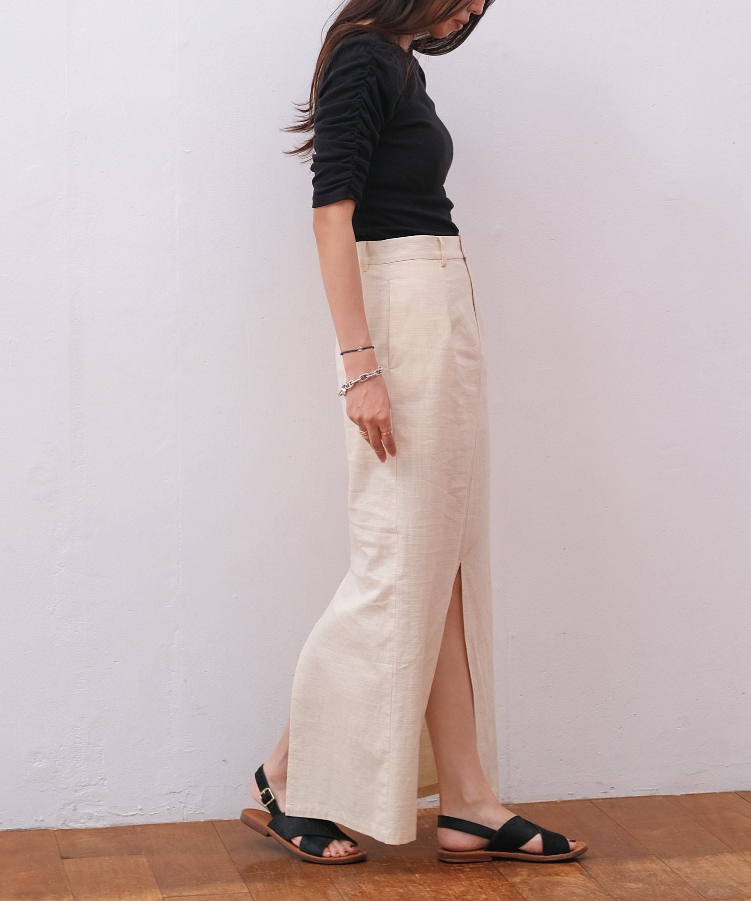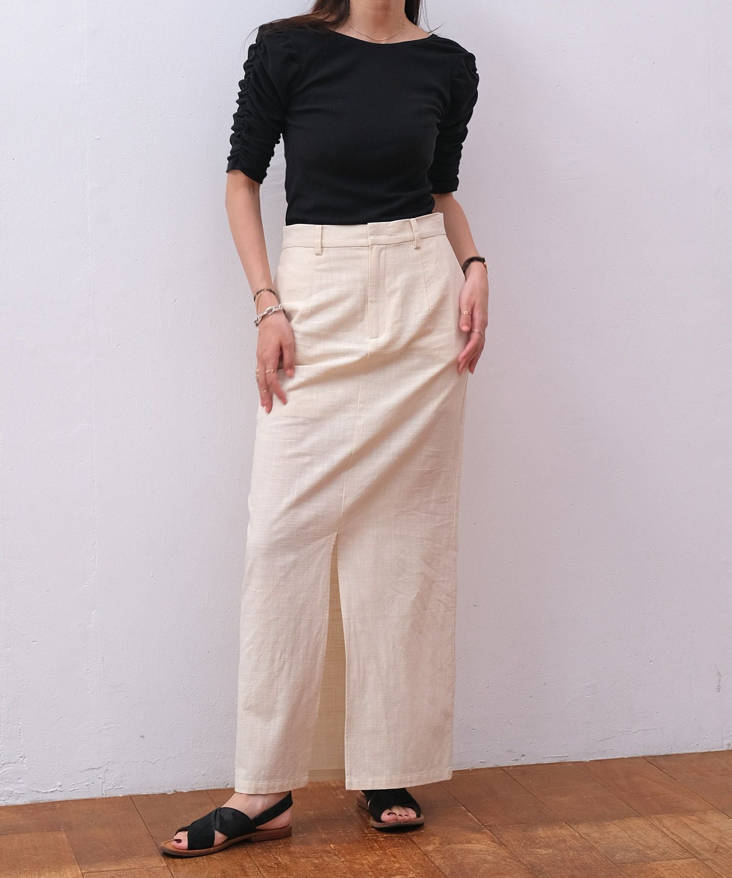 シンプルでミニマルな佇まいが着回し力抜群なスリットスカート