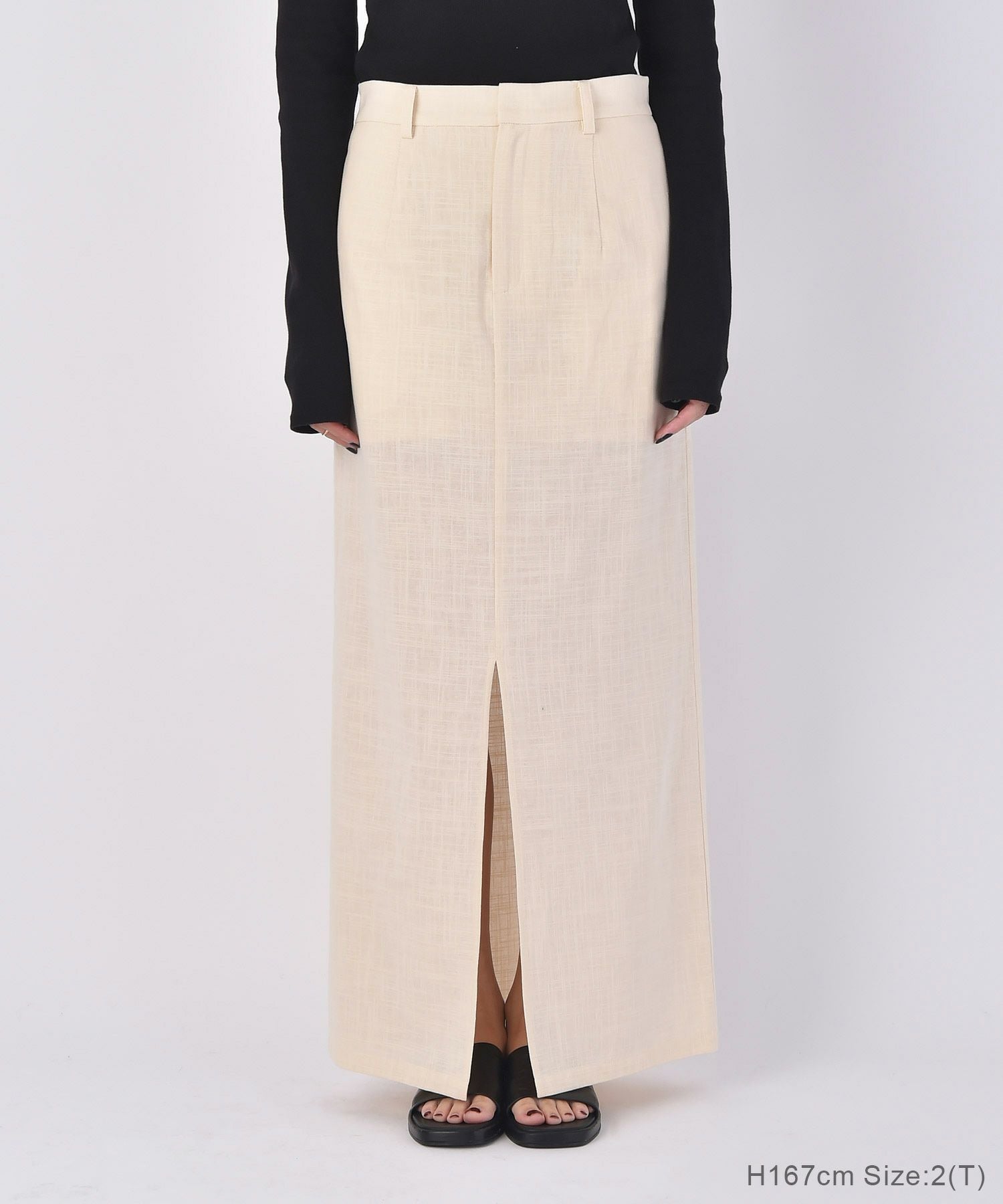 コットンのナチュラルな風合いと、女性らしく仕上がるIラインが絶妙なバランスのスカート。