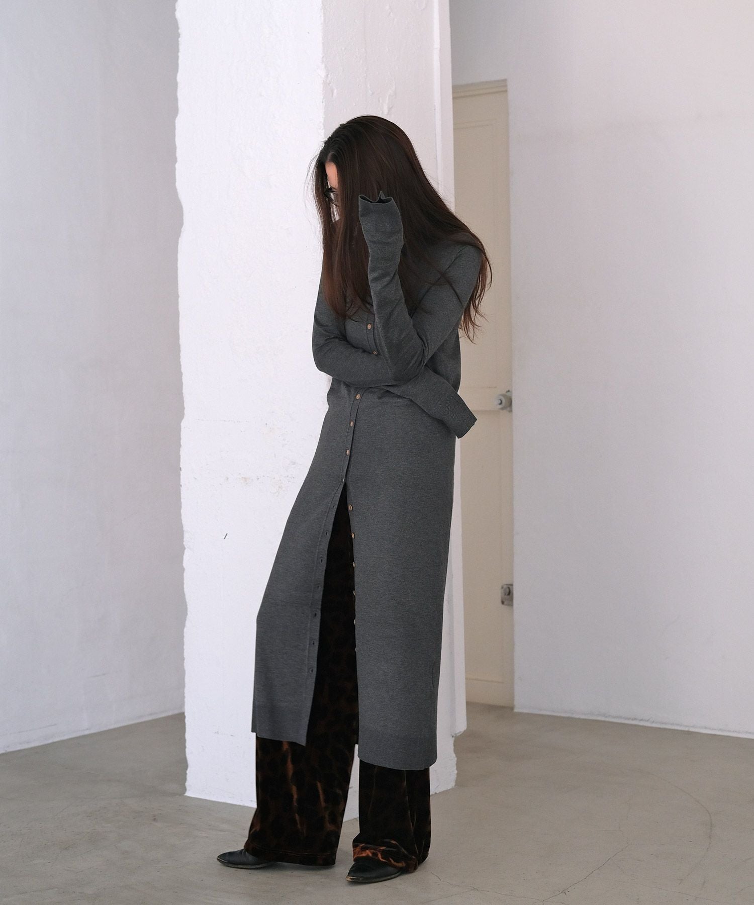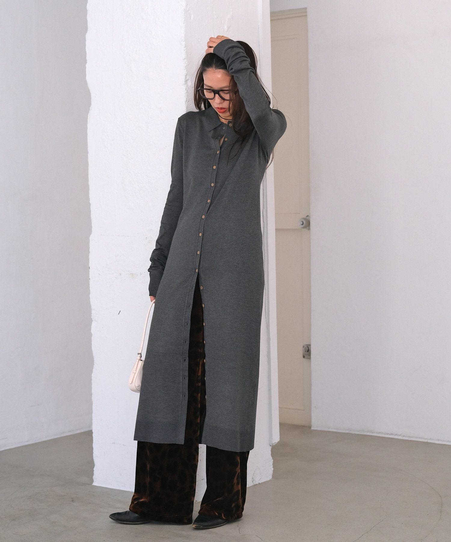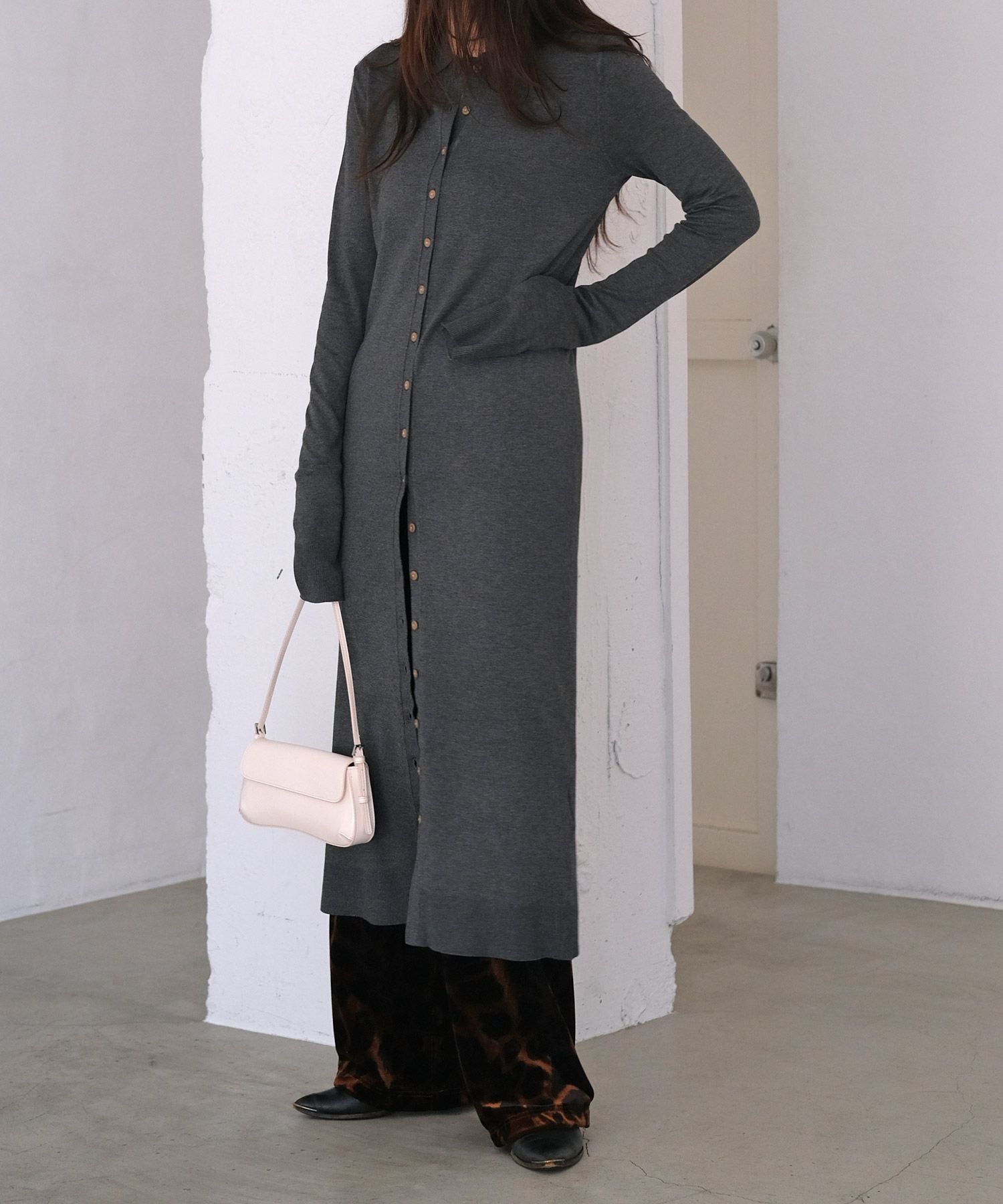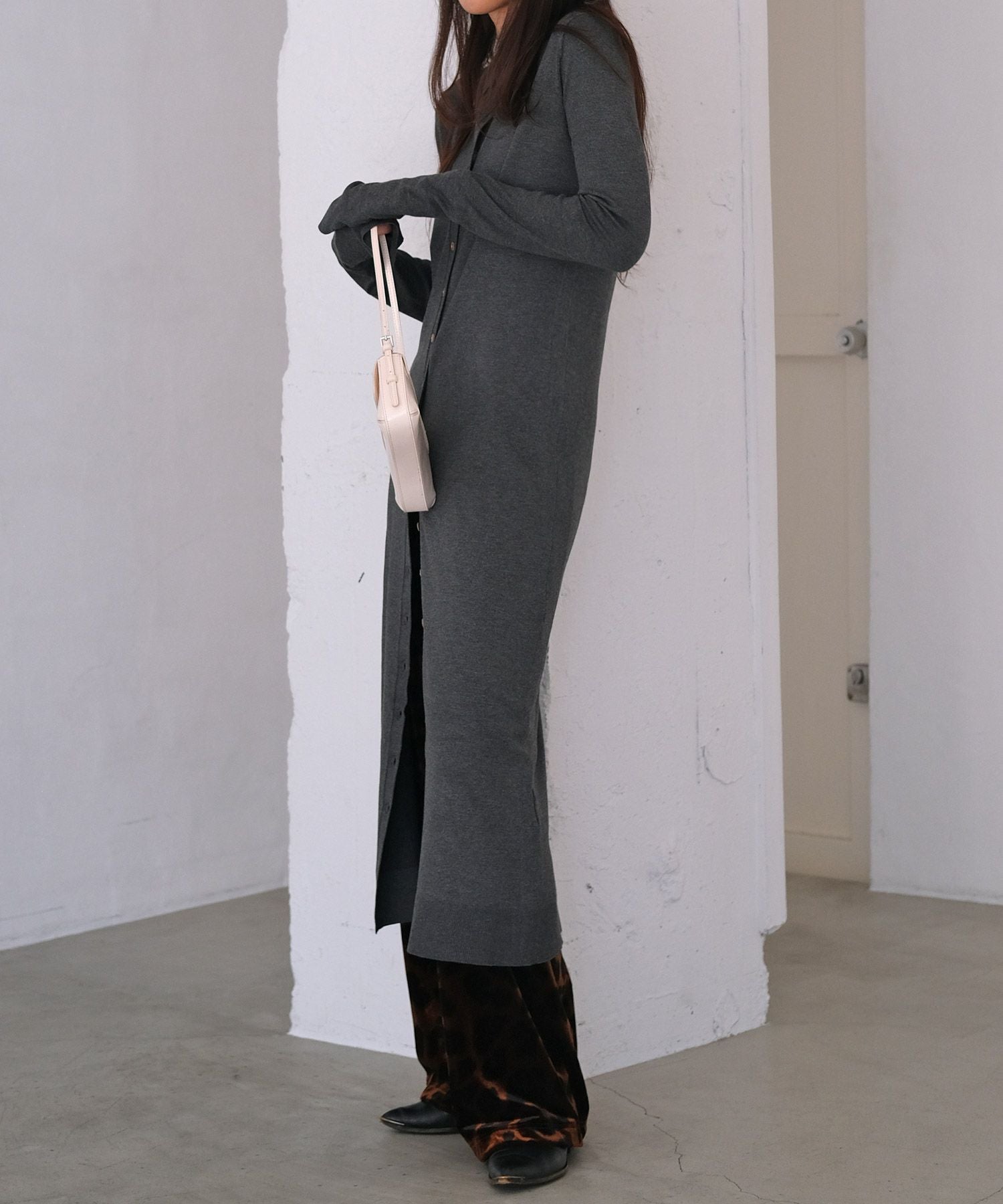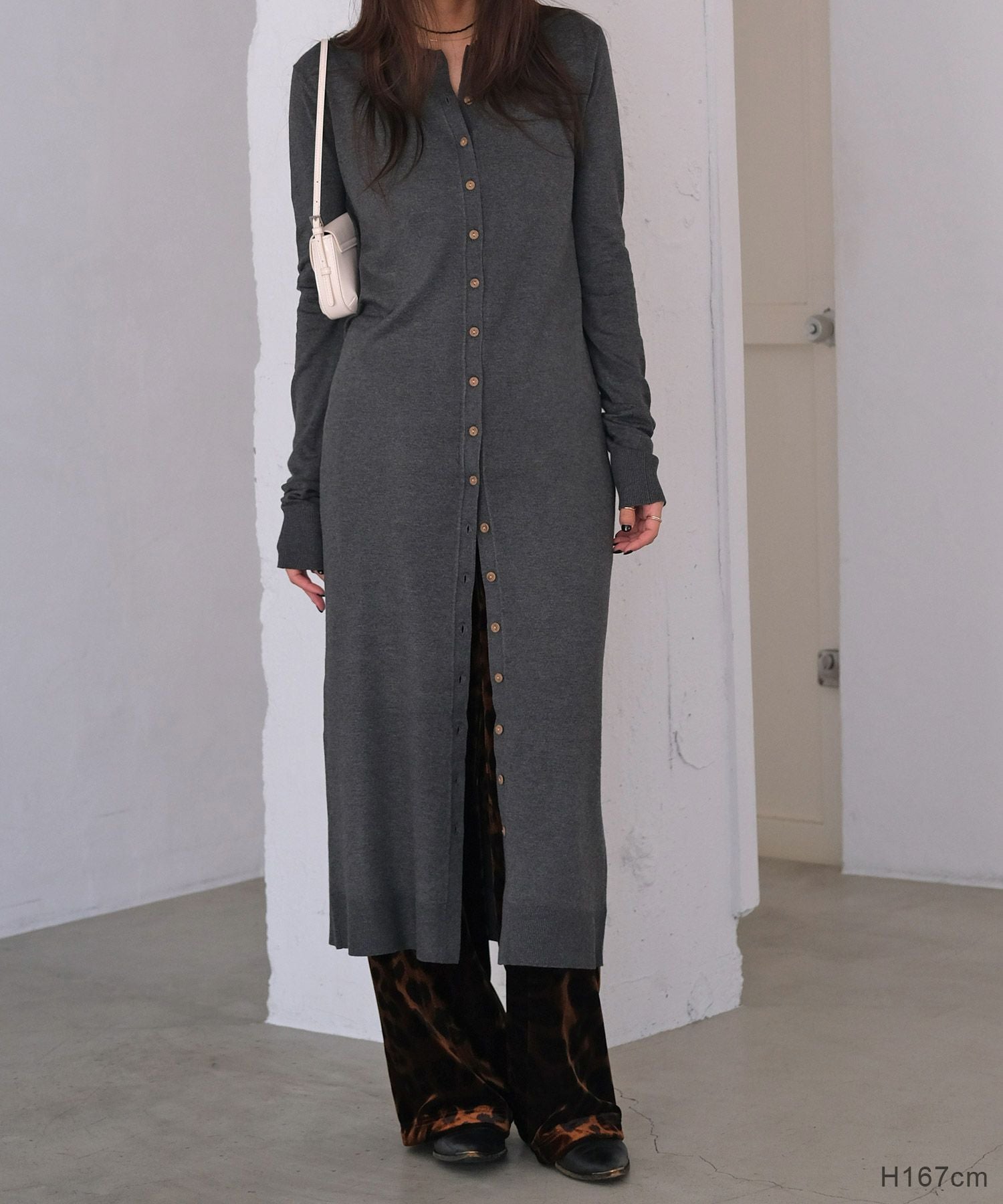 なめらかな編地が心地良い、すっきりとしたIラインのロングカーディガン。