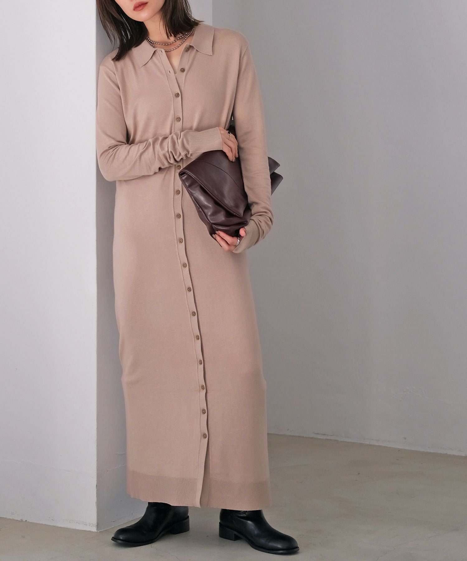 ワンピースとしてはもちろん、ボトムスを合わせたレイヤードスタイルも楽しめる一枚です。
