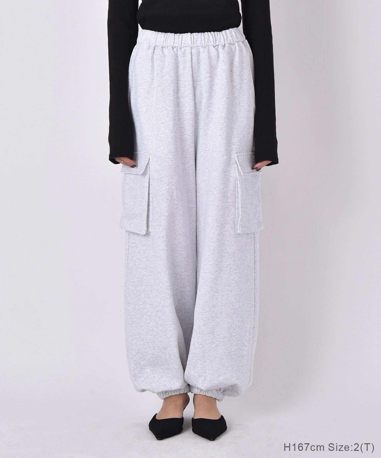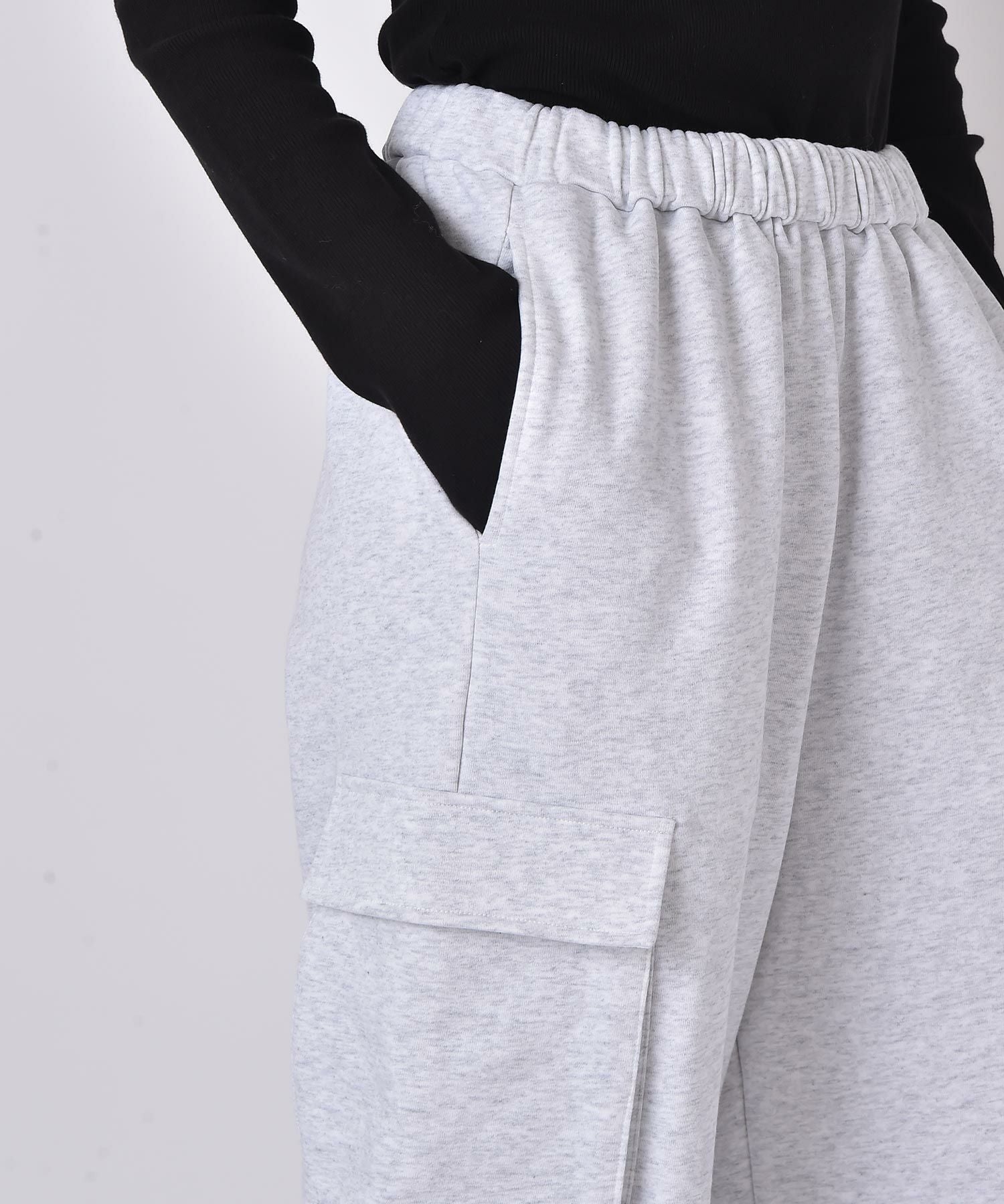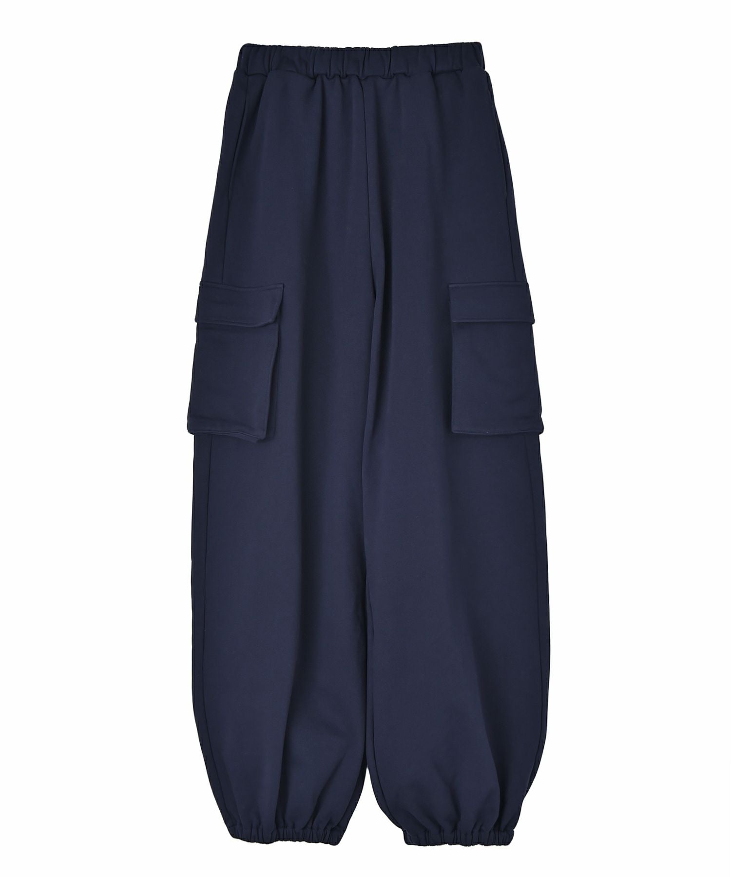 ミリタリーなカーゴパンツをスウェット素材でデザインしたイージーパンツ。
