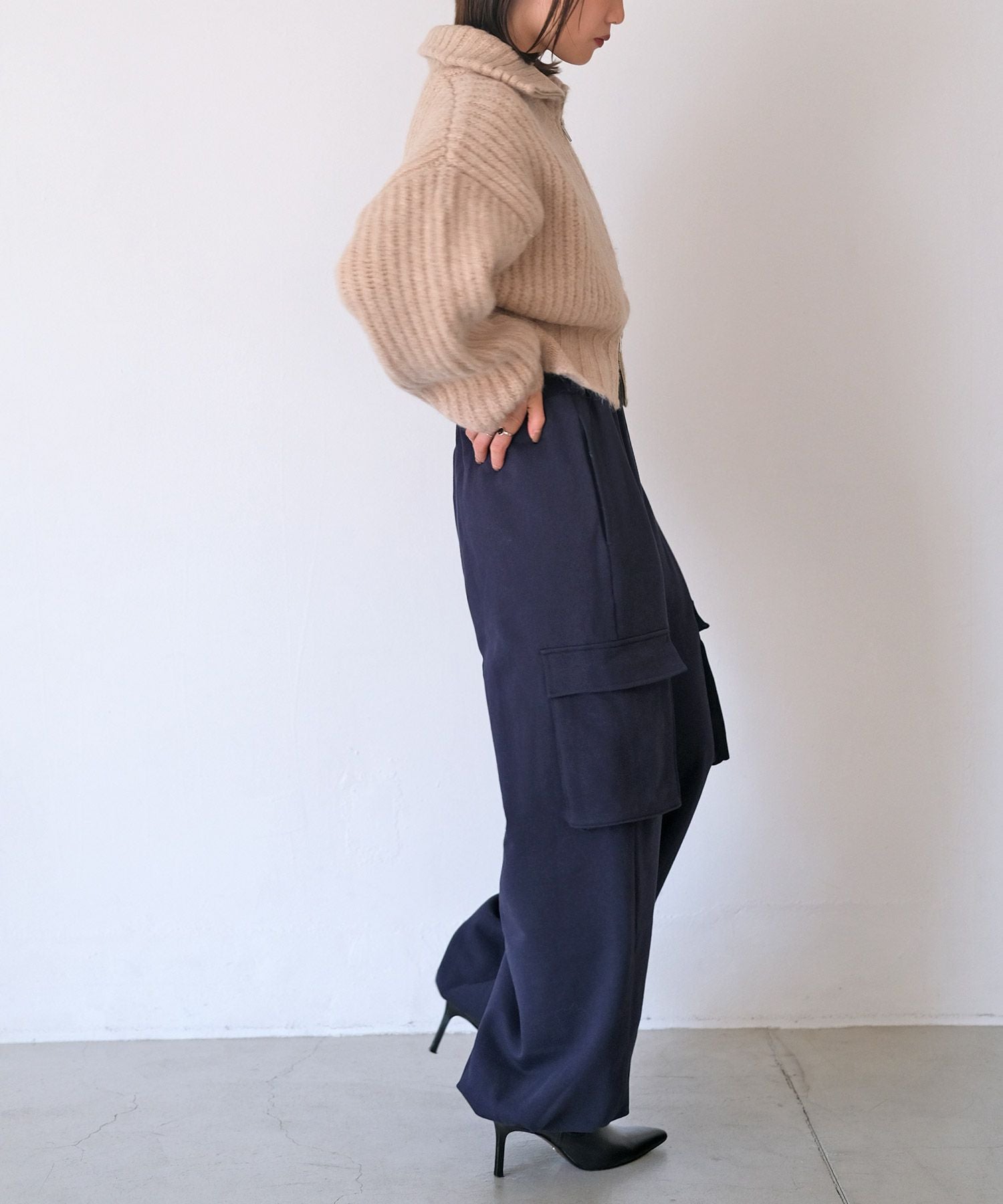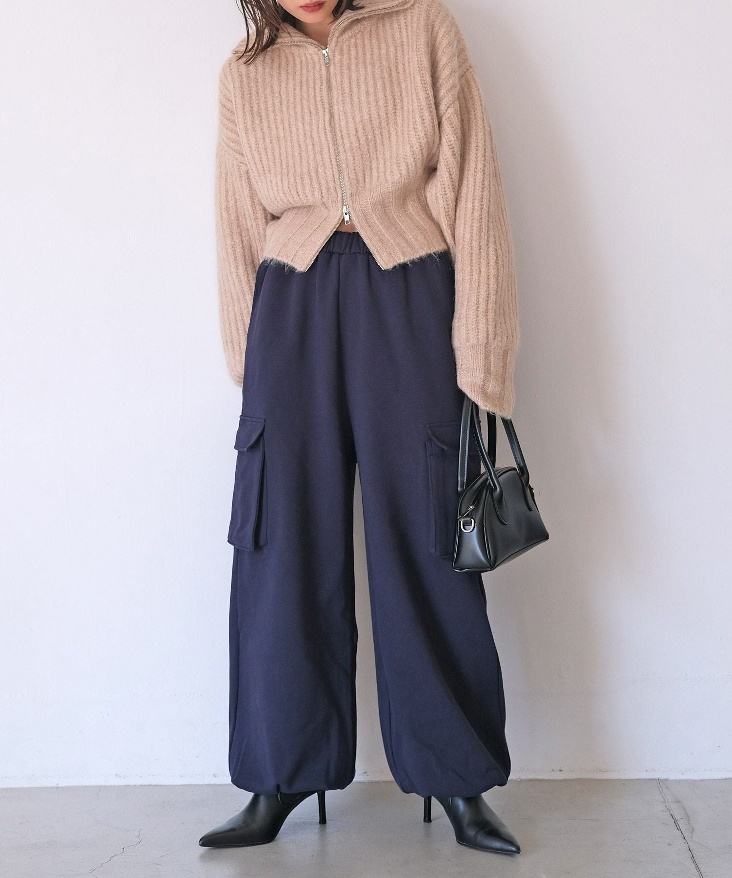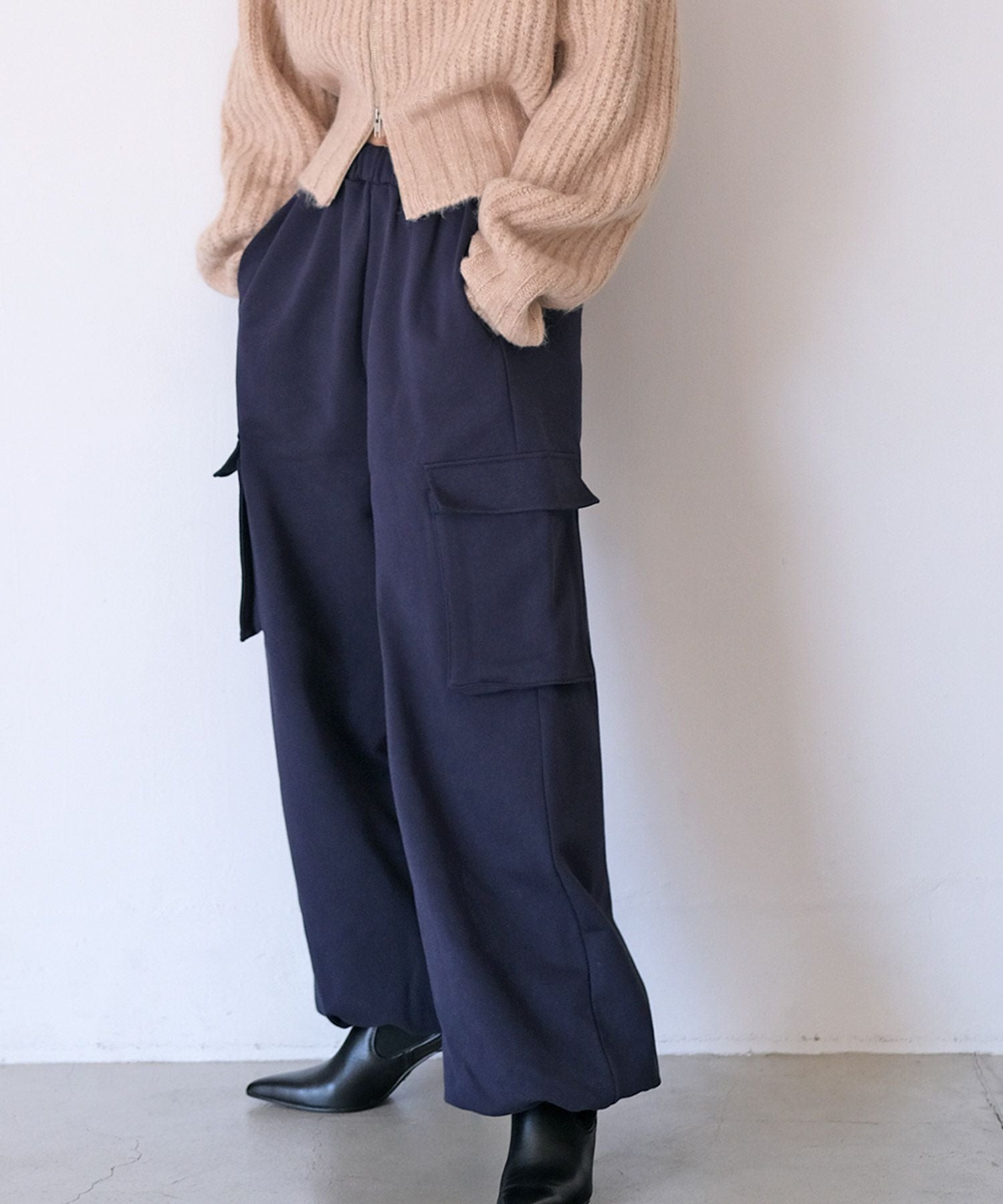 ミリタリーなカーゴパンツをスウェット素材でデザインしたイージーパンツ。