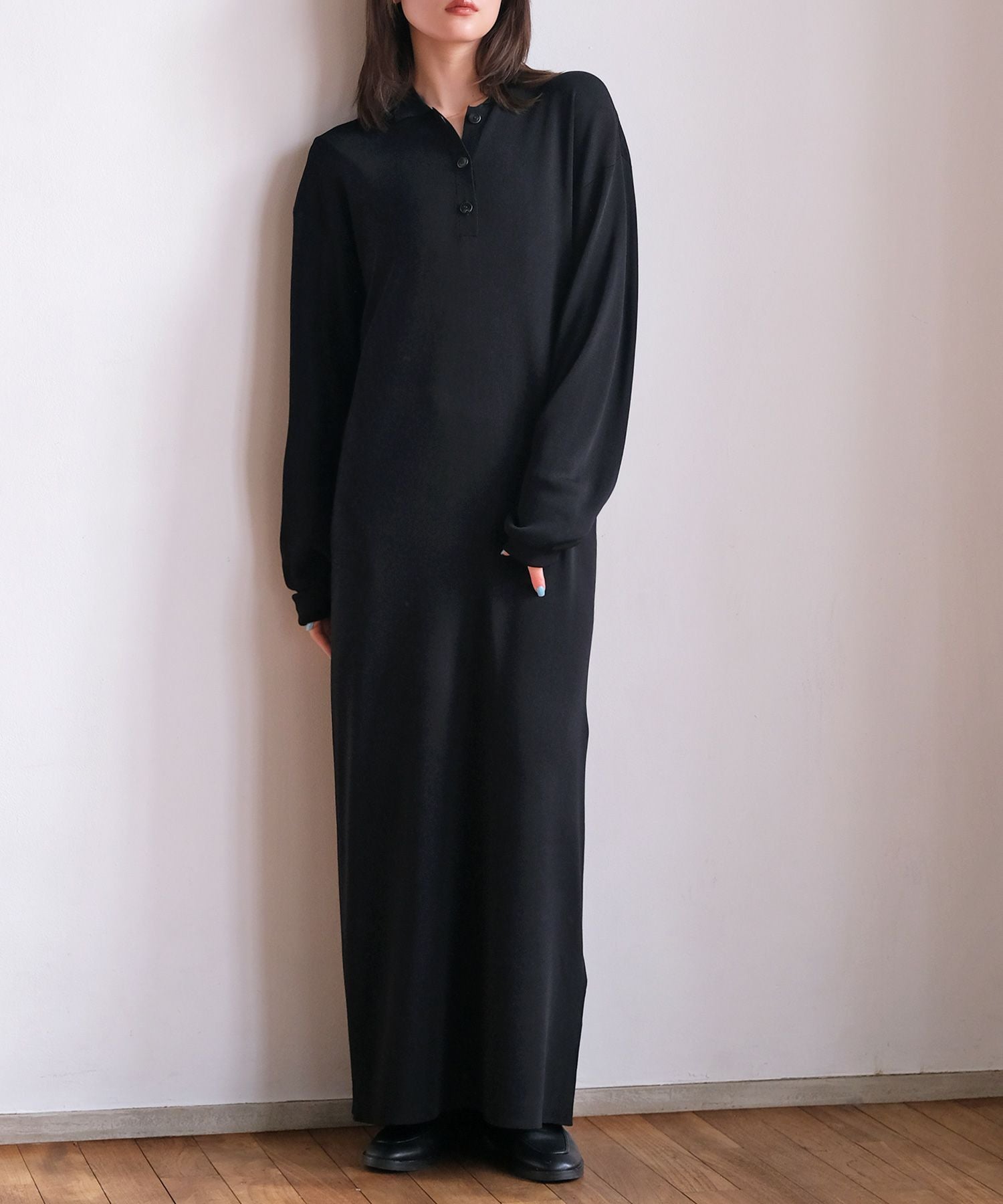 しなやかで落ち感のあるポロデザインのニットワンピース。