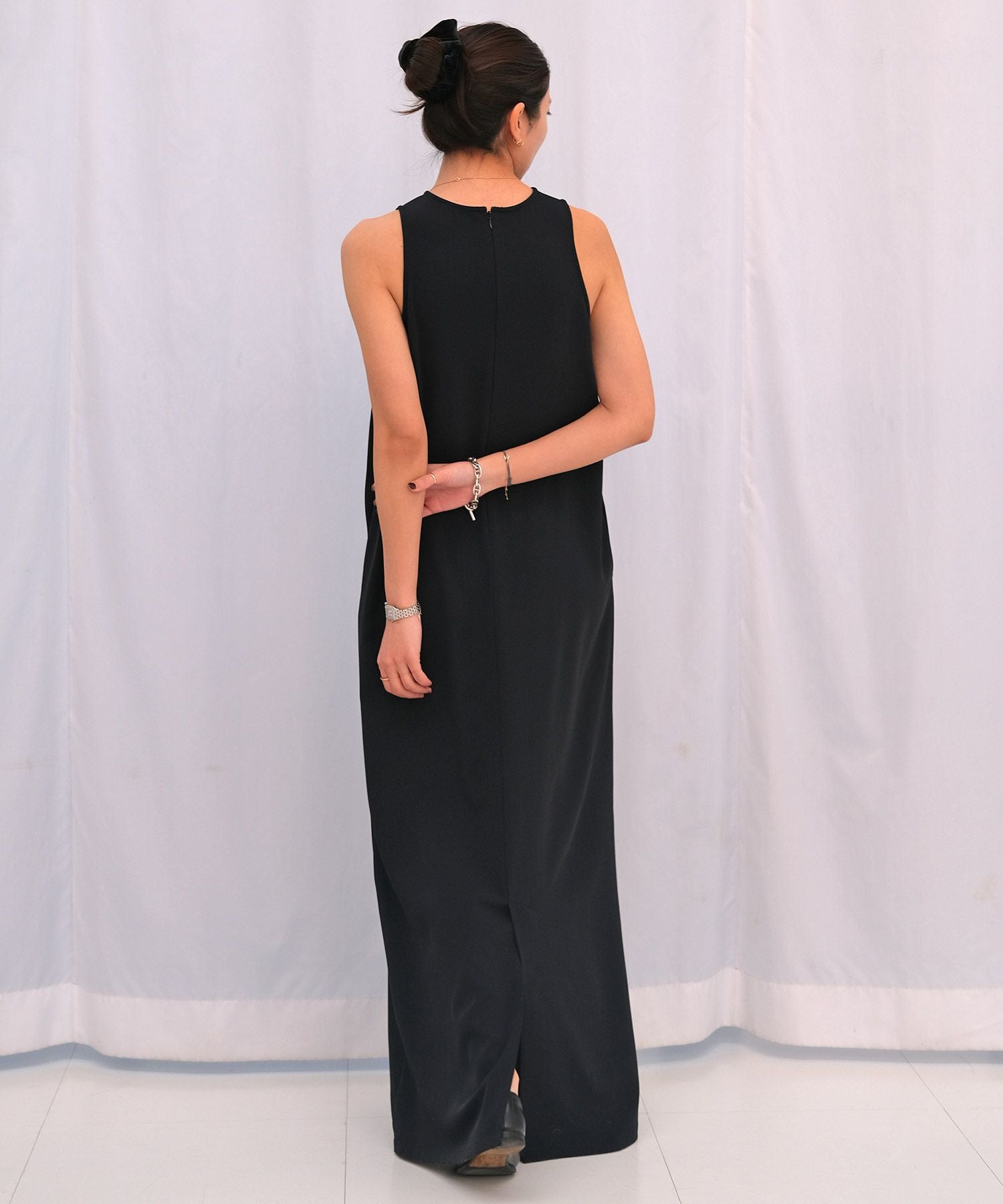 ミニマルなノースリーブデザインで肩回りを華奢に見せてくれます。