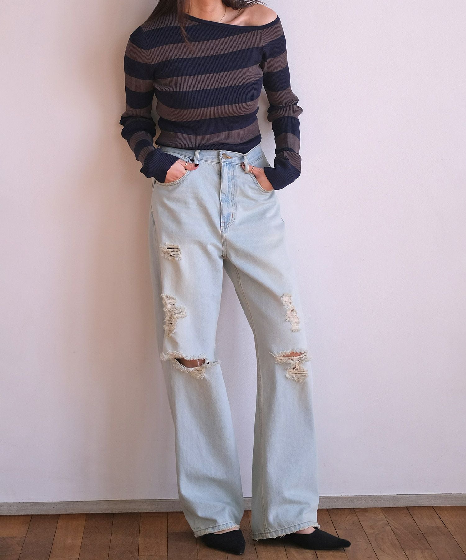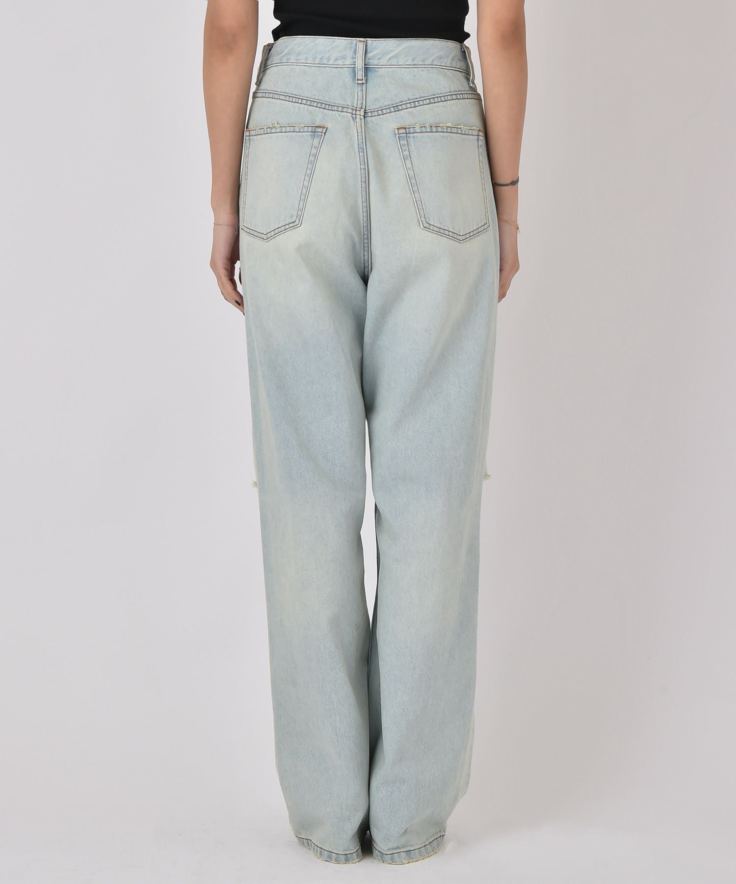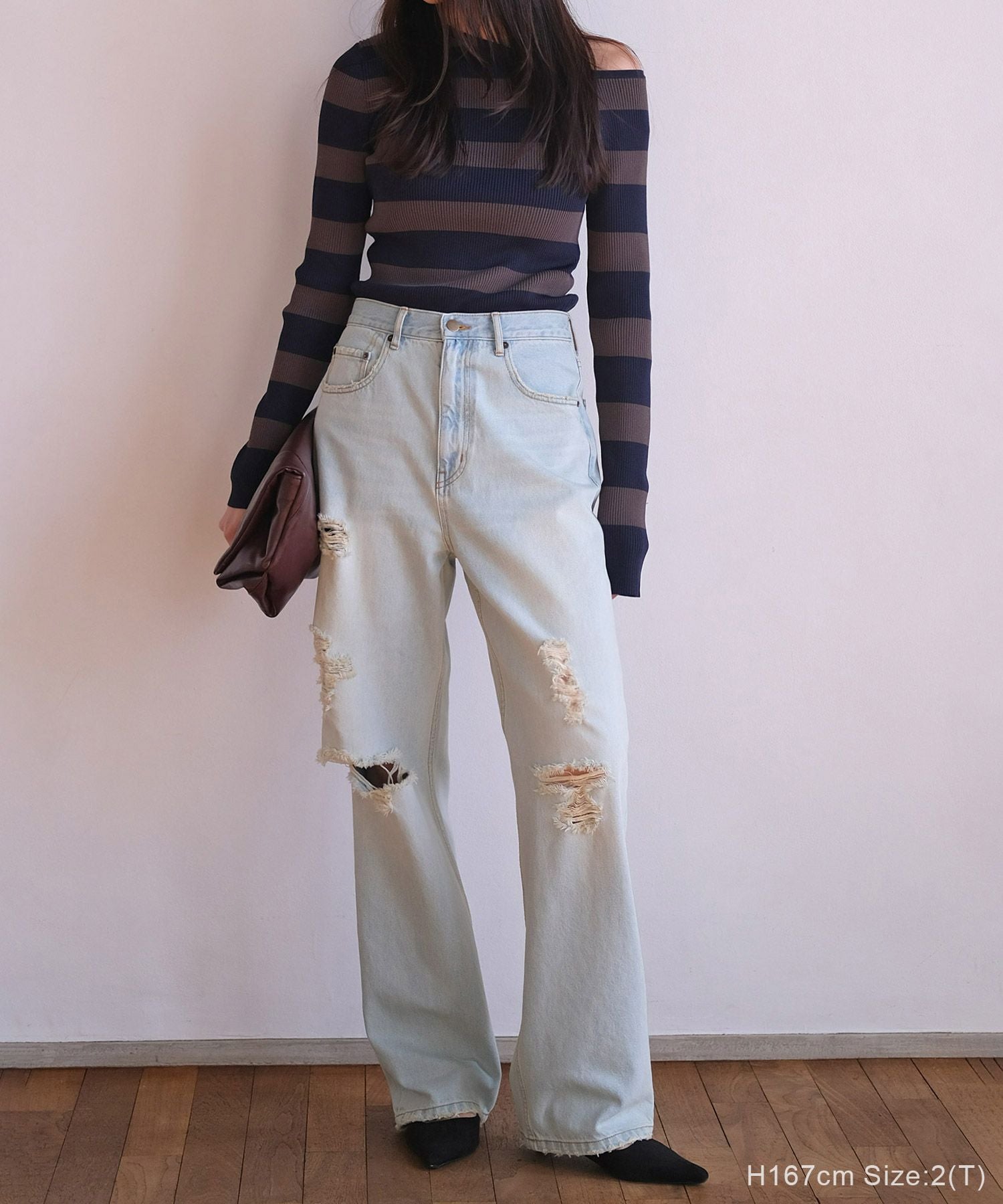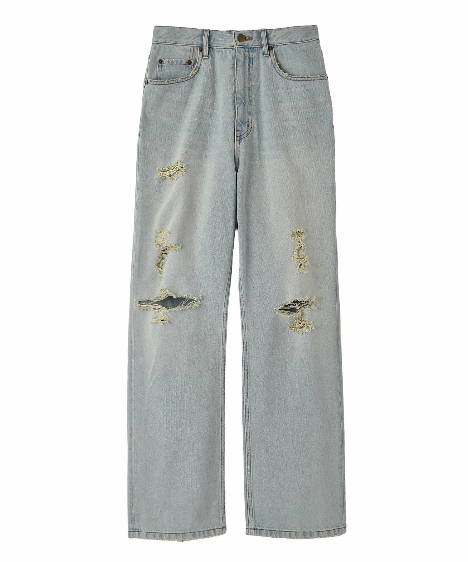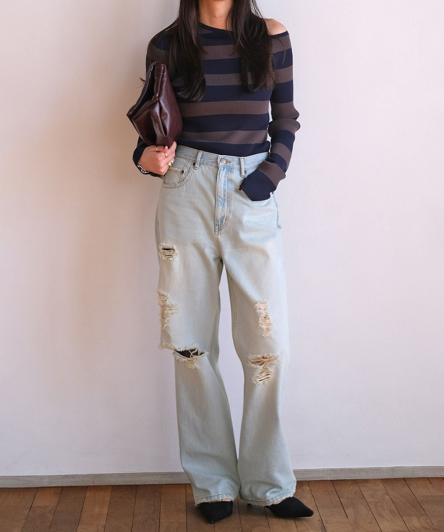 ダメージデザイン×ストレートシルエットがカジュアルになりすぎない、大人にこなれるデニムパンツ