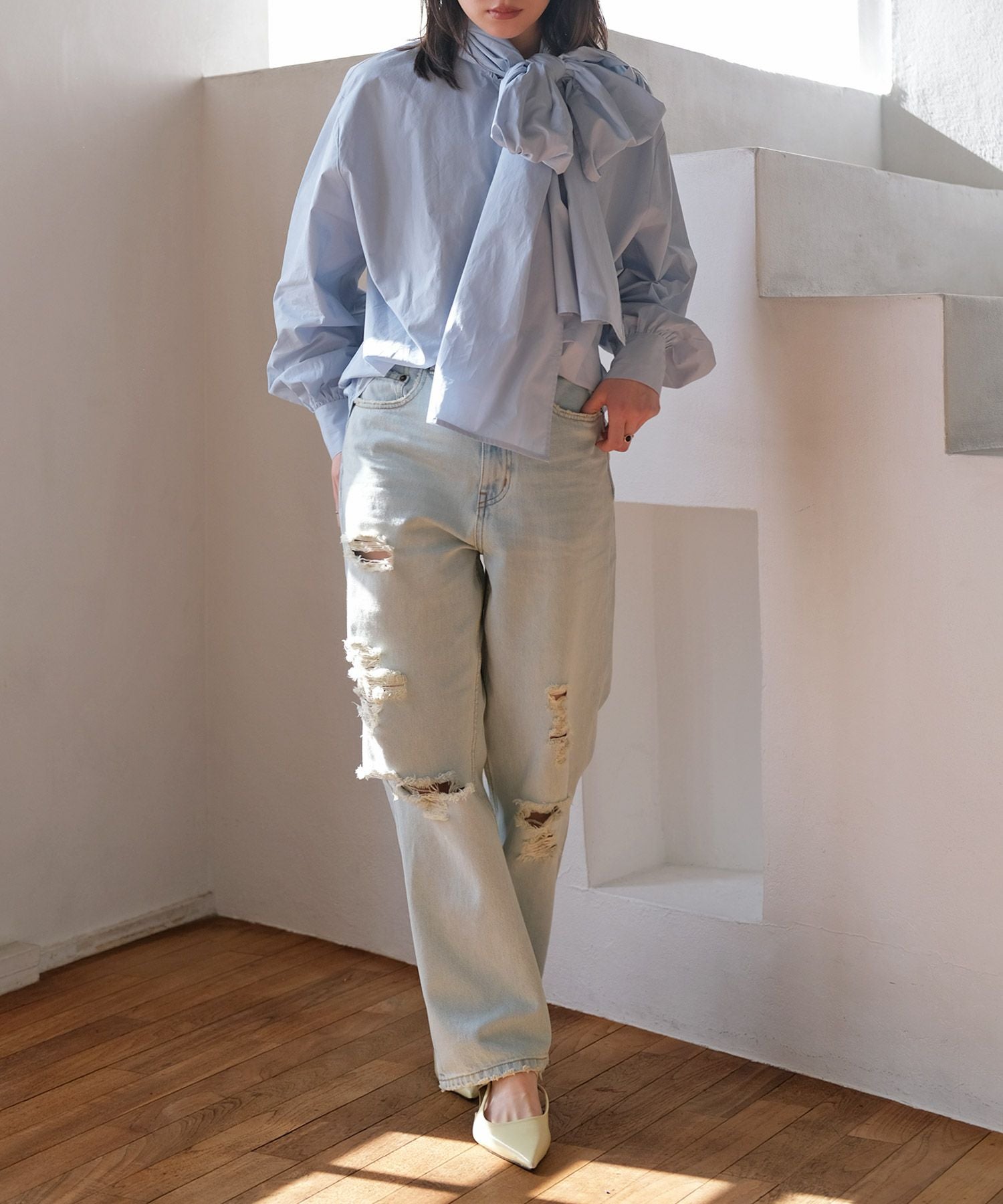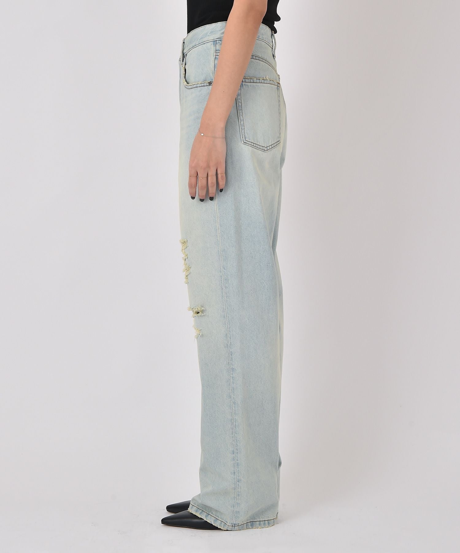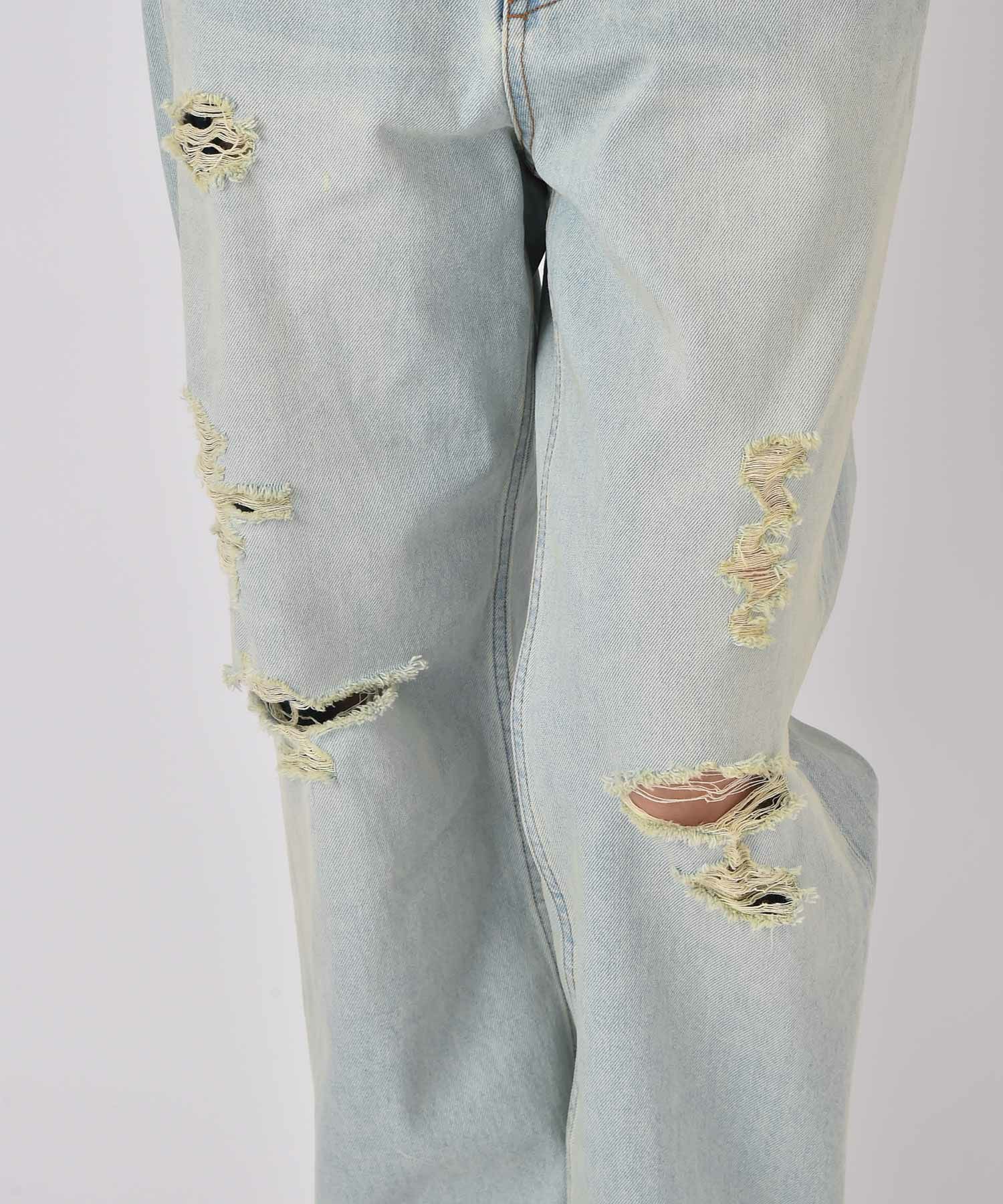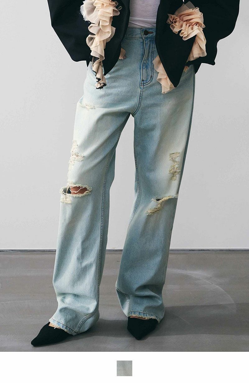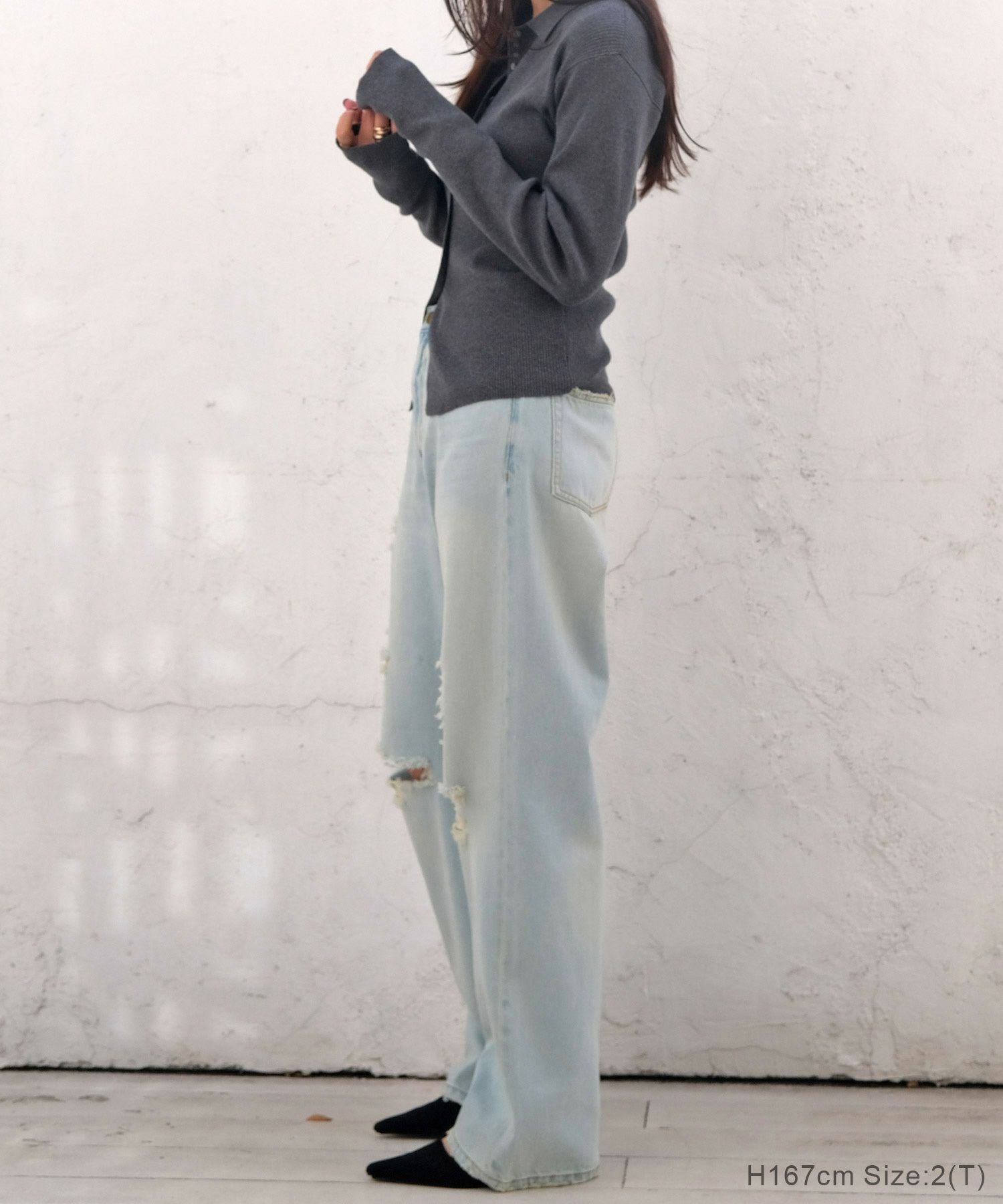 ダメージデザイン×ストレートシルエットがカジュアルになりすぎない、大人にこなれるデニムパンツ