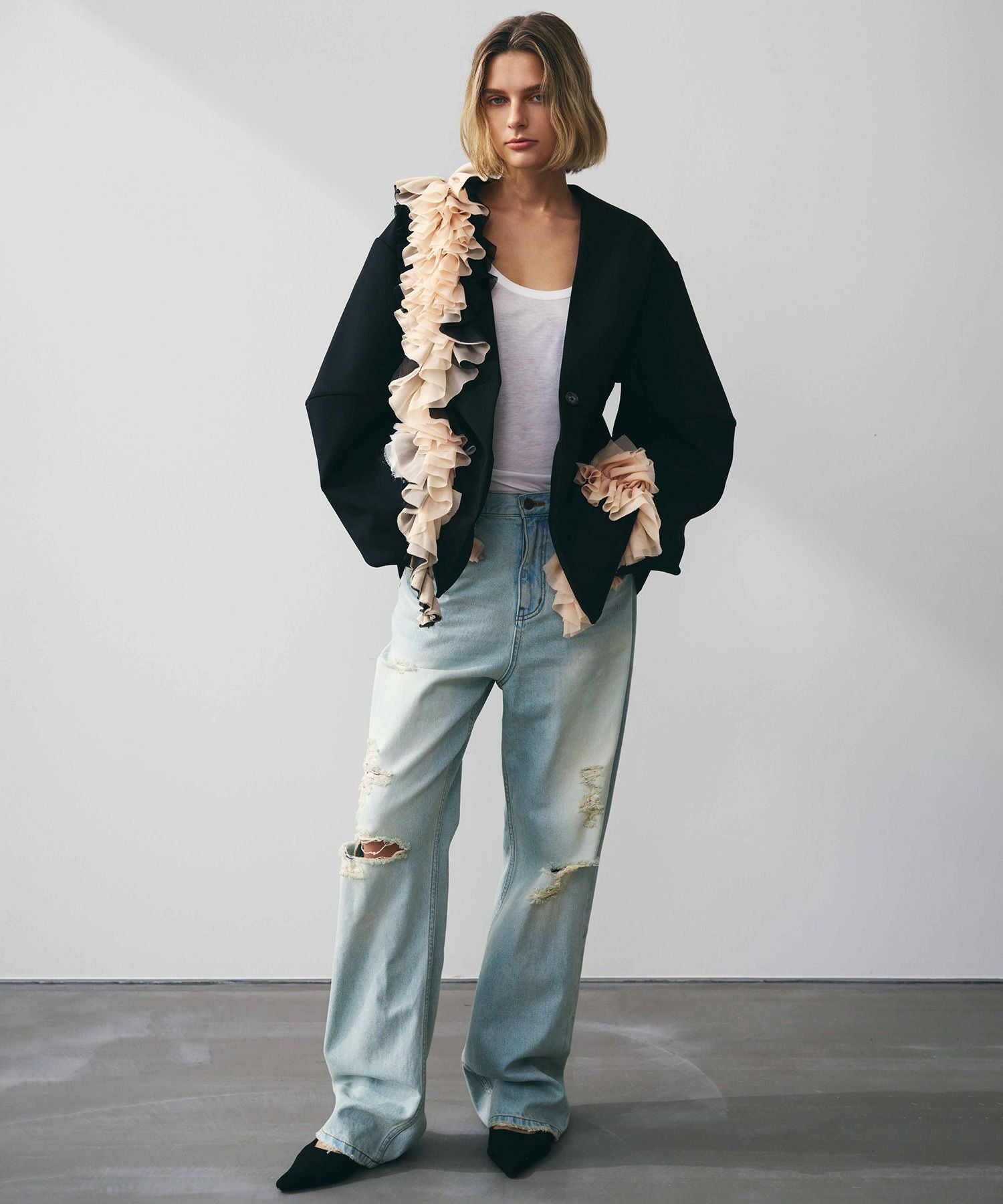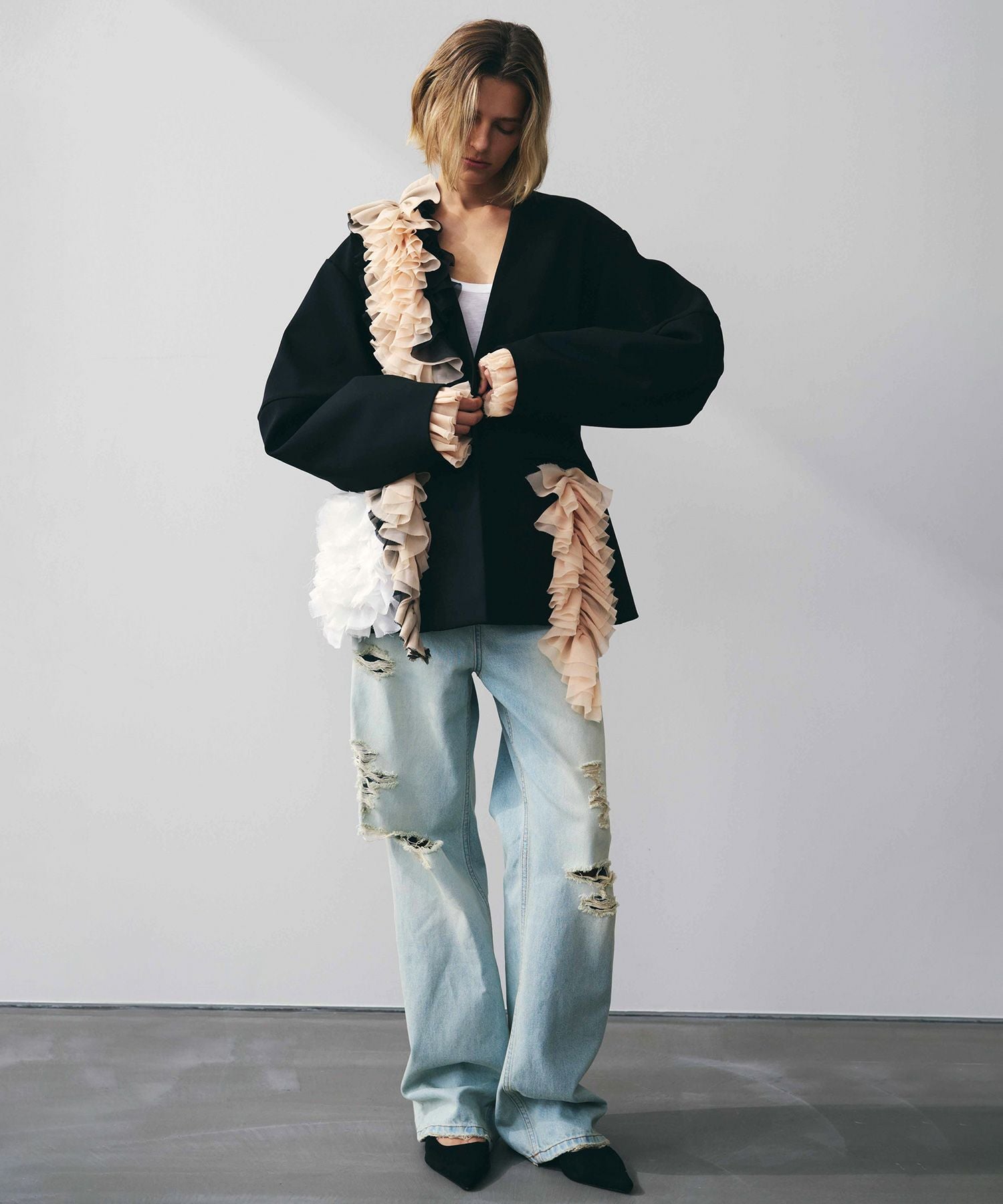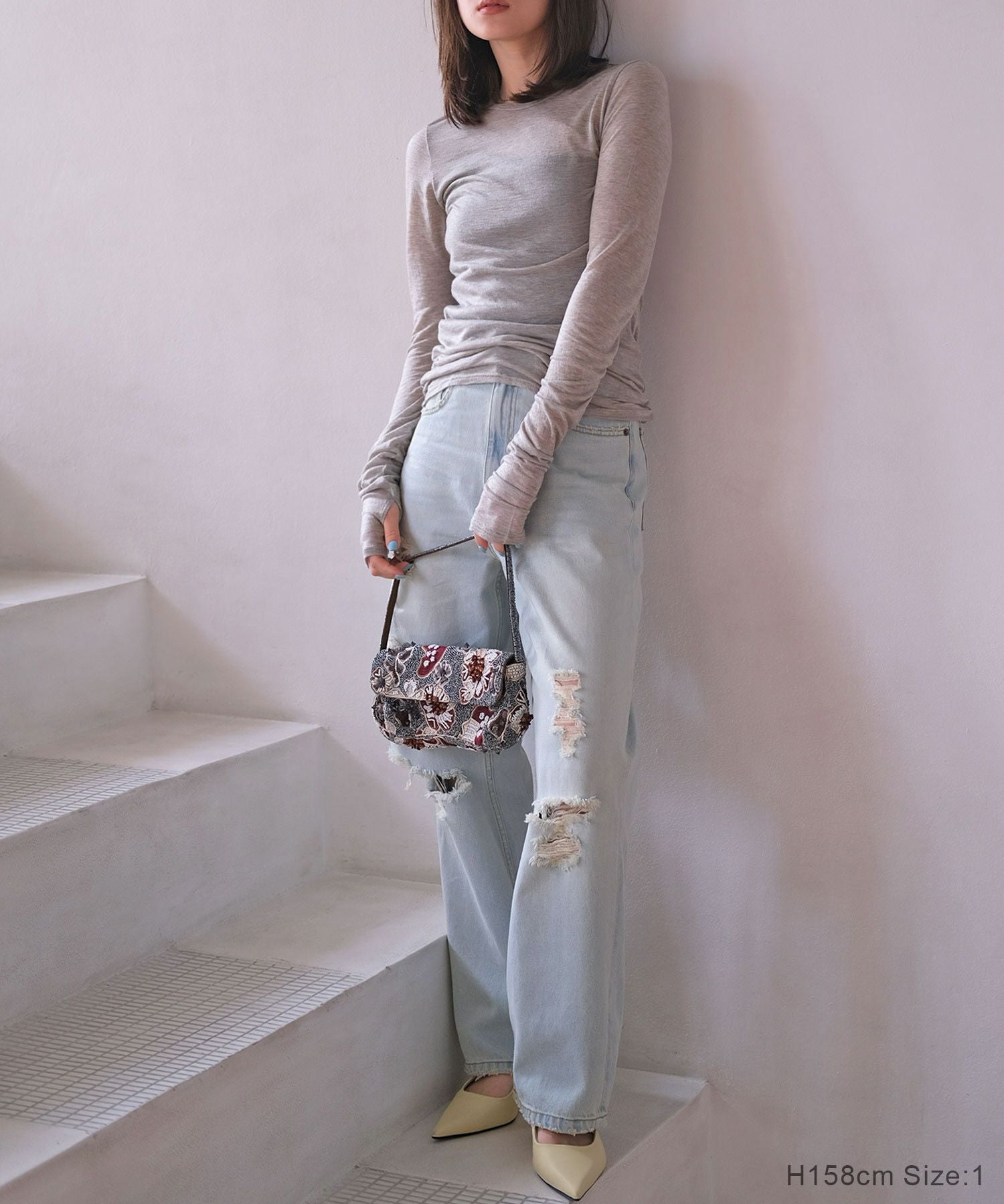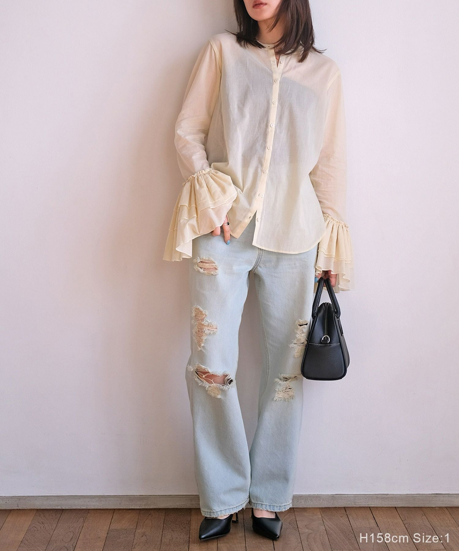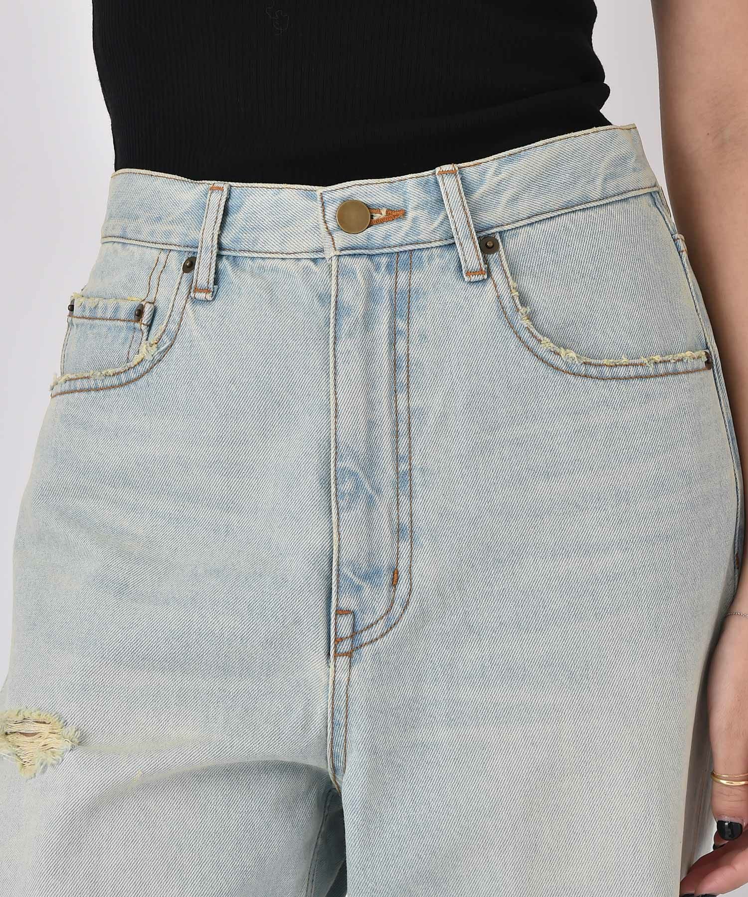 ダメージデザイン×ストレートシルエットがカジュアルになりすぎない、大人にこなれるデニムパンツ