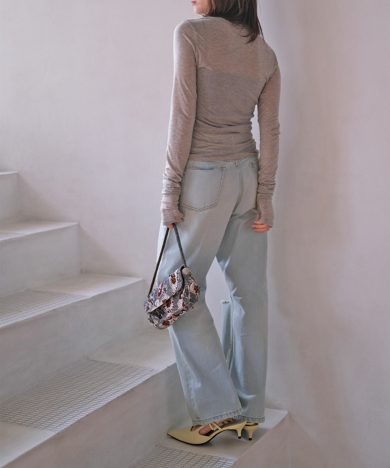 シンプルなTシャツやジャケットを合わせるだけで、こなれた雰囲気のあるスタイリングが完成するアイテム。