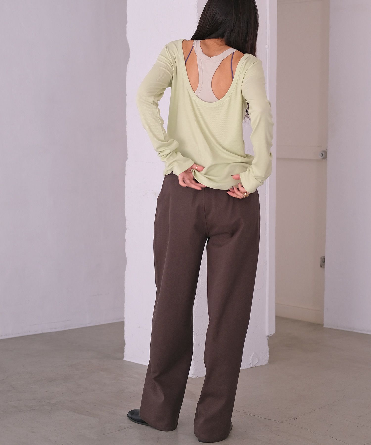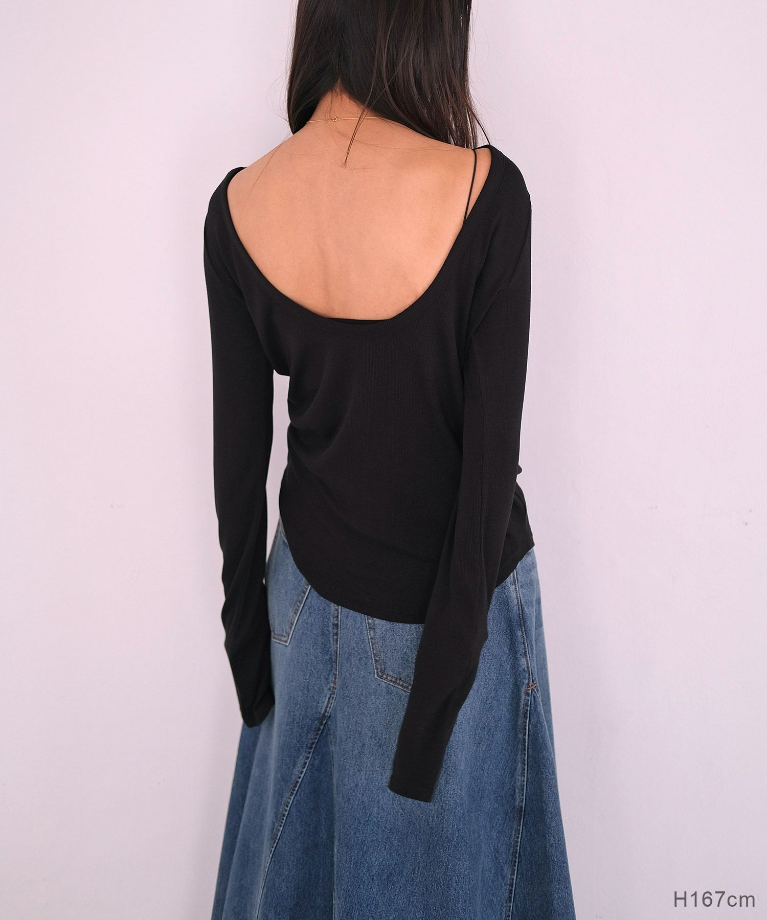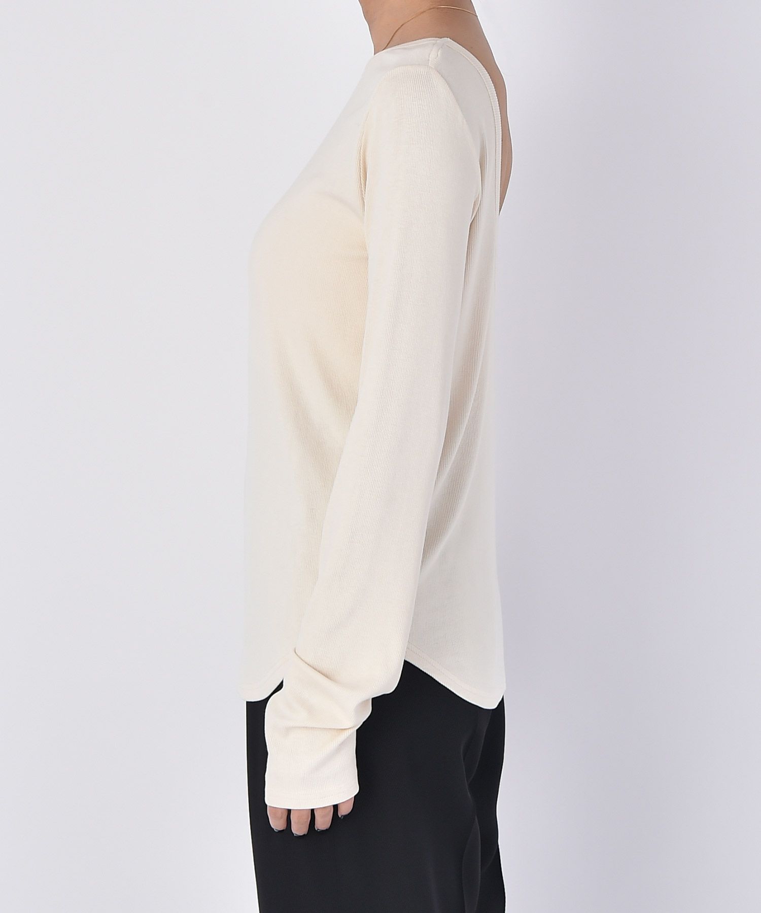 大胆に開いたバックデザインが引き立つシンプルで万能なプルオーバー