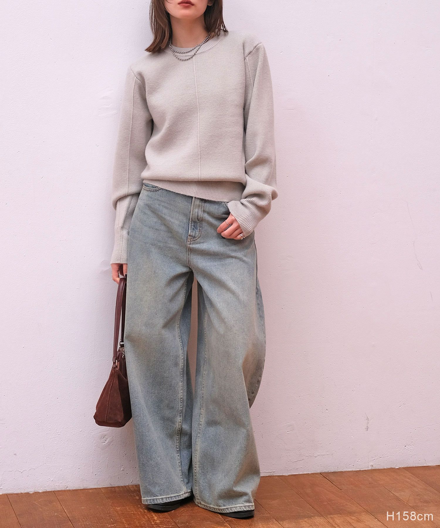 ニットのカジュアルさがありながら、詰まったクルーネックが品のあるクリーンさを演出します。