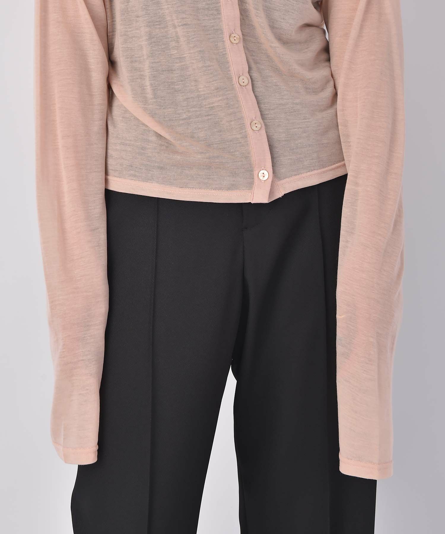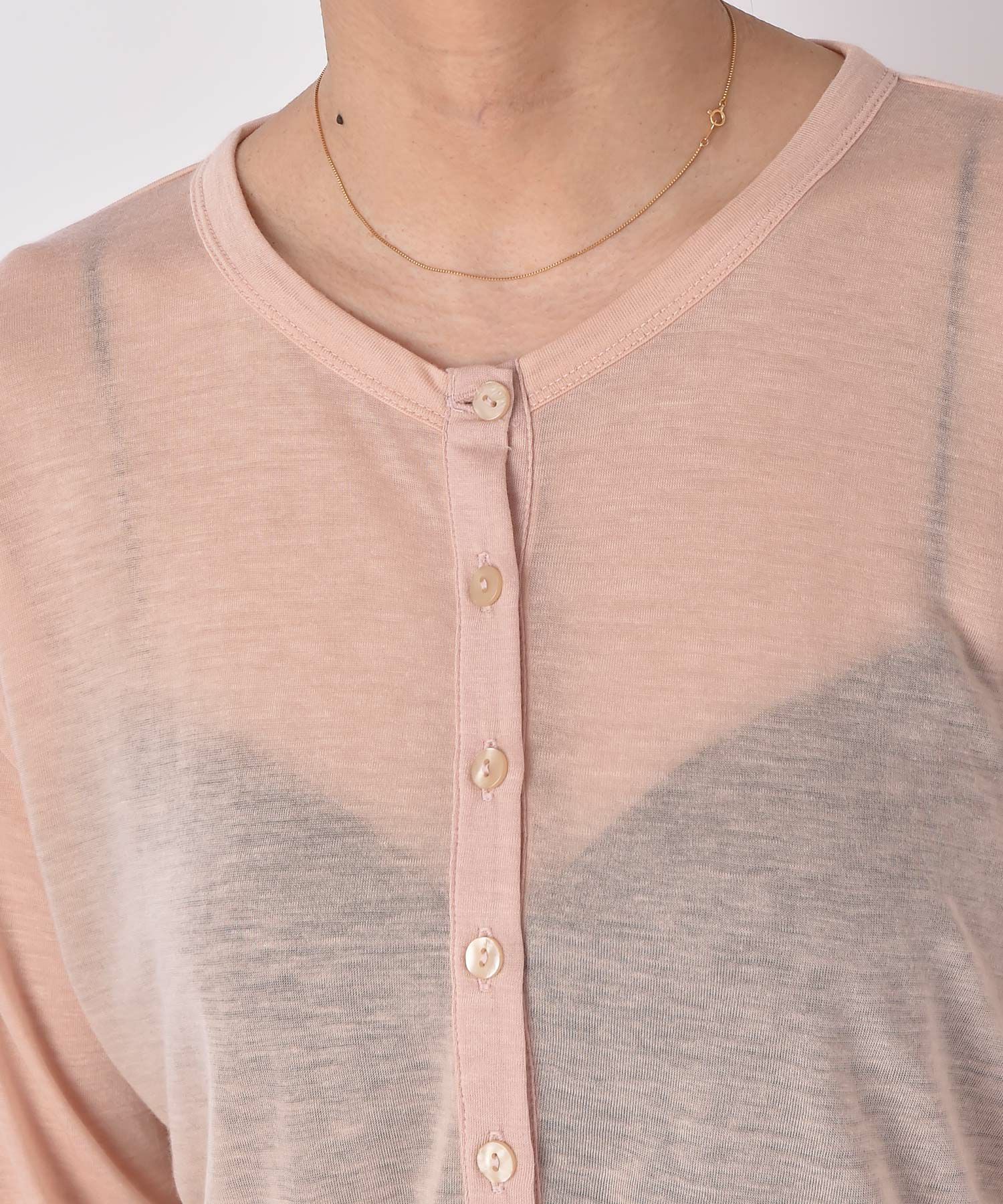さり気ない肌見せができるシアーのカットソーカーディガン。