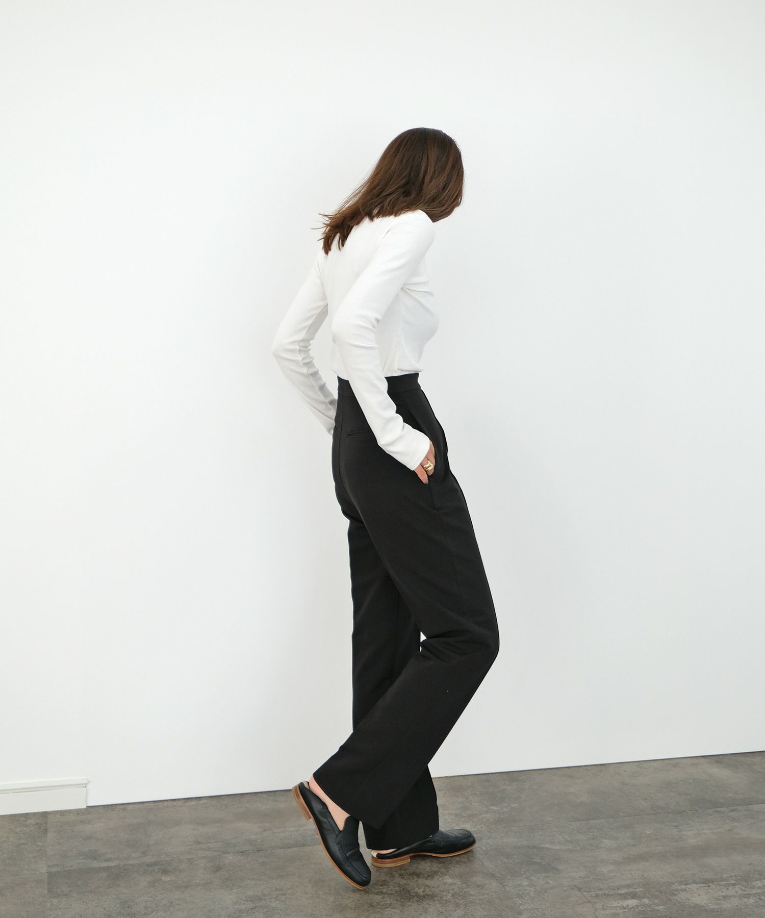 長めの袖丈と裾の船底とロック仕様がニュアンス感をプラス。