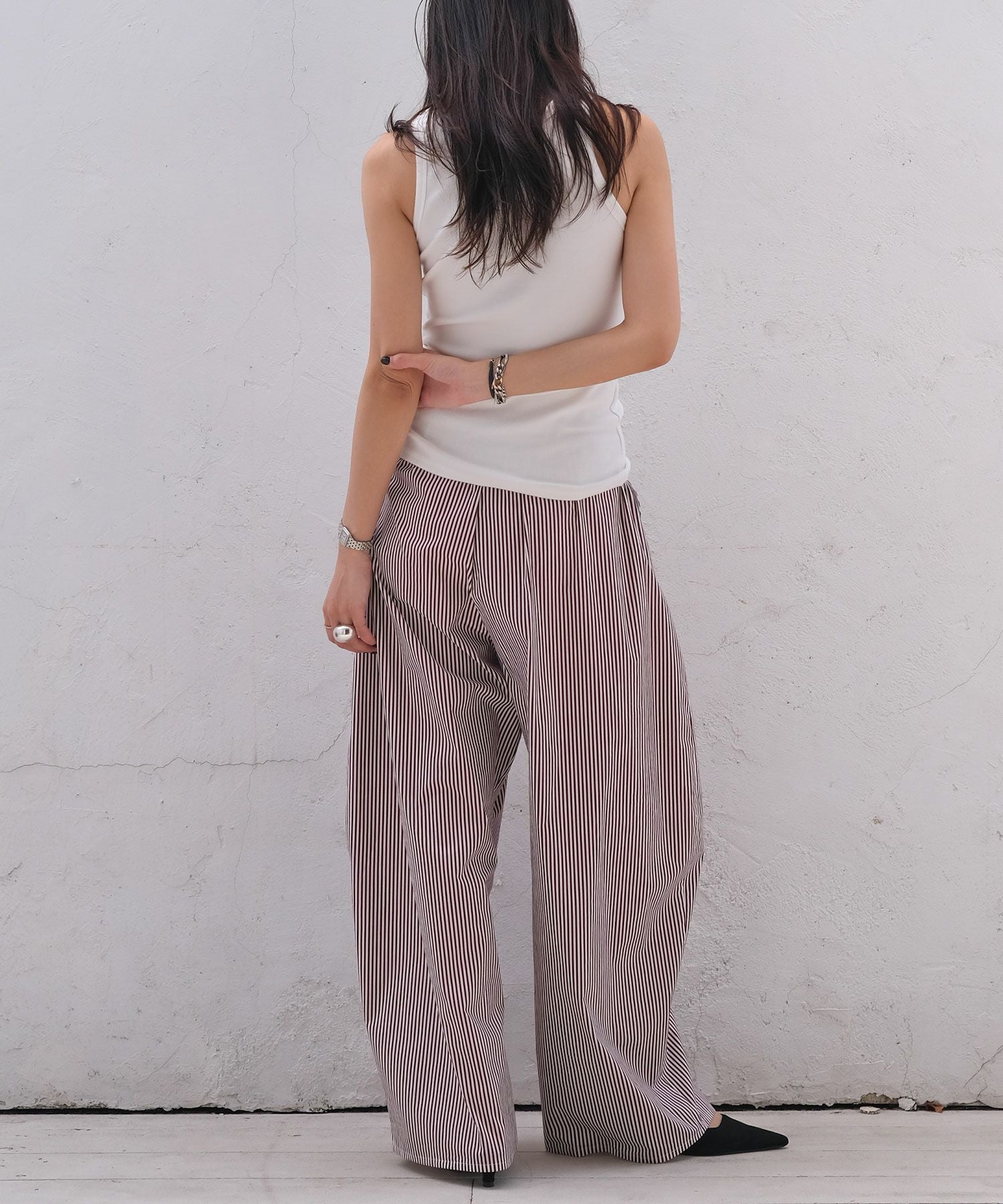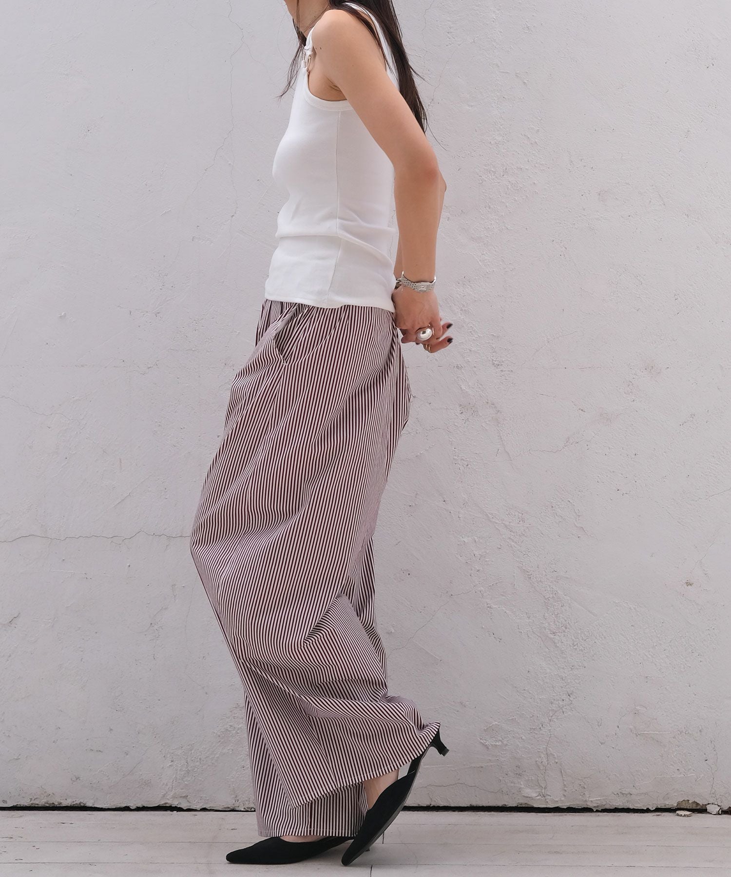 タイトすぎない絶妙なフィット感は、モードにもカジュアルにも着こなせる万能アイテムです。
