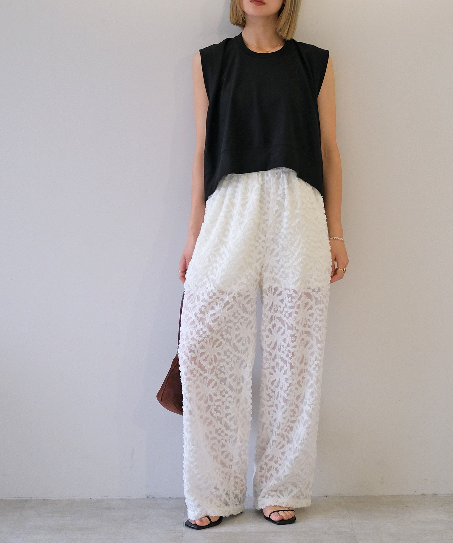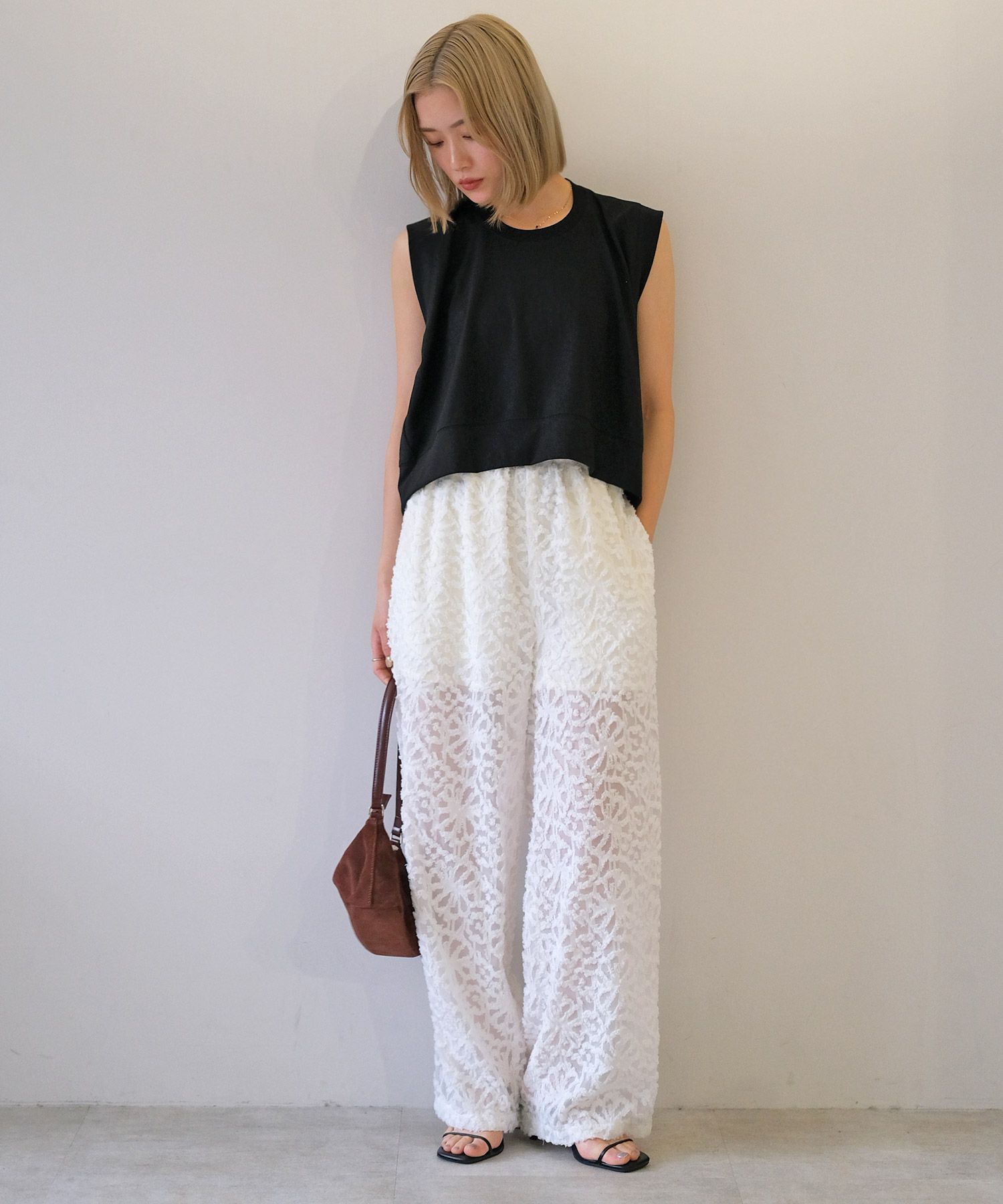 ゆったりとしたサイジングがリラクシーさもありながら、クロップド丈にすることでスタイルアップ効果も。