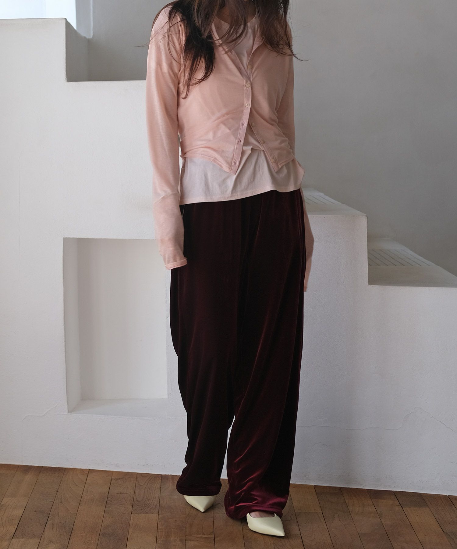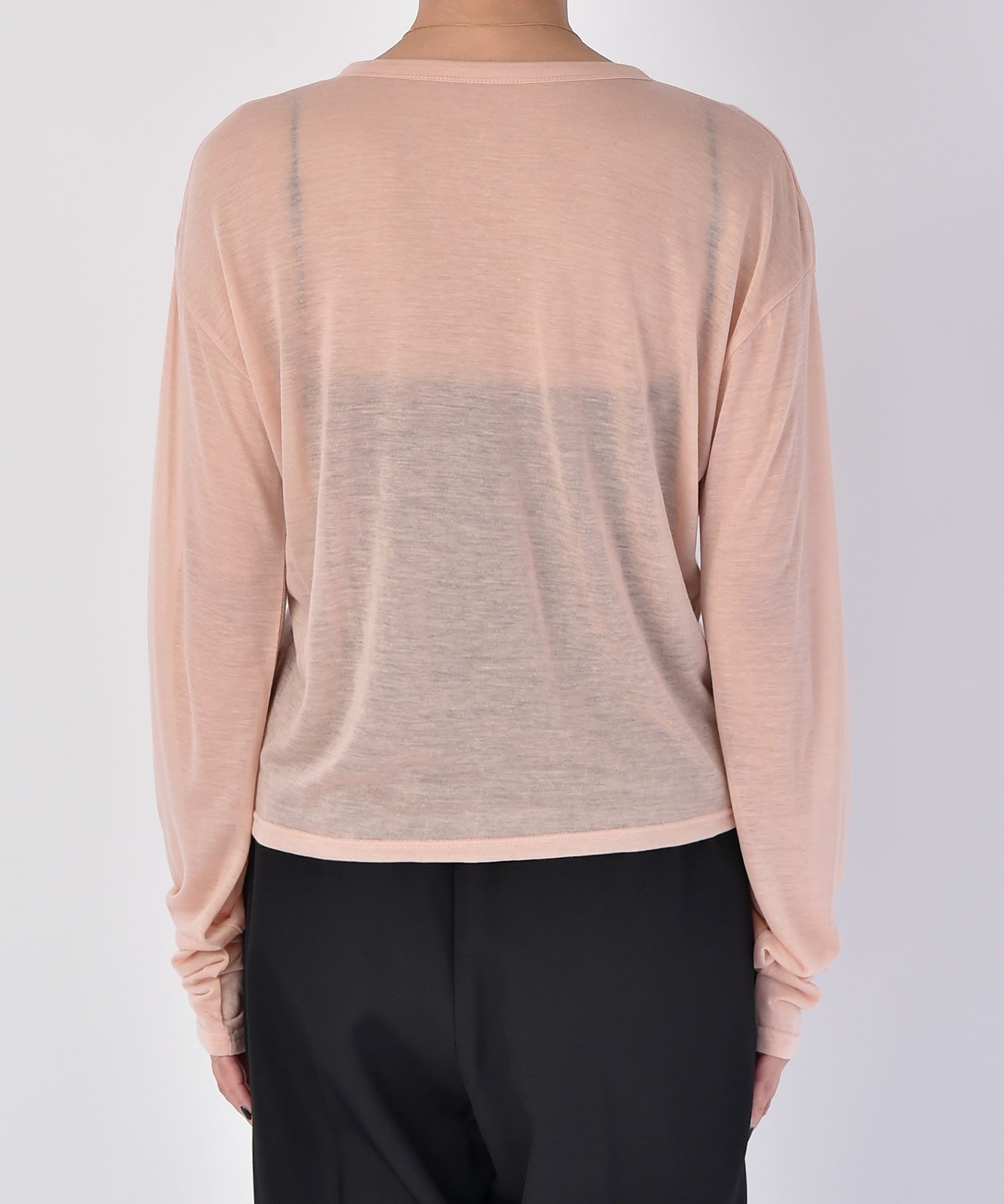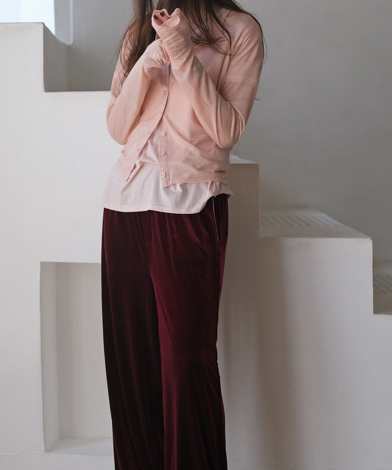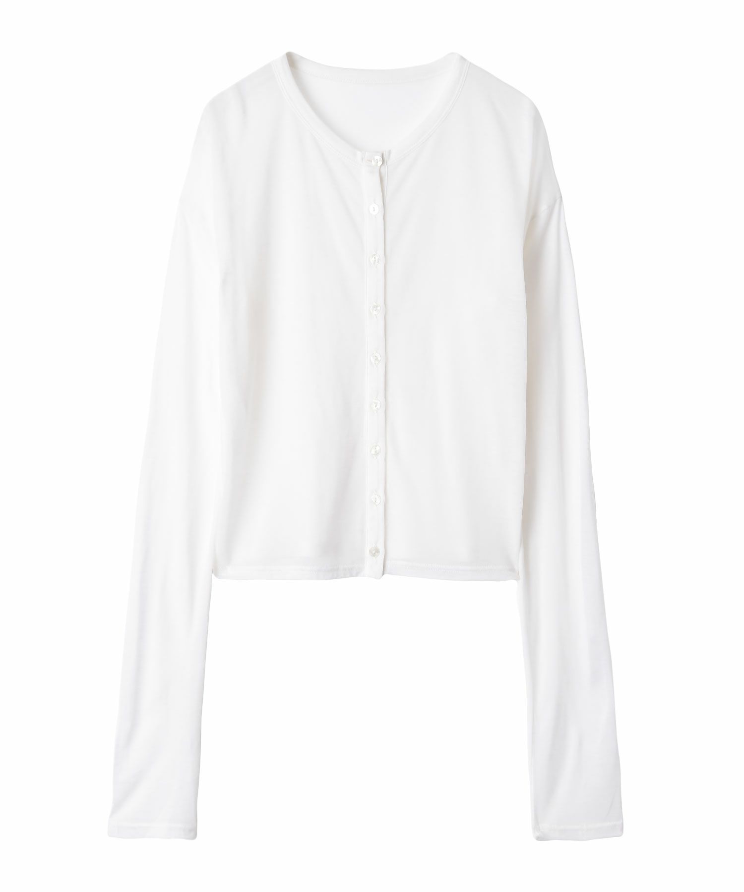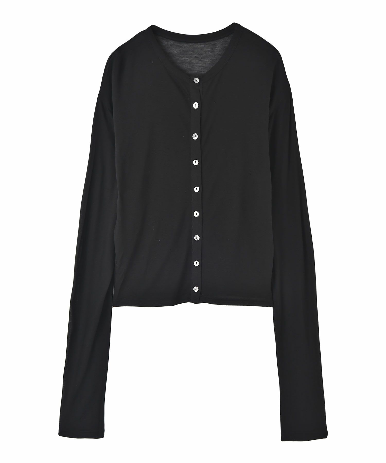 さり気ない肌見せができるシアーのカットソーカーディガン。