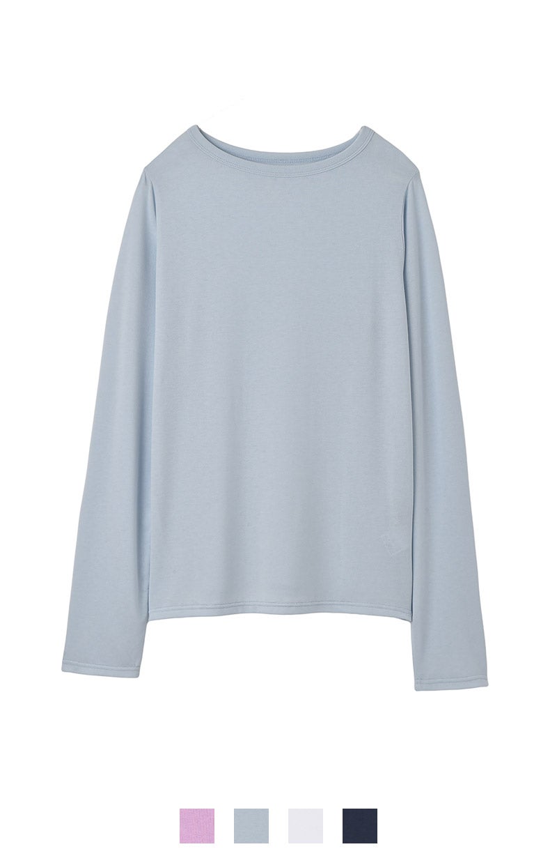 薄手なのでジャケットやニットなどのインナーとしてももたつきにくく、ロングシーズンで使えるのも魅力。