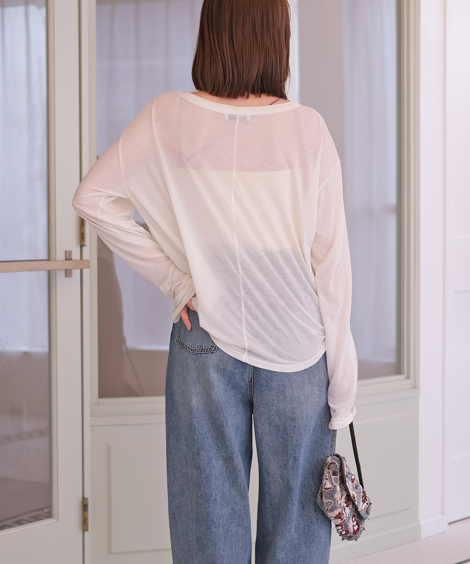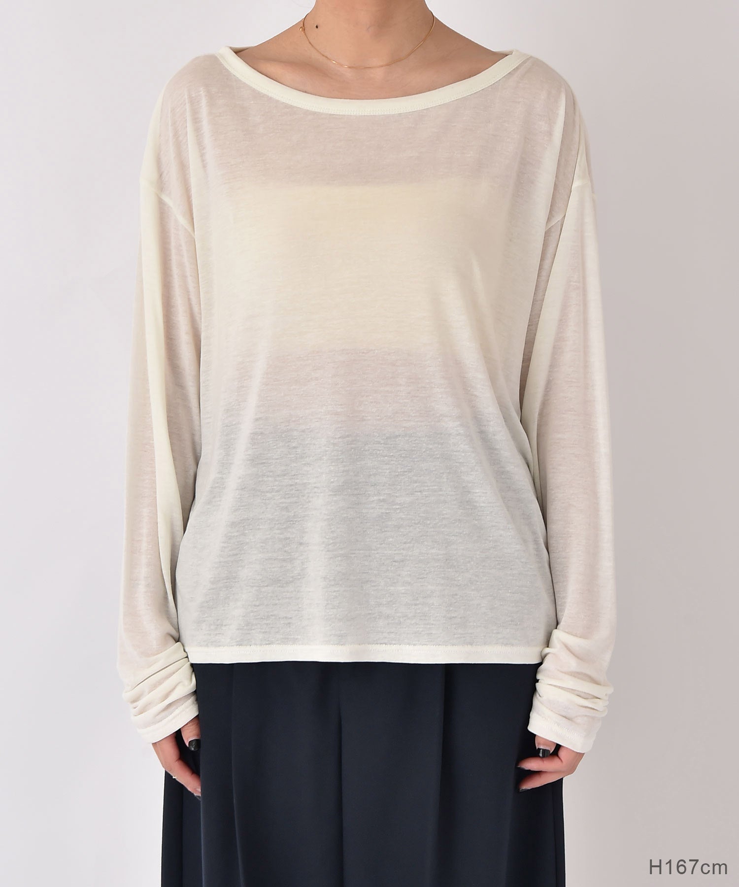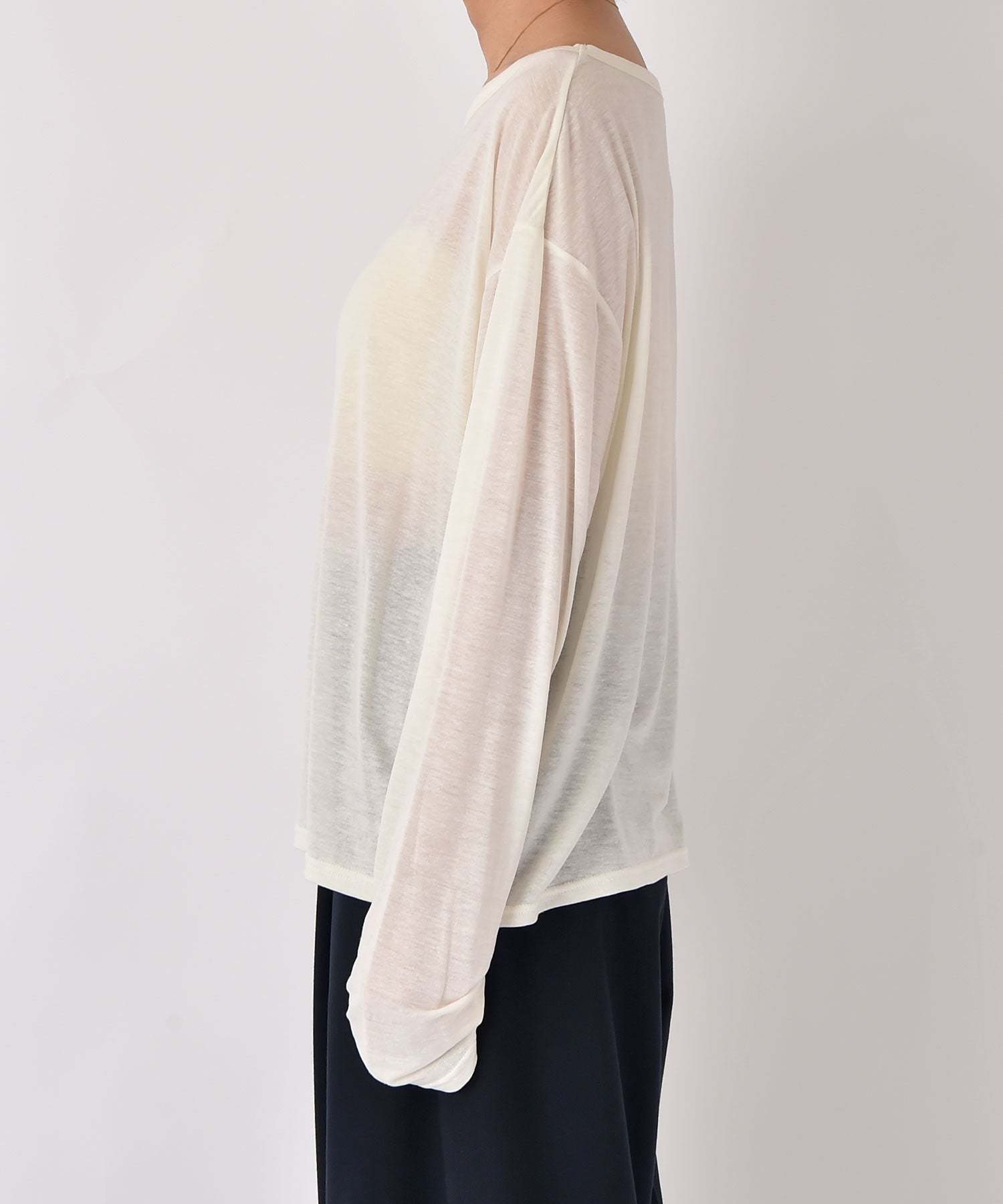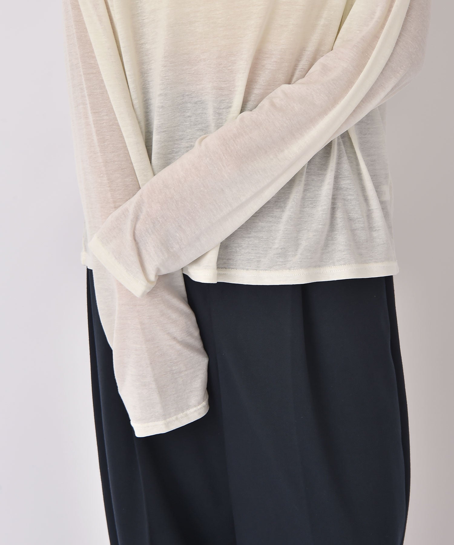 程よい透けがスタイリングに軽さをプラスし、抜け感のある大人のリラックススタイルを演出するロングTシャツ。