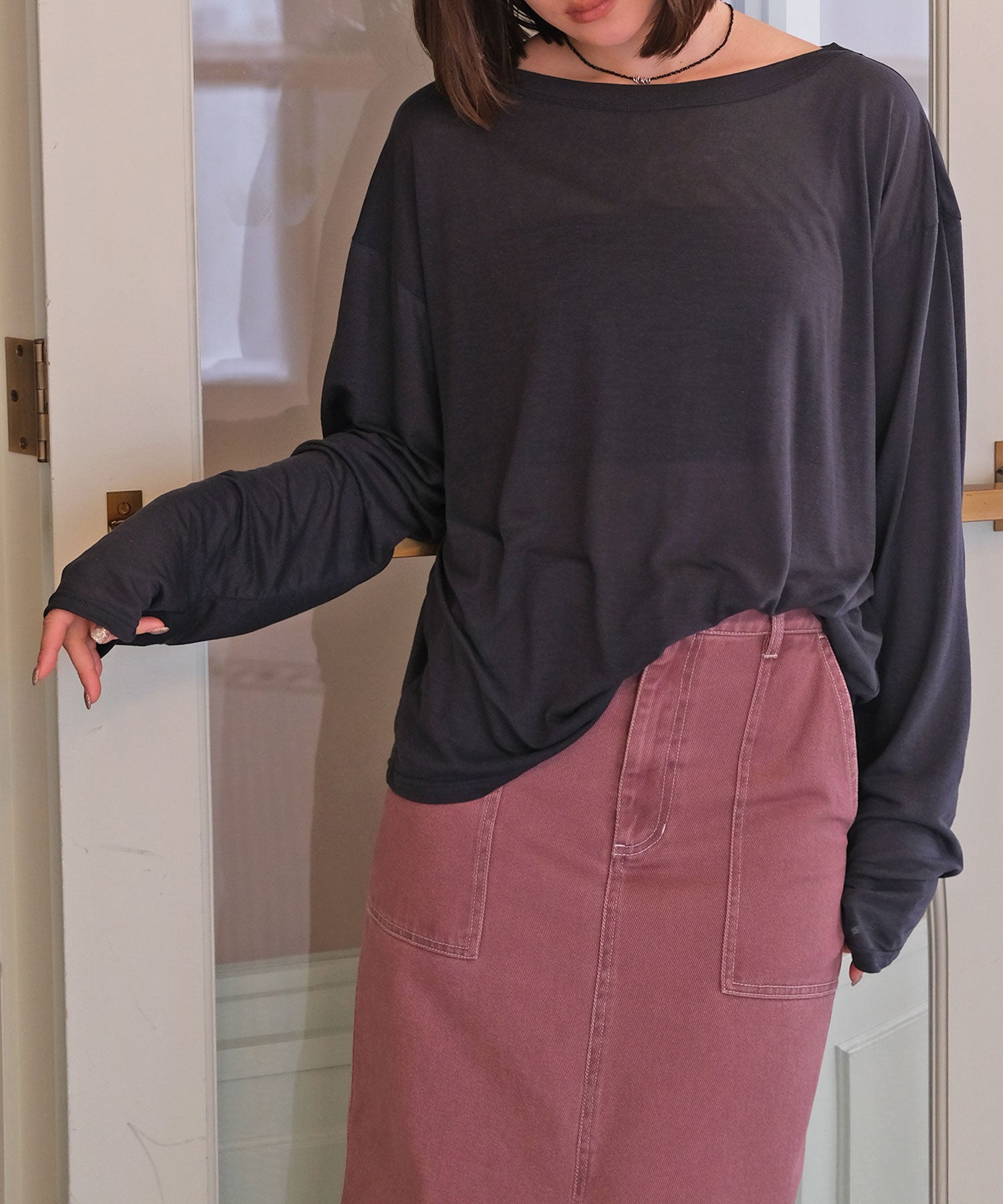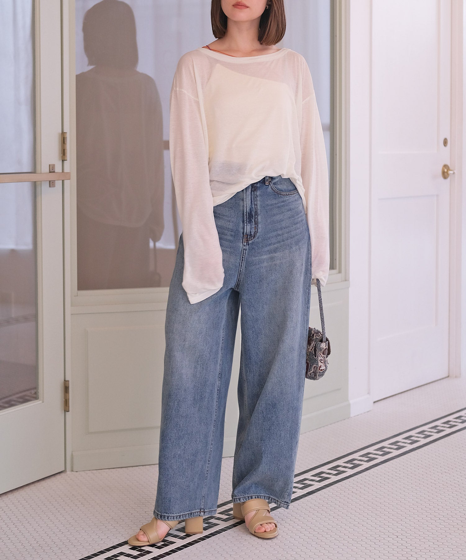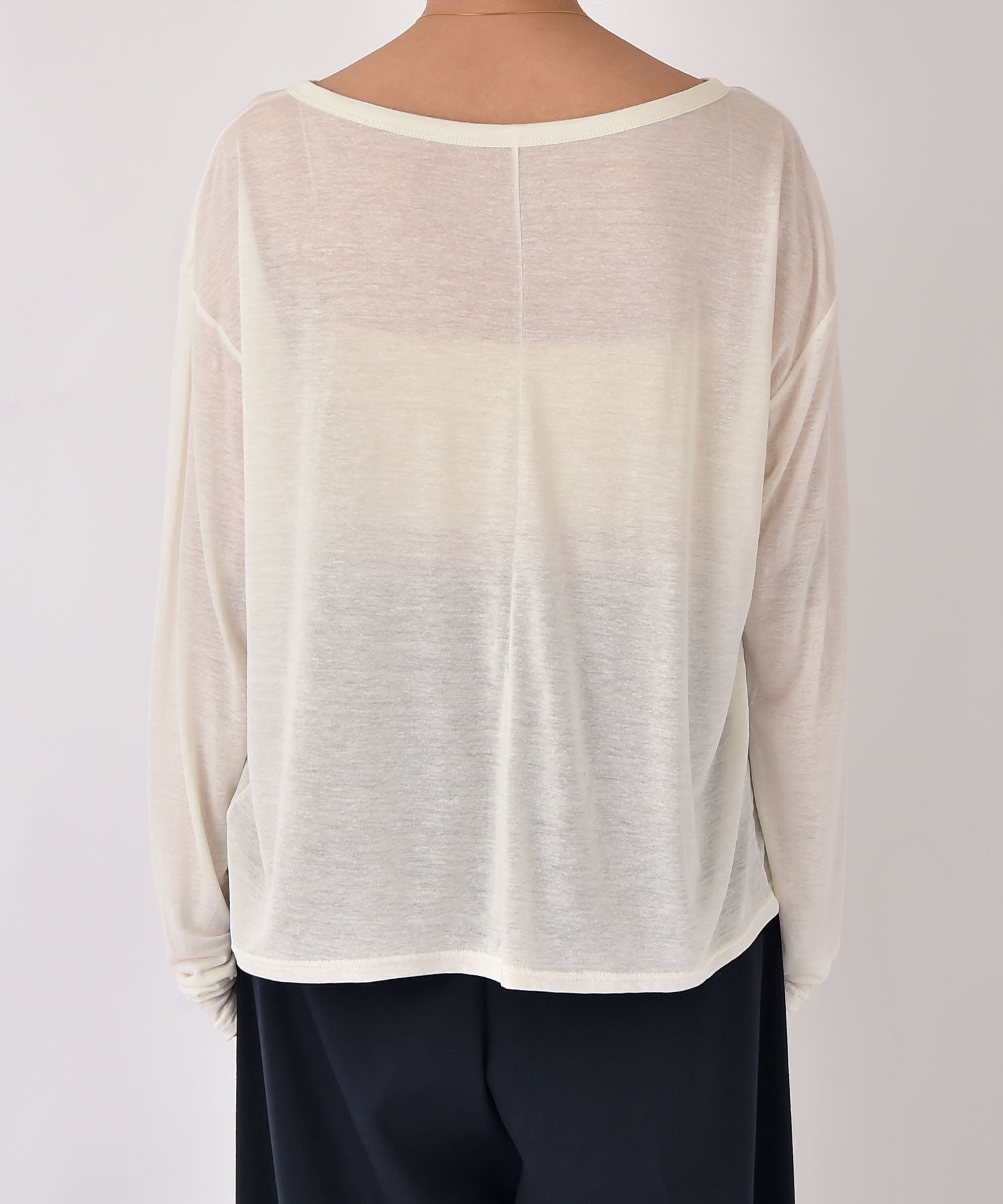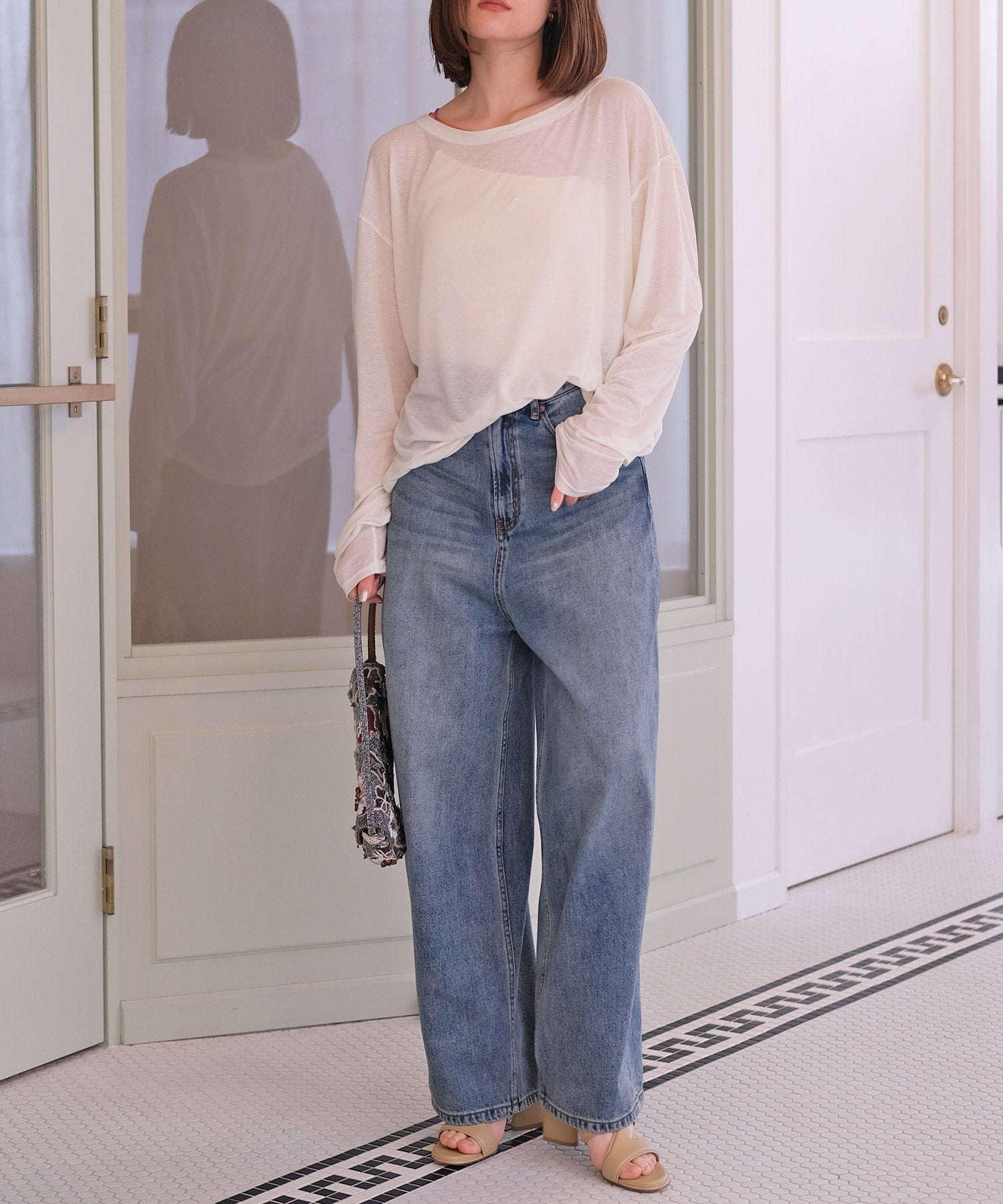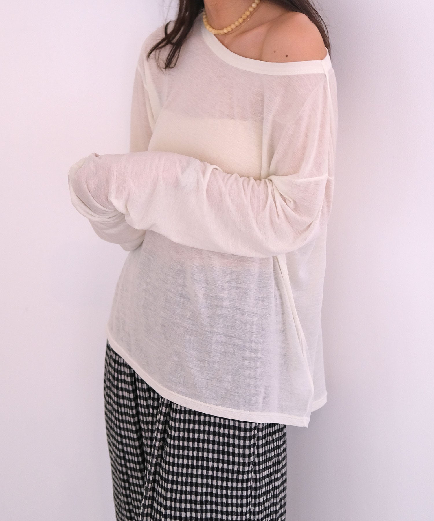 程よい透けがスタイリングに軽さをプラスし、抜け感のある大人のリラックススタイルを演出するロングTシャツ。