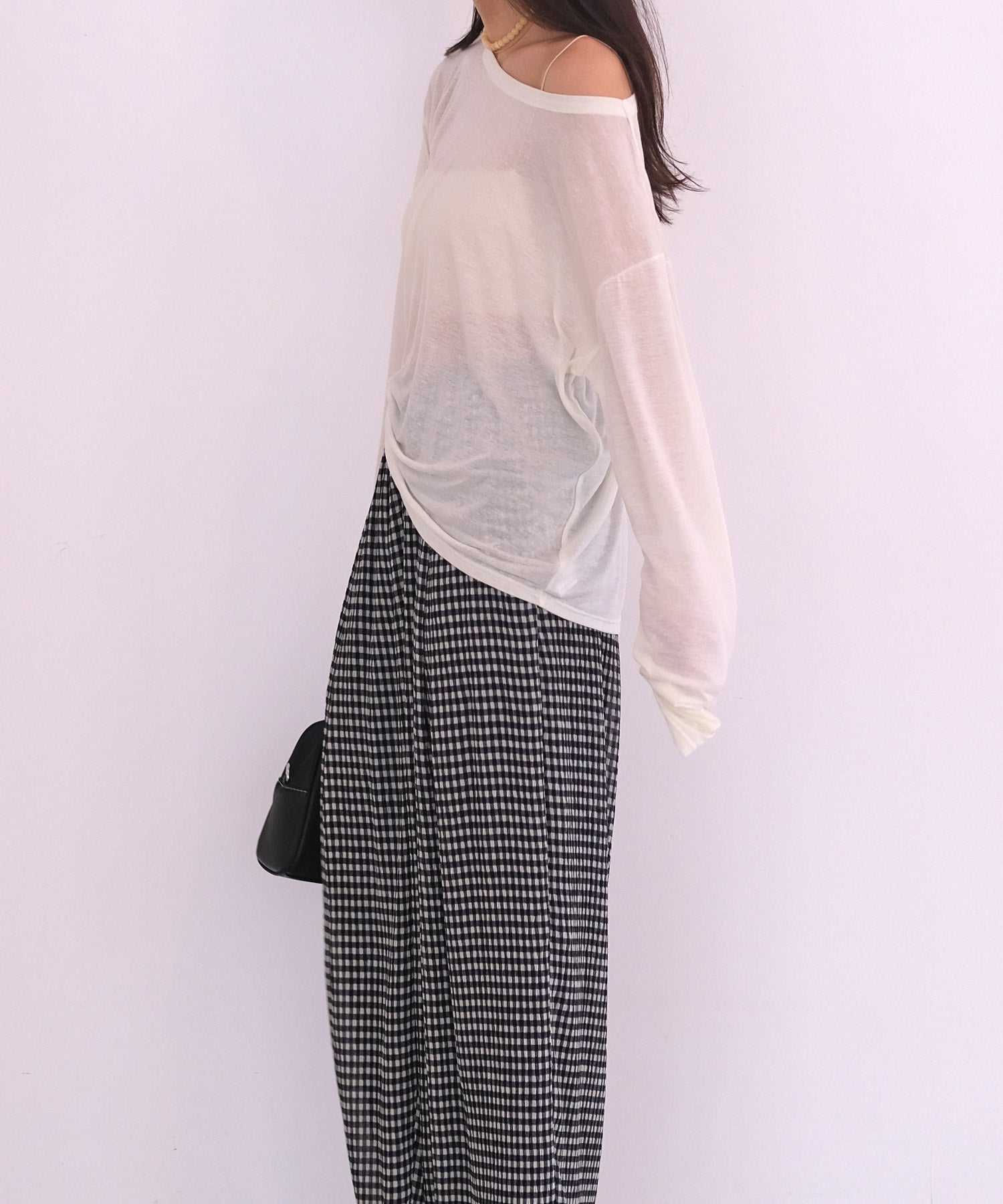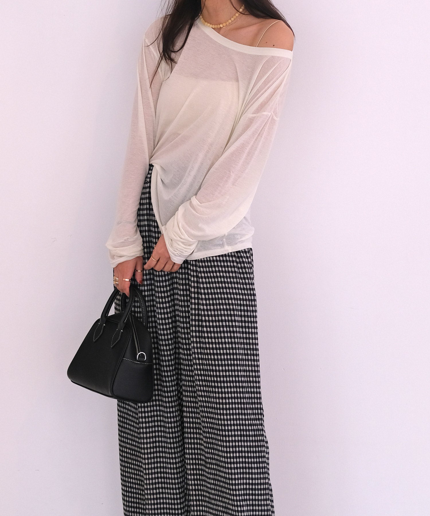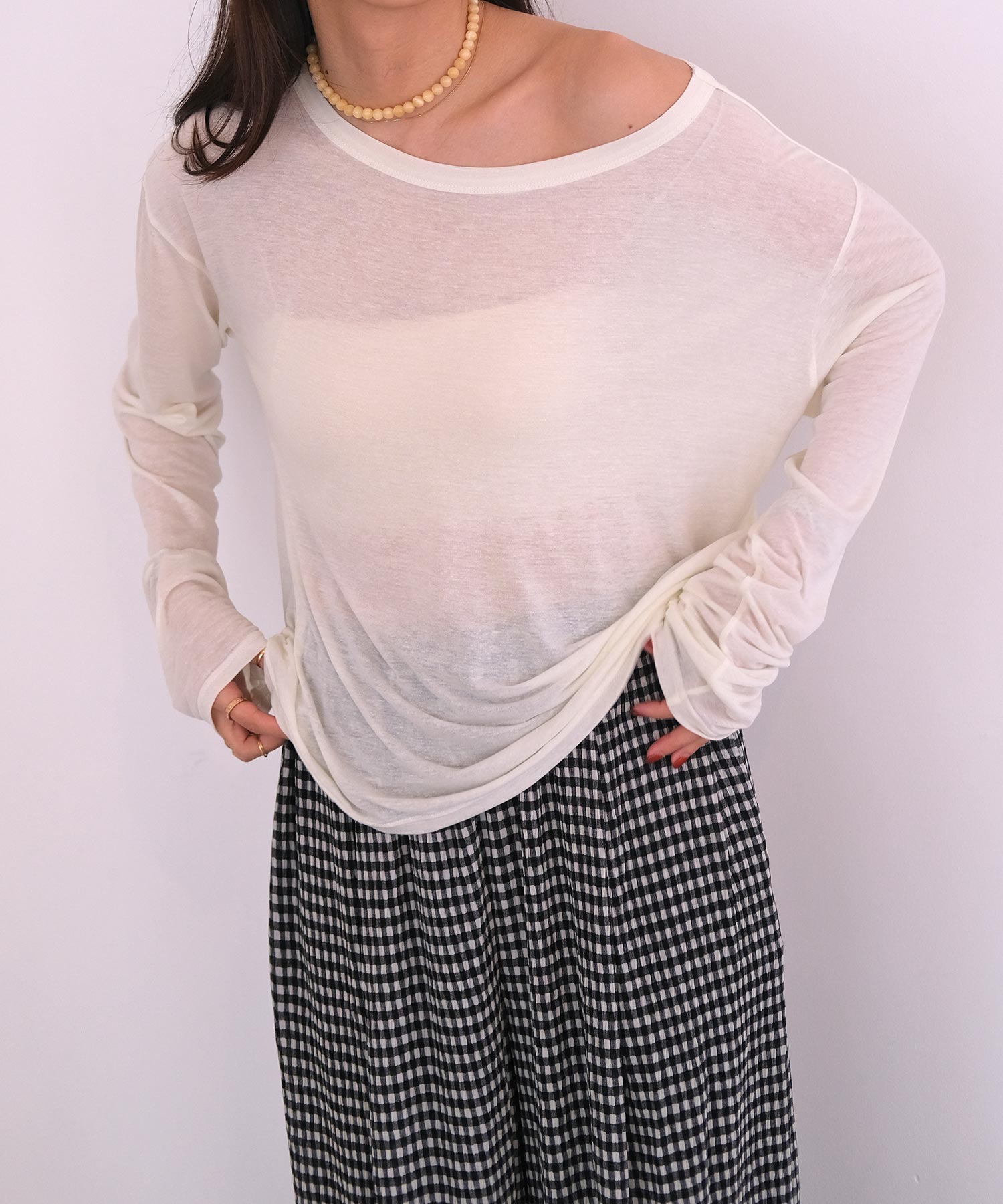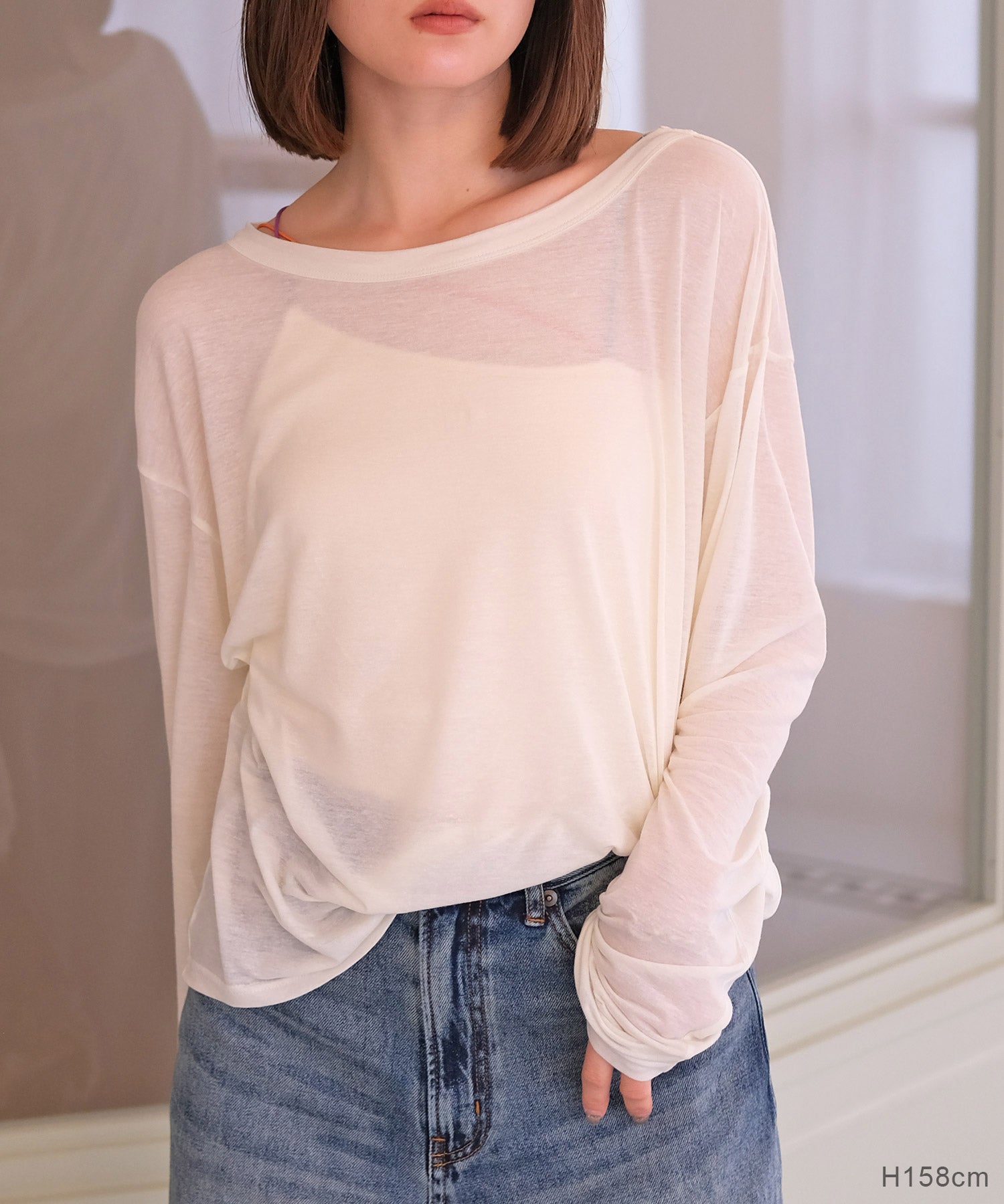 程よい透けがスタイリングに軽さをプラスし、抜け感のある大人のリラックススタイルを演出するロングTシャツ。