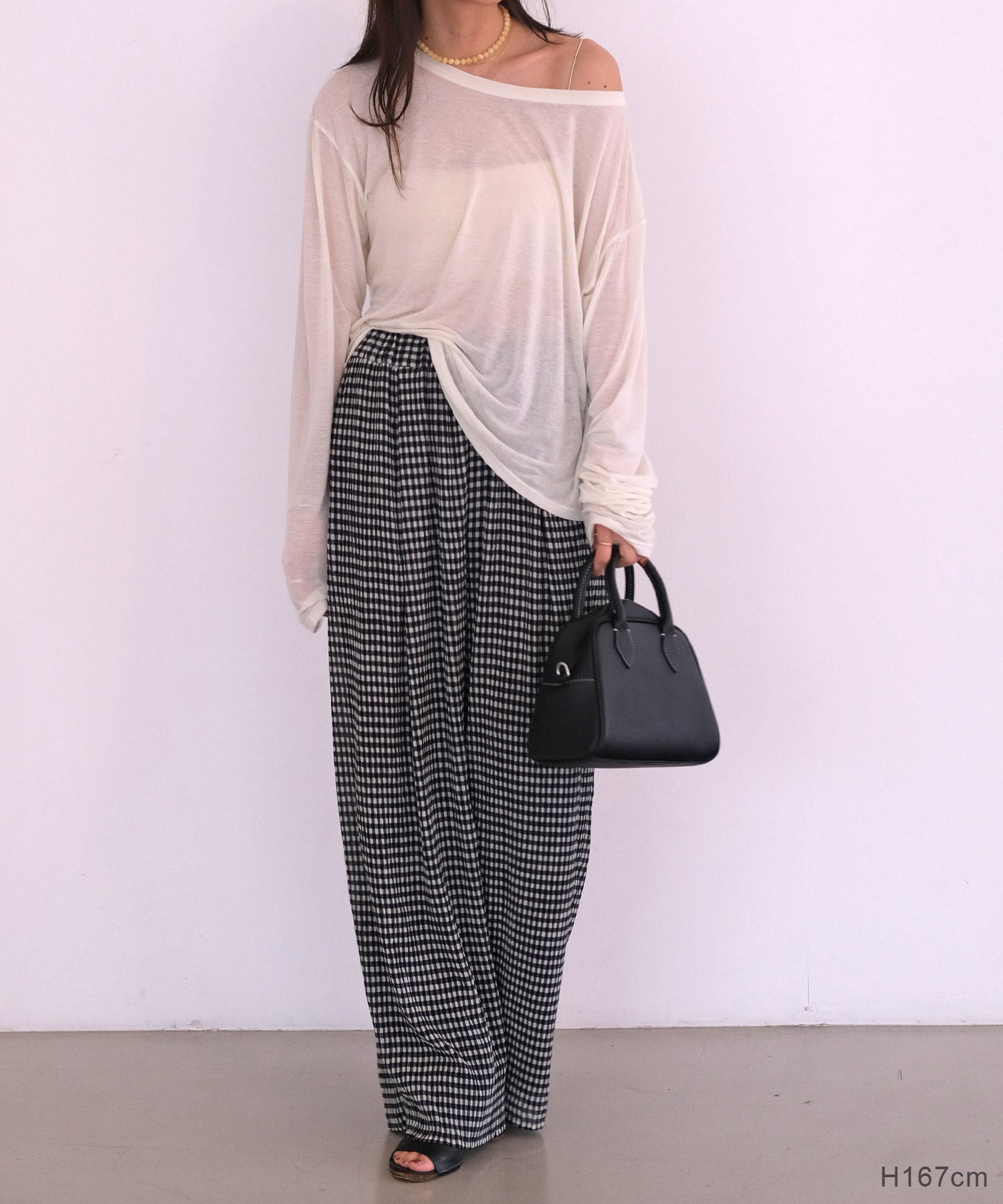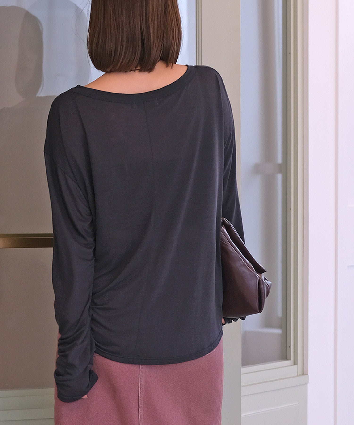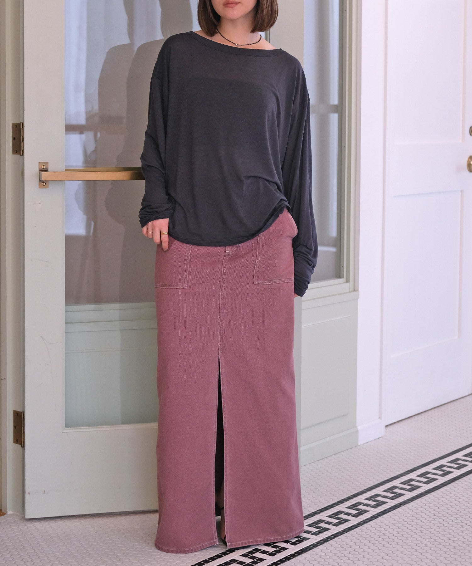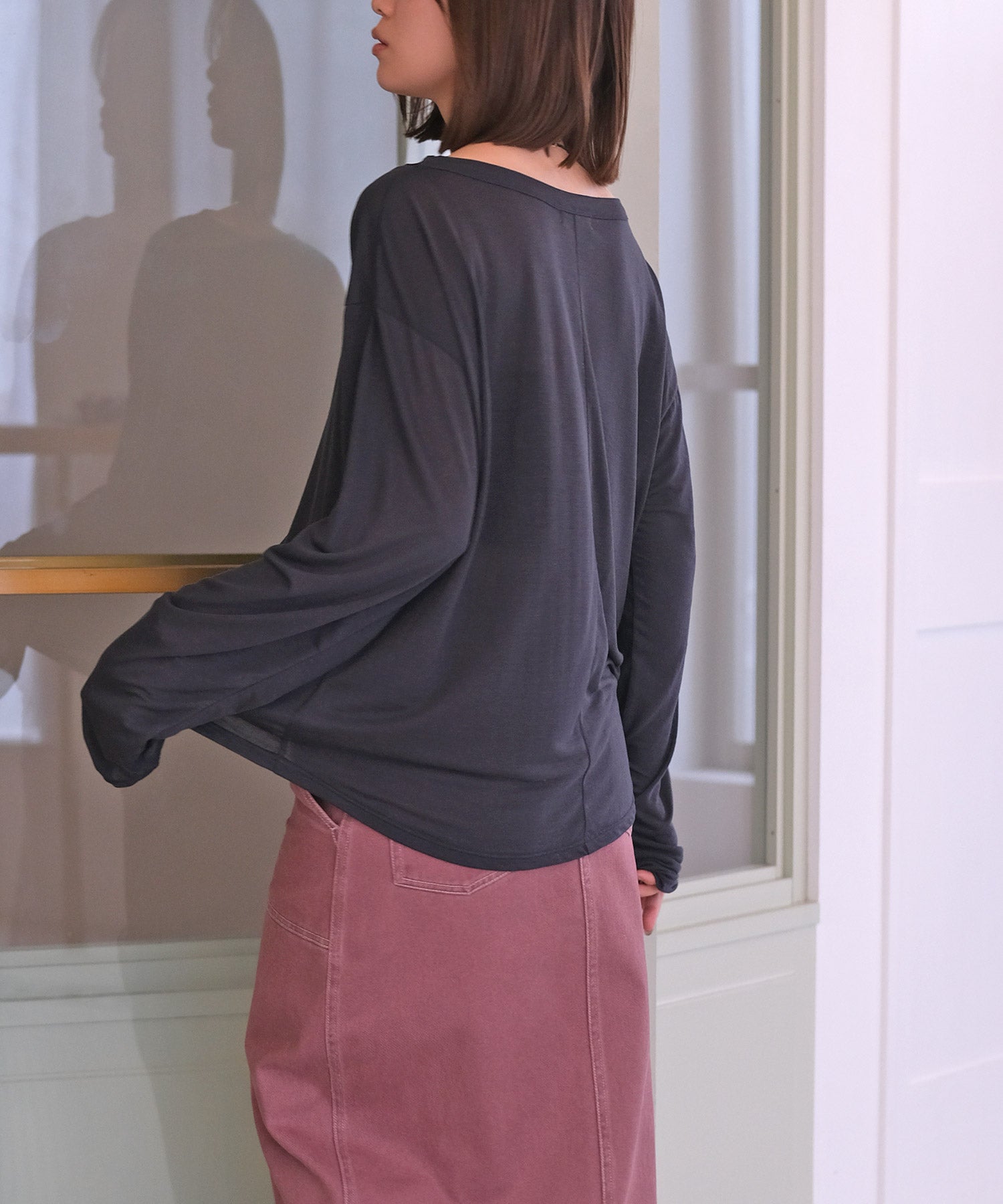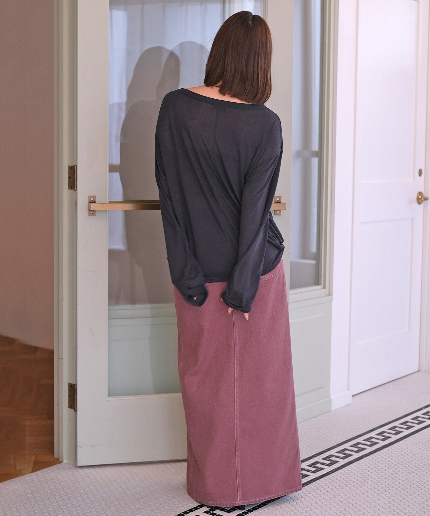 程よい透けがスタイリングに軽さをプラスし、抜け感のある大人のリラックススタイルを演出するロングTシャツ。