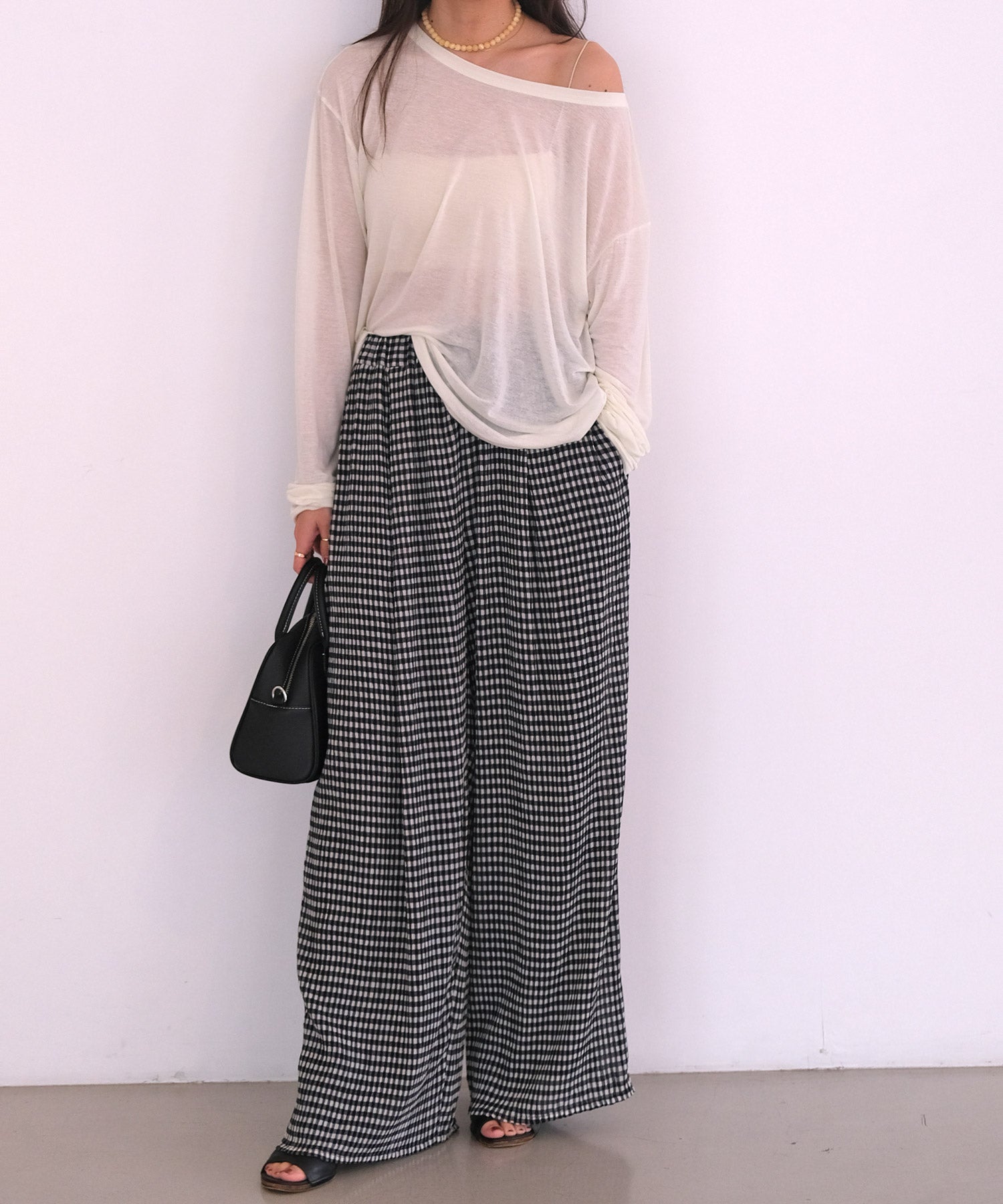 リラクシーさがありつつも女性らしさをプラスし、きれいめボトムスとも相性のいい一枚です。