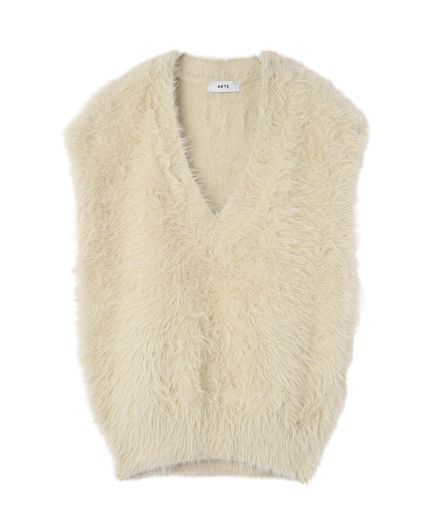 毛足の長いシャギーヤーンを使用した、シーズンムード高まるニットベスト。