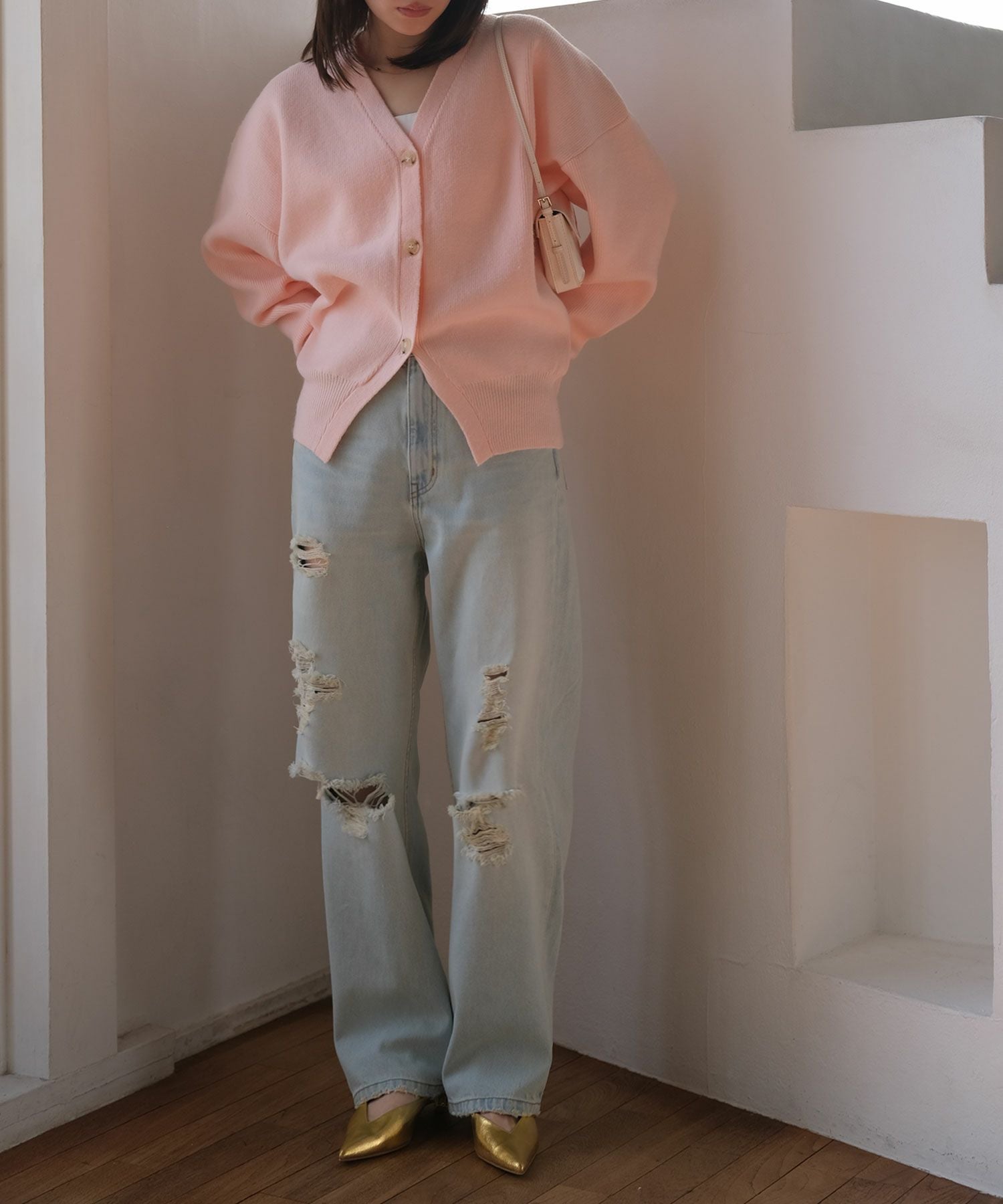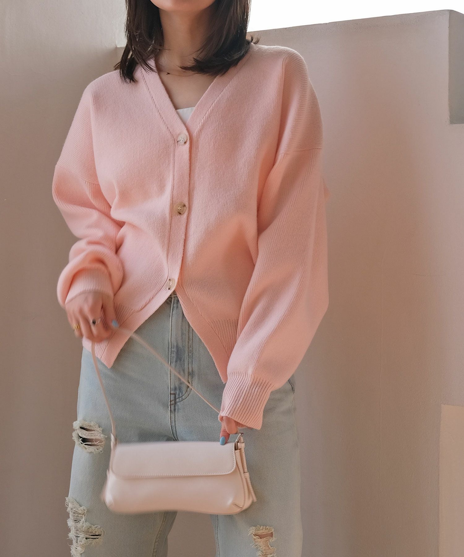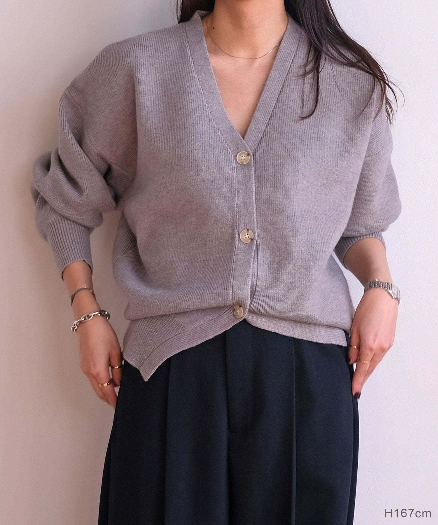 ふっくらとした肉厚な編み地とメリハリのあるシルエットが魅力のニットカーディガン