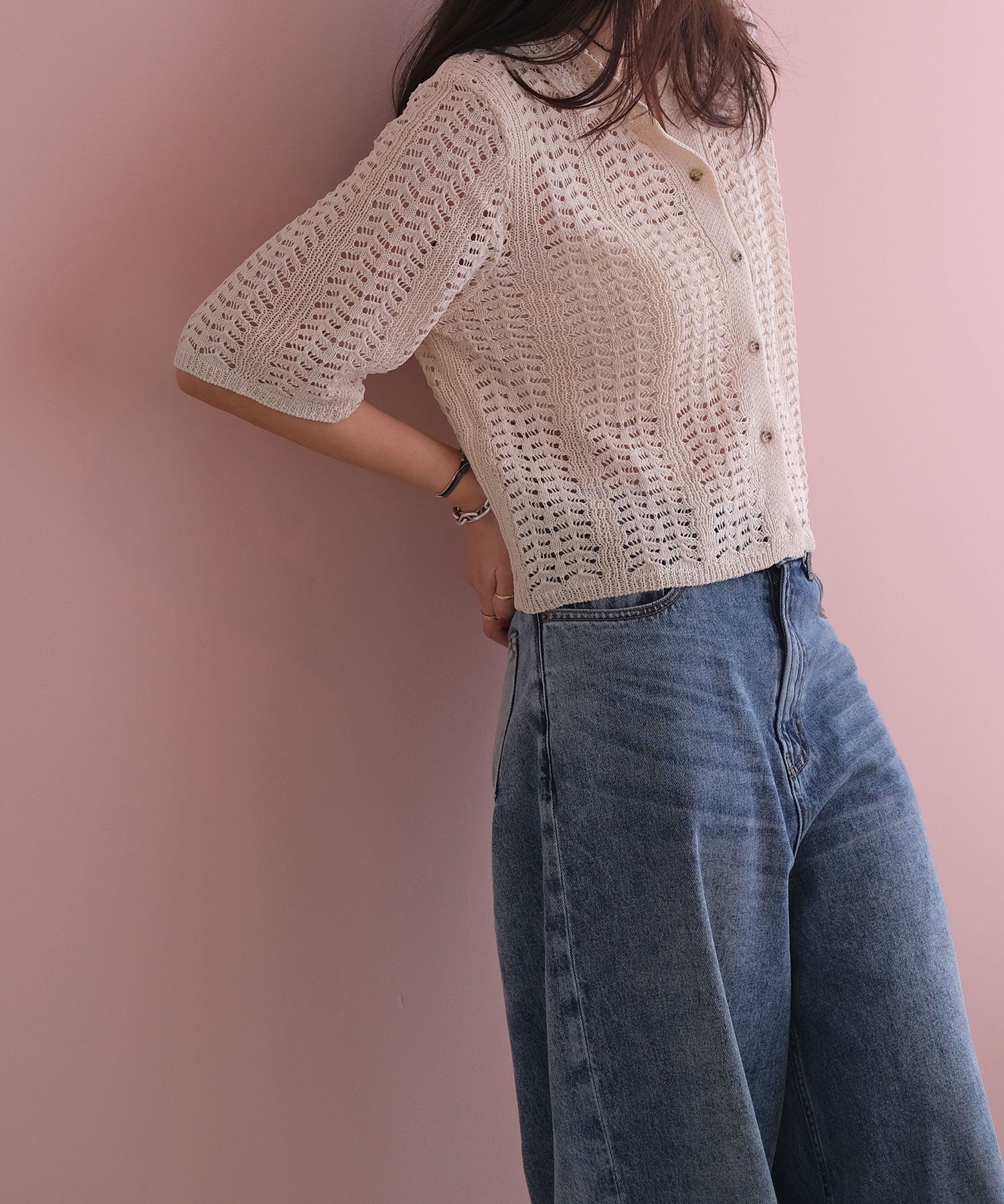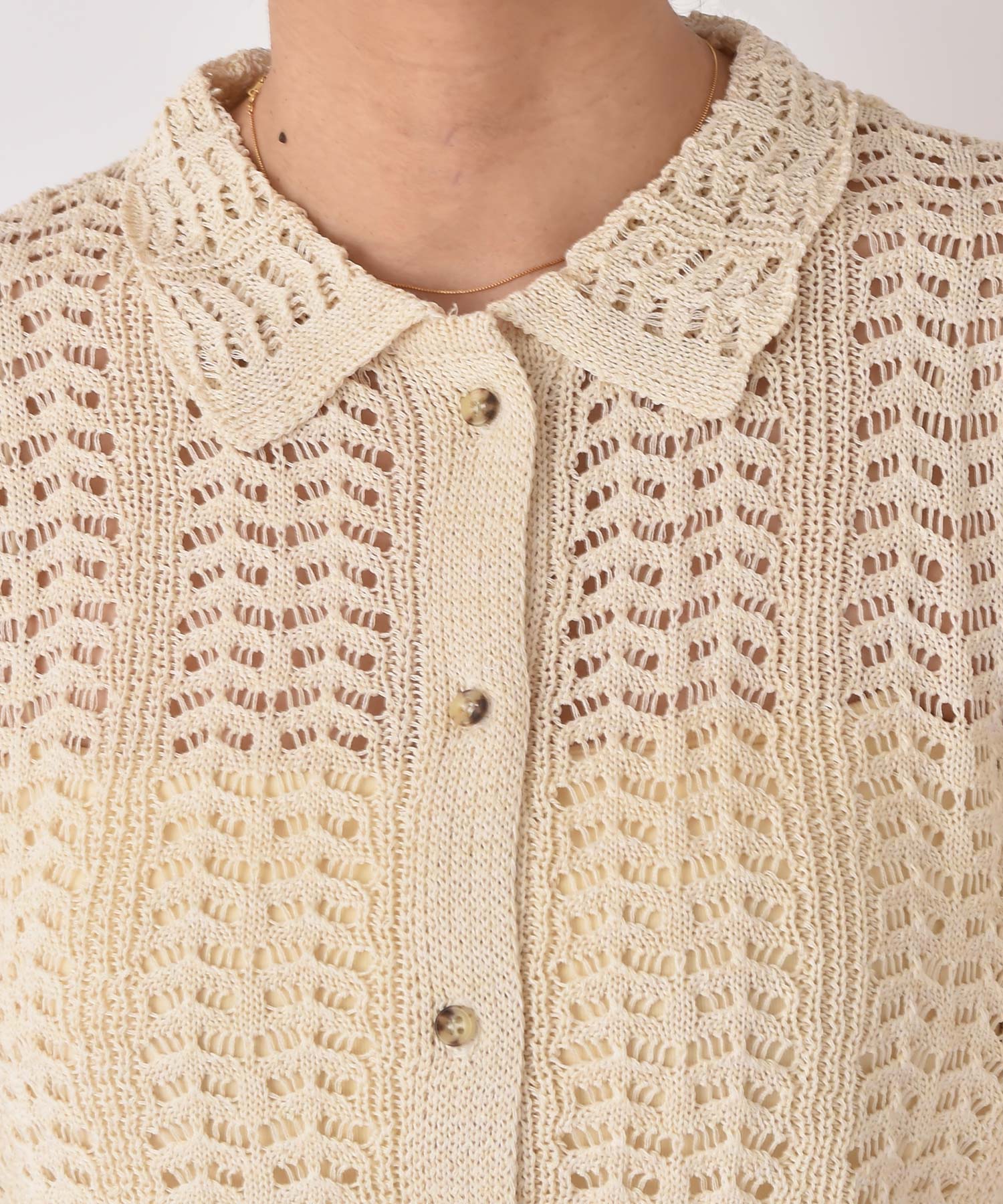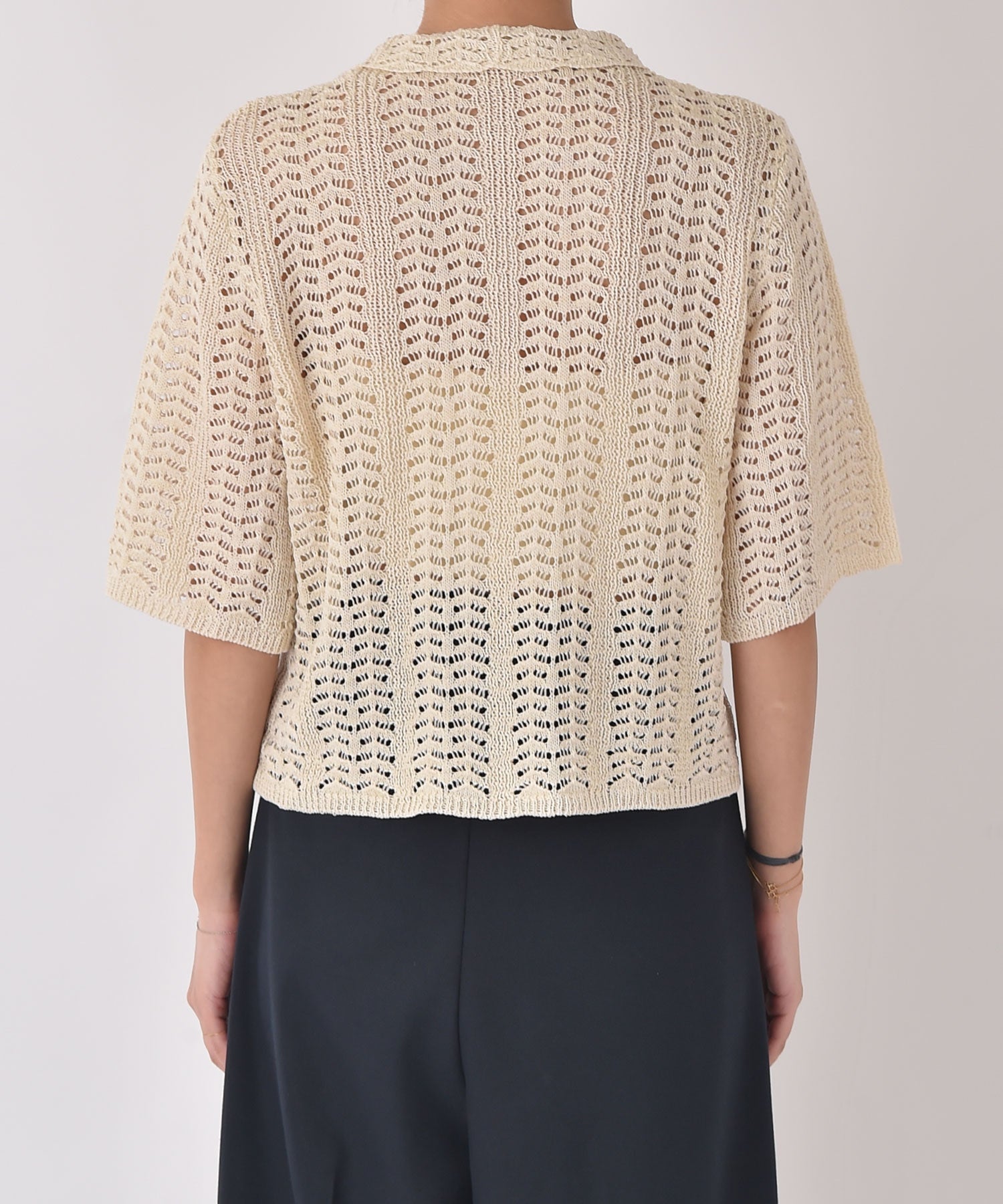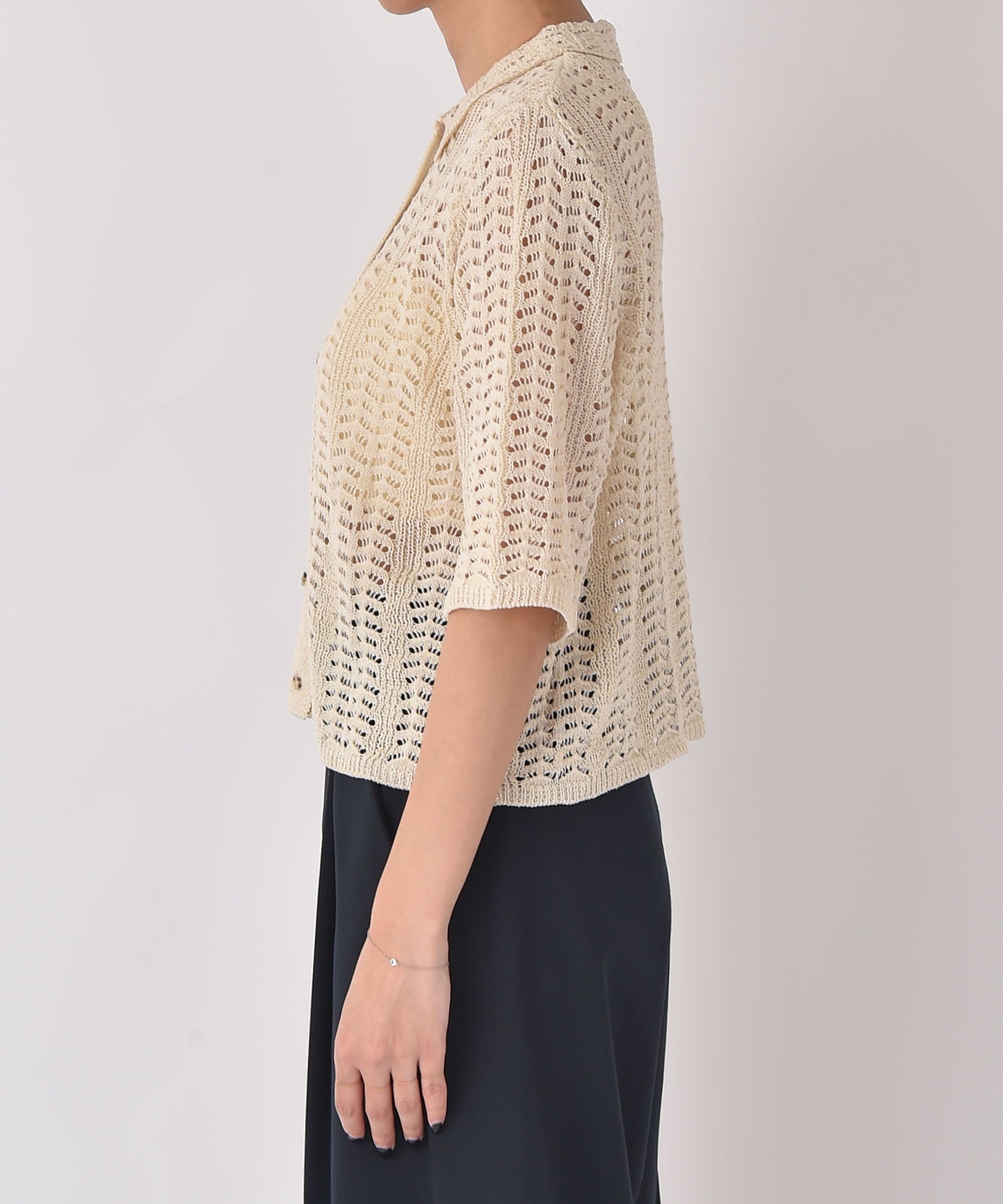 清涼感のある糸を使用し、透かし編みにすることで軽やかな抜け感を演出してくれます。