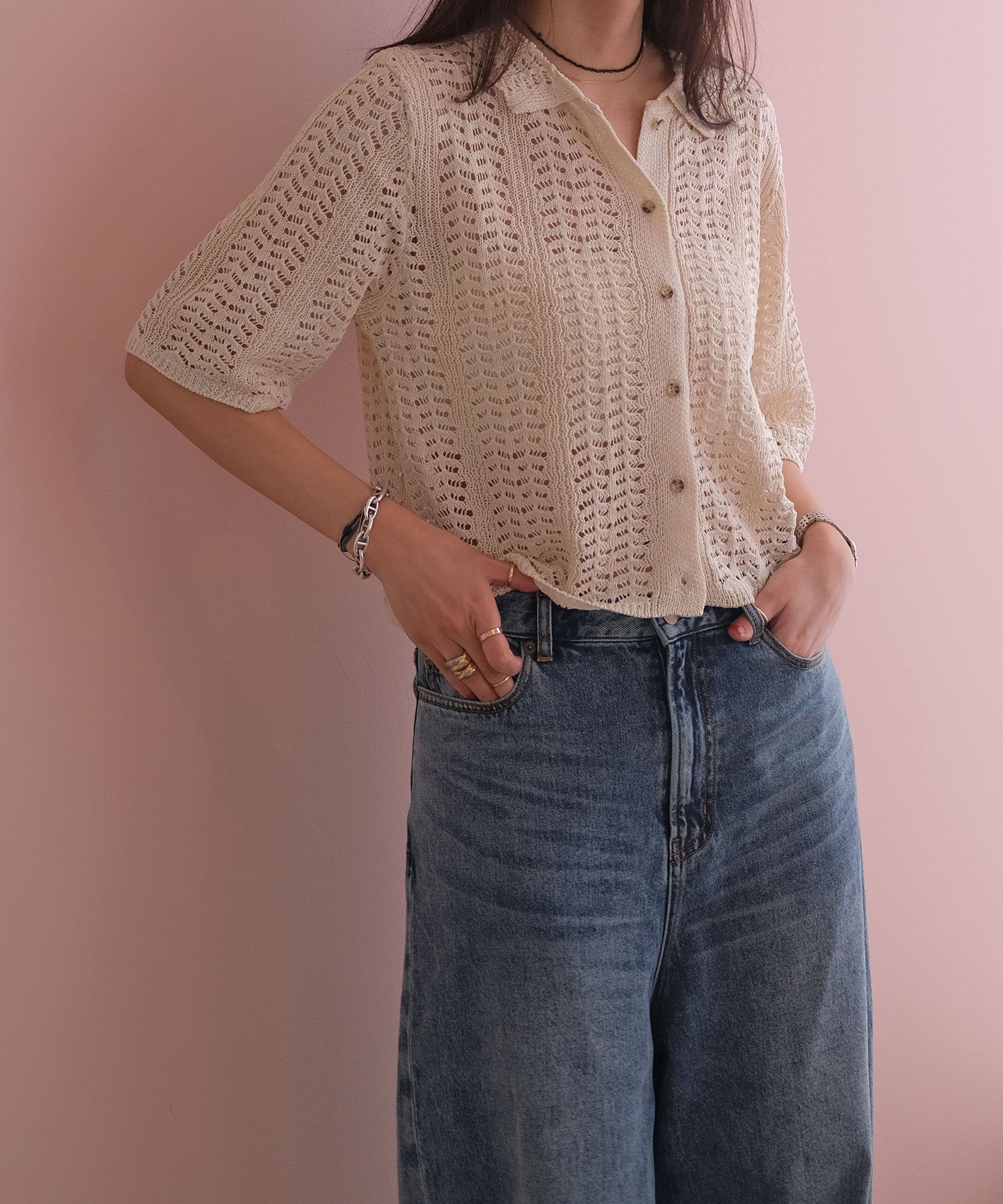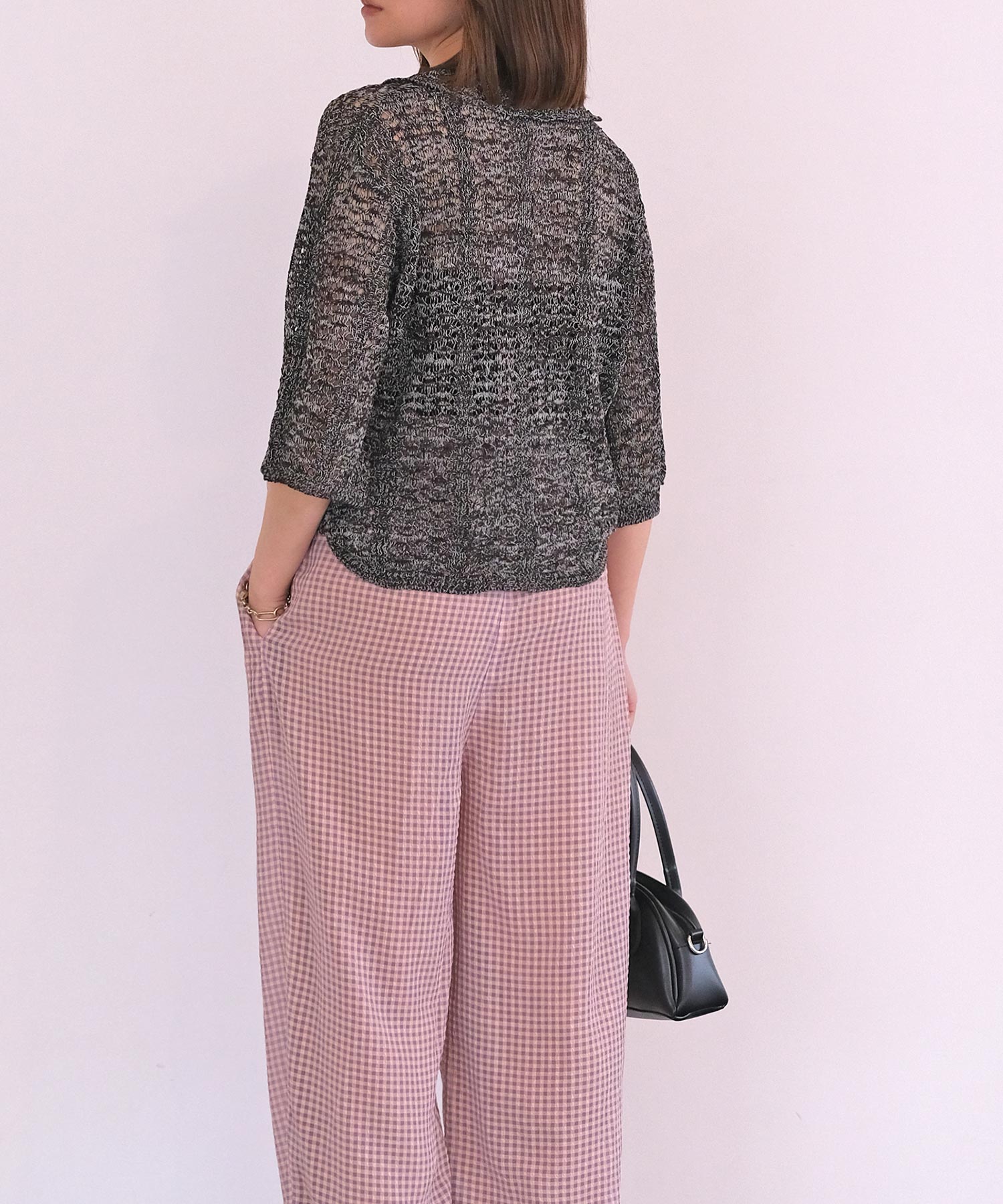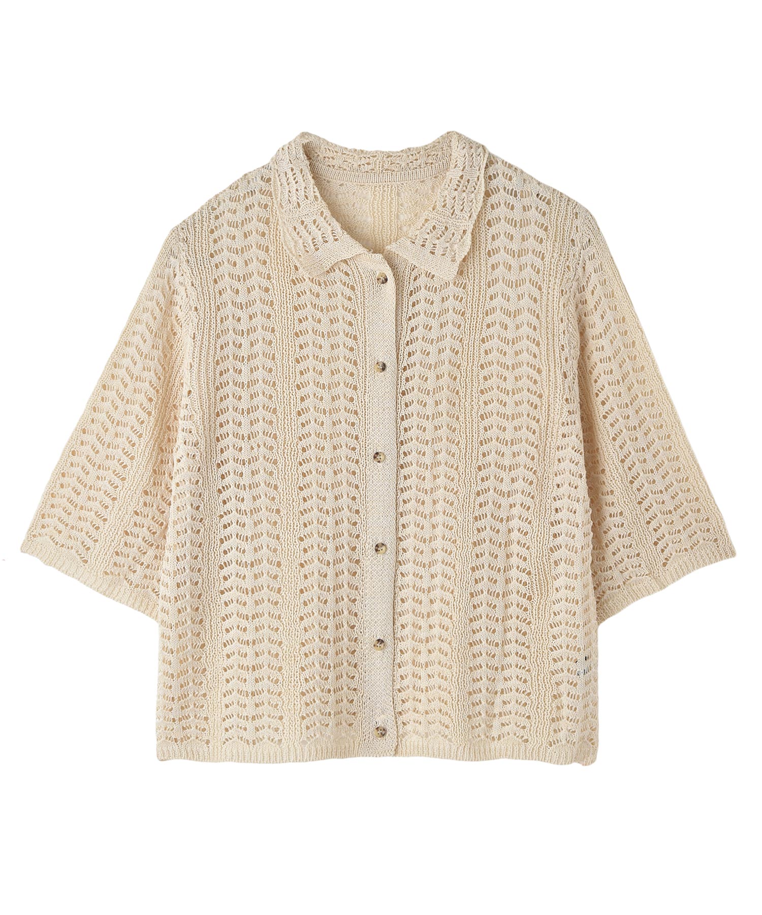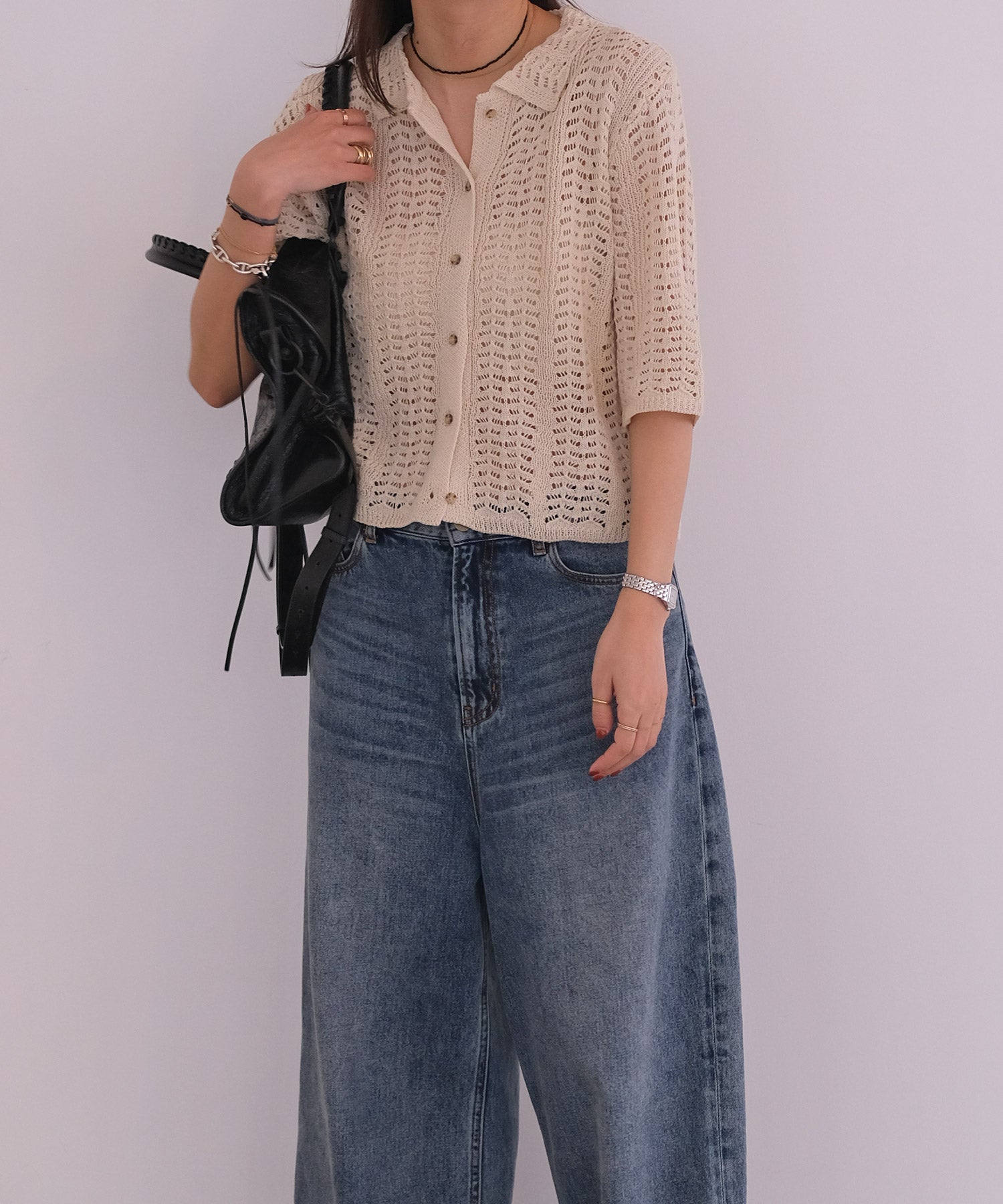 清涼感のある糸を使用し、透かし編みにすることで軽やかな抜け感を演出してくれます。
