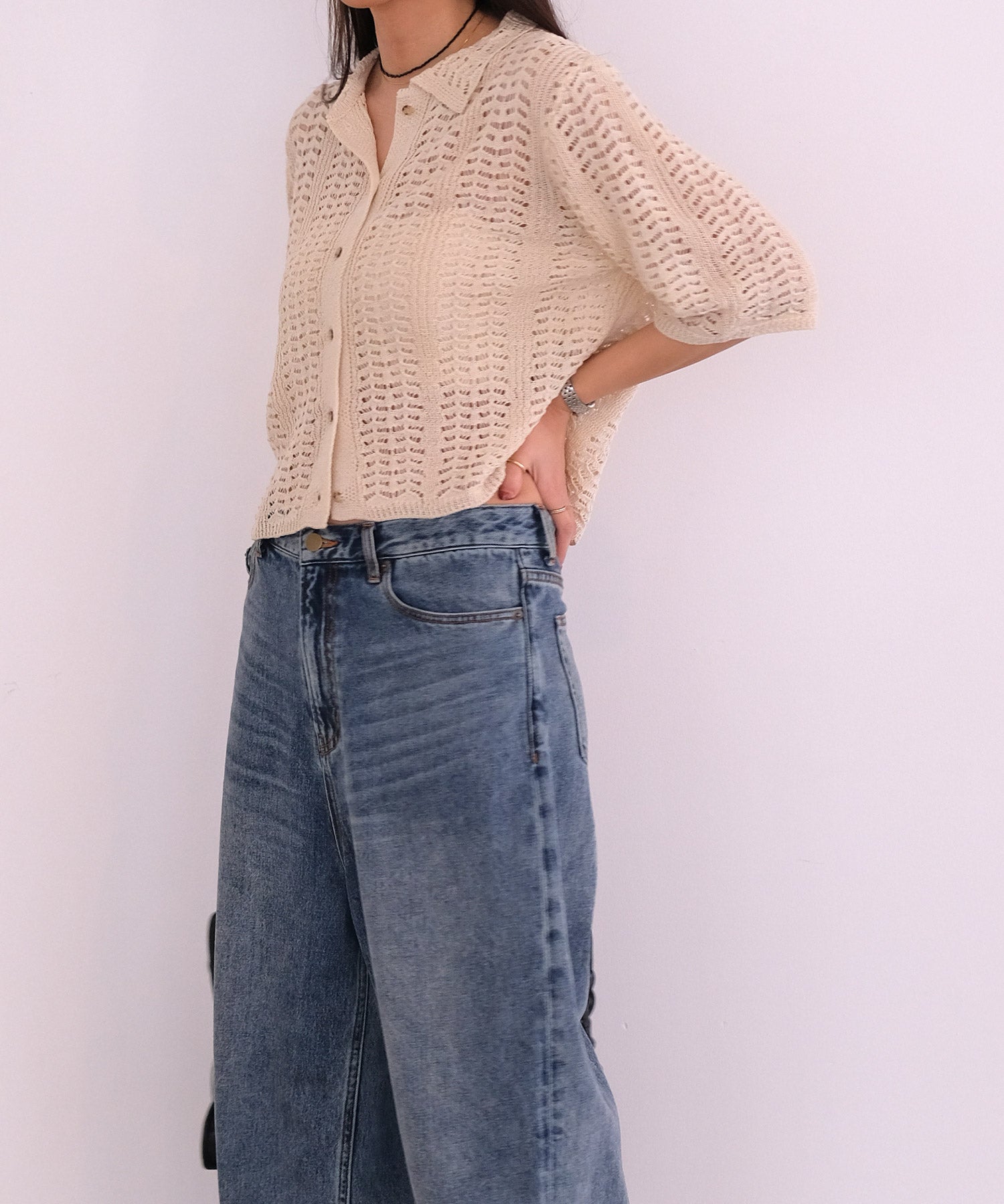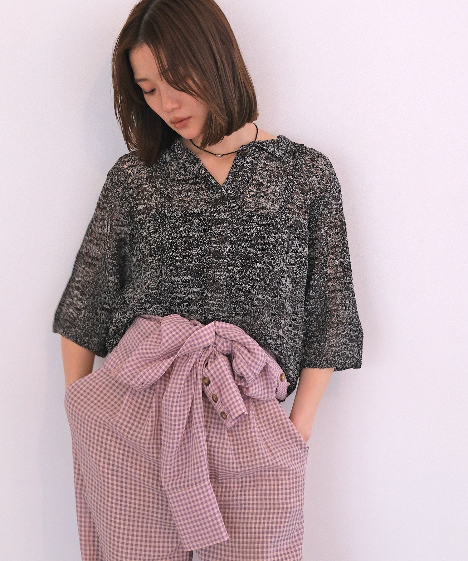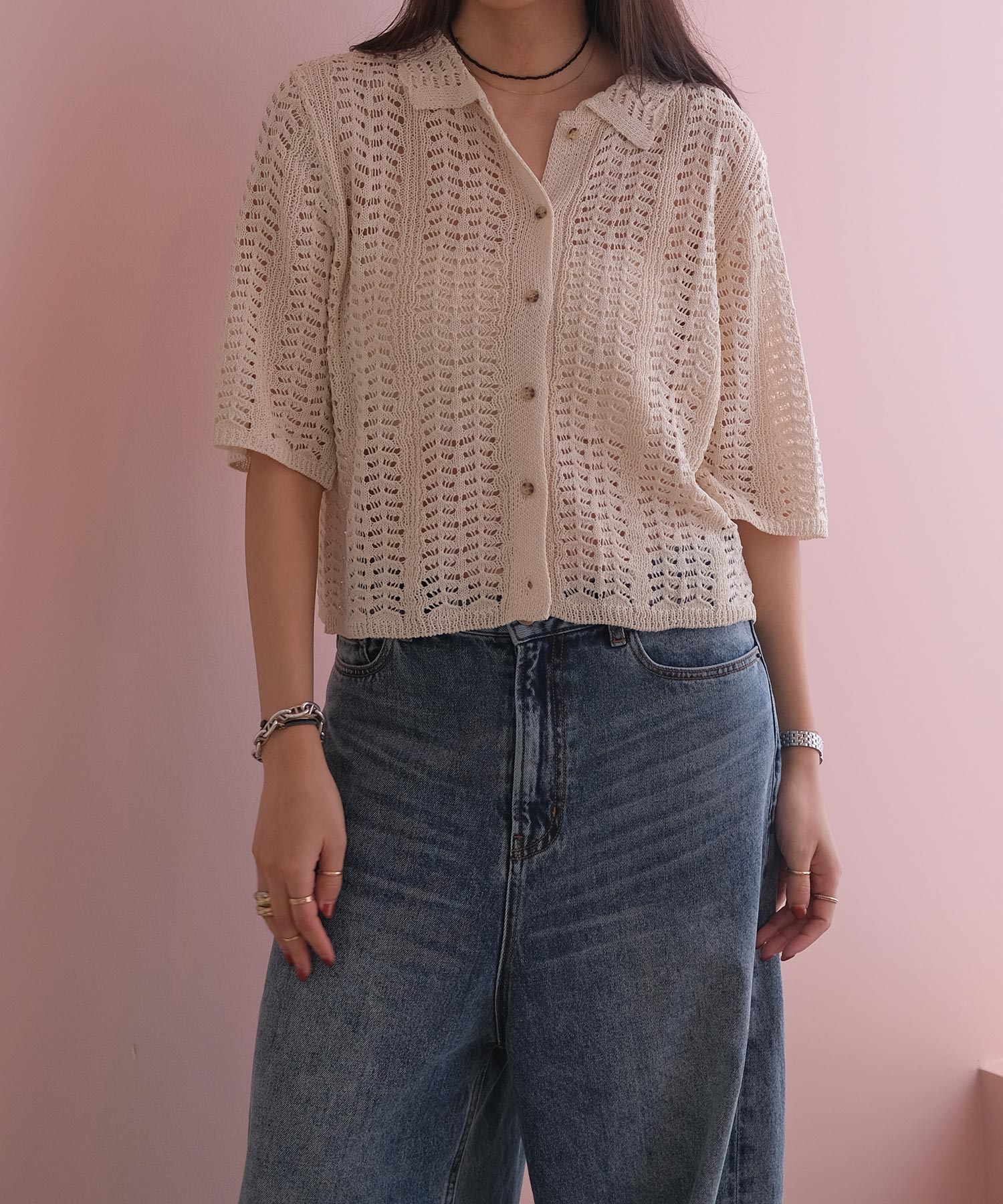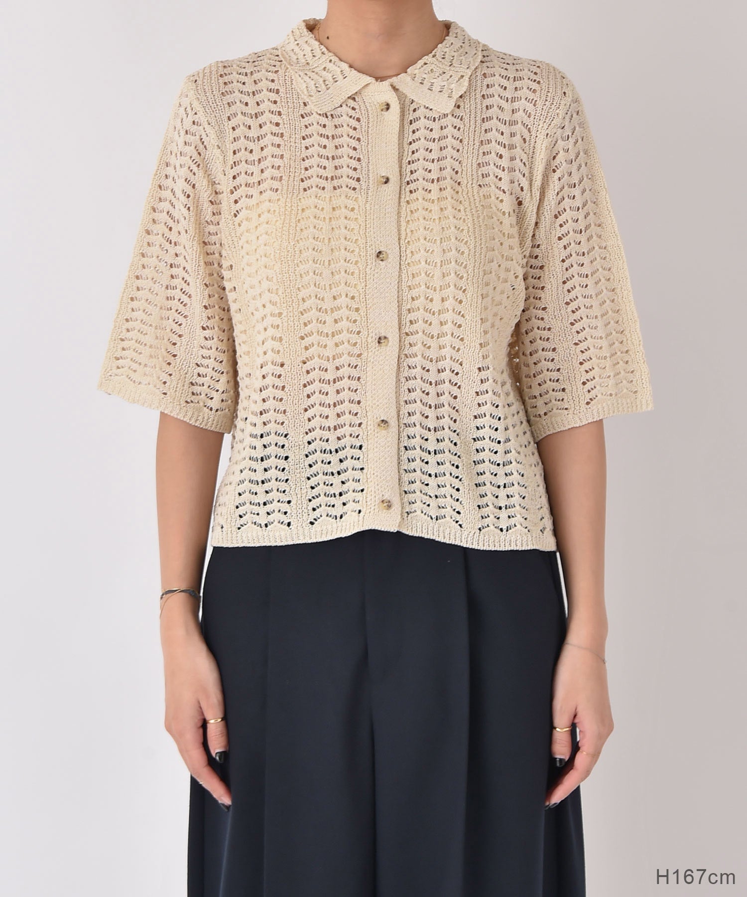 清涼感のある糸を使用し、透かし編みにすることで軽やかな抜け感を演出してくれます。
