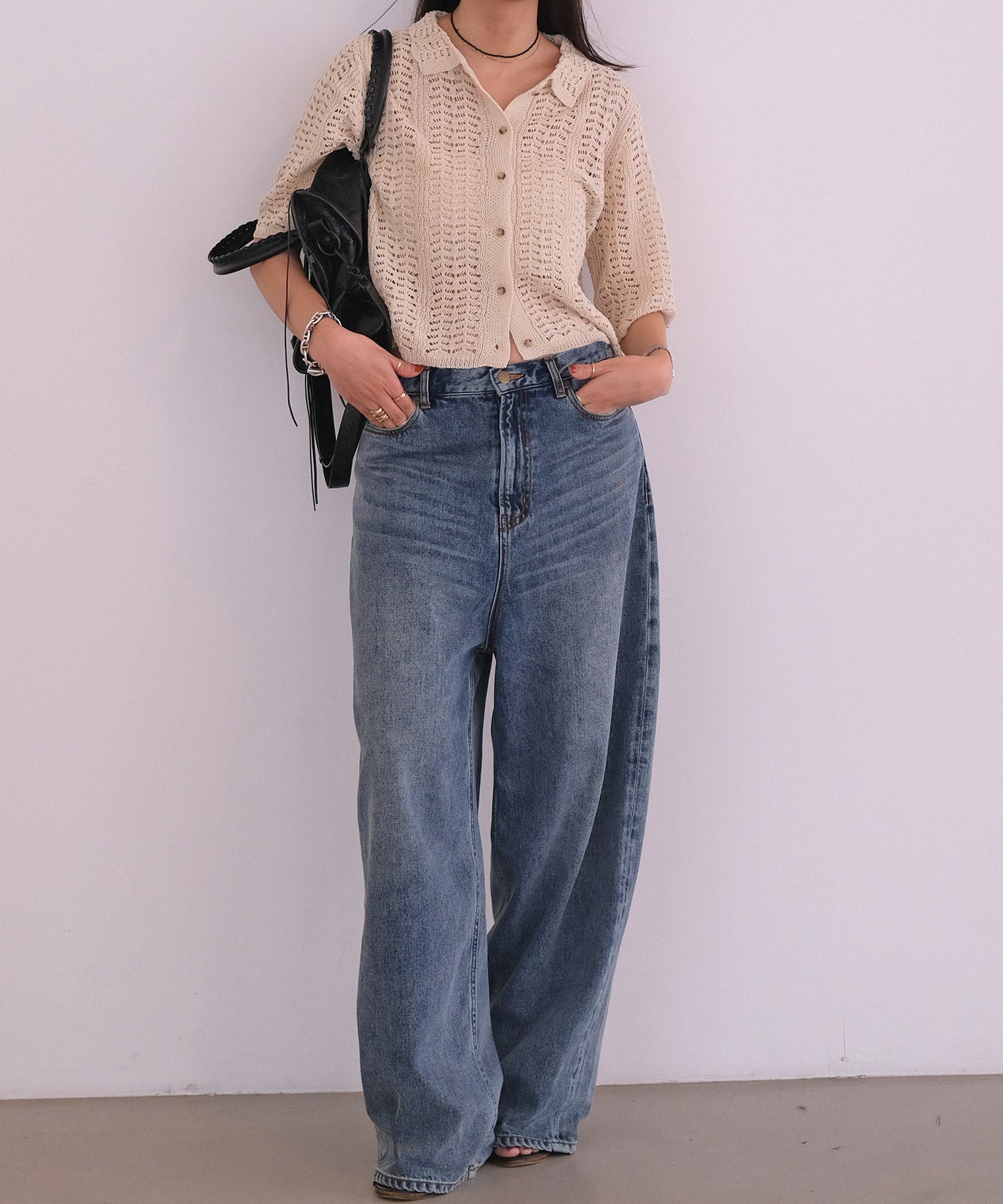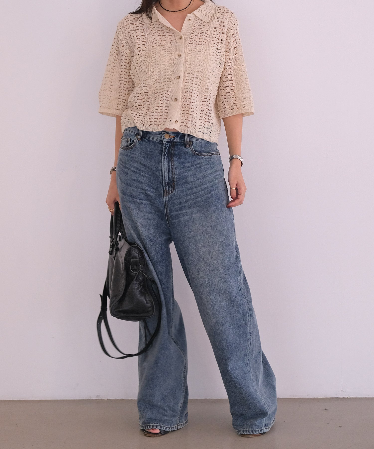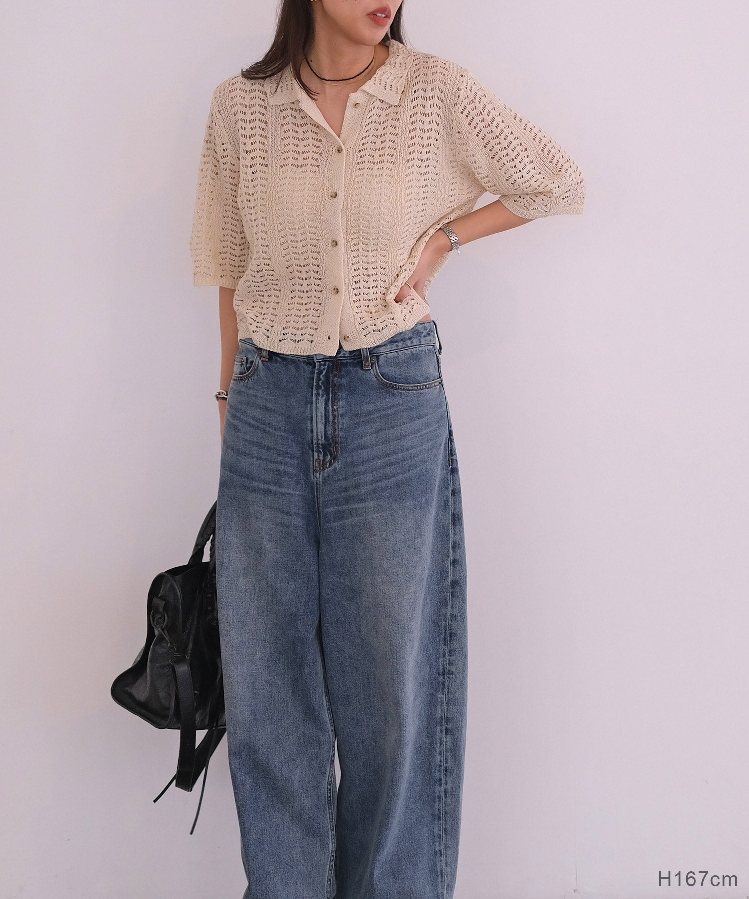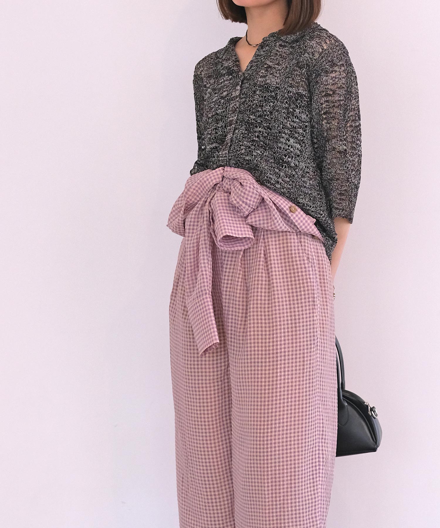 清涼感のある糸を使用し、透かし編みにすることで軽やかな抜け感を演出してくれます。