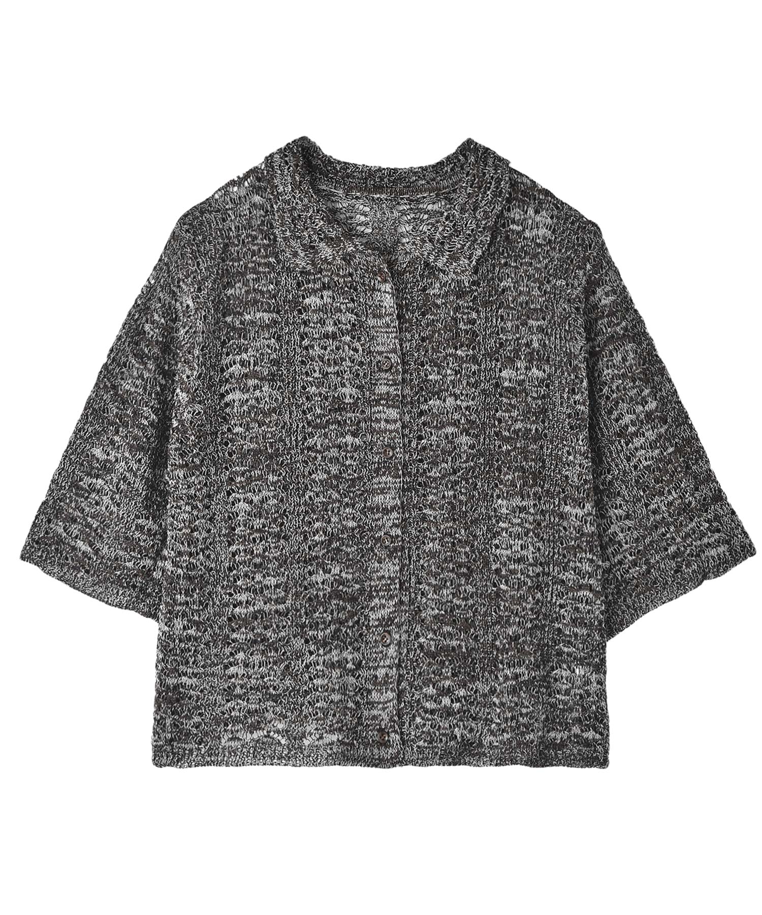 凹凸のある表面とミックス糸で奥行きが生まれ、シンプルなボトムスと合わせてもスタイリングが決まるアイテムです。