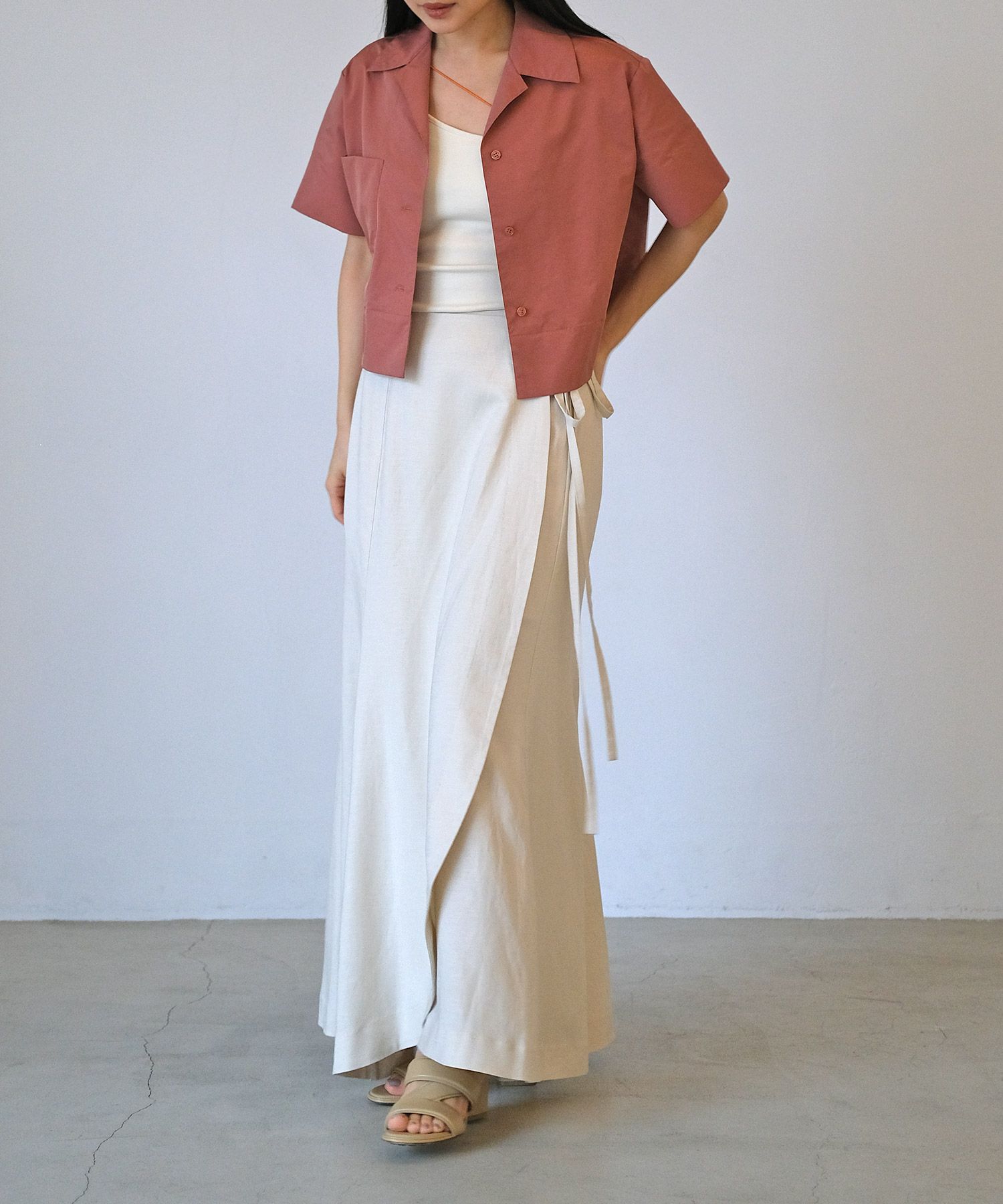 爽やかな夏らしいムードを感じる開襟デザインもポイント。