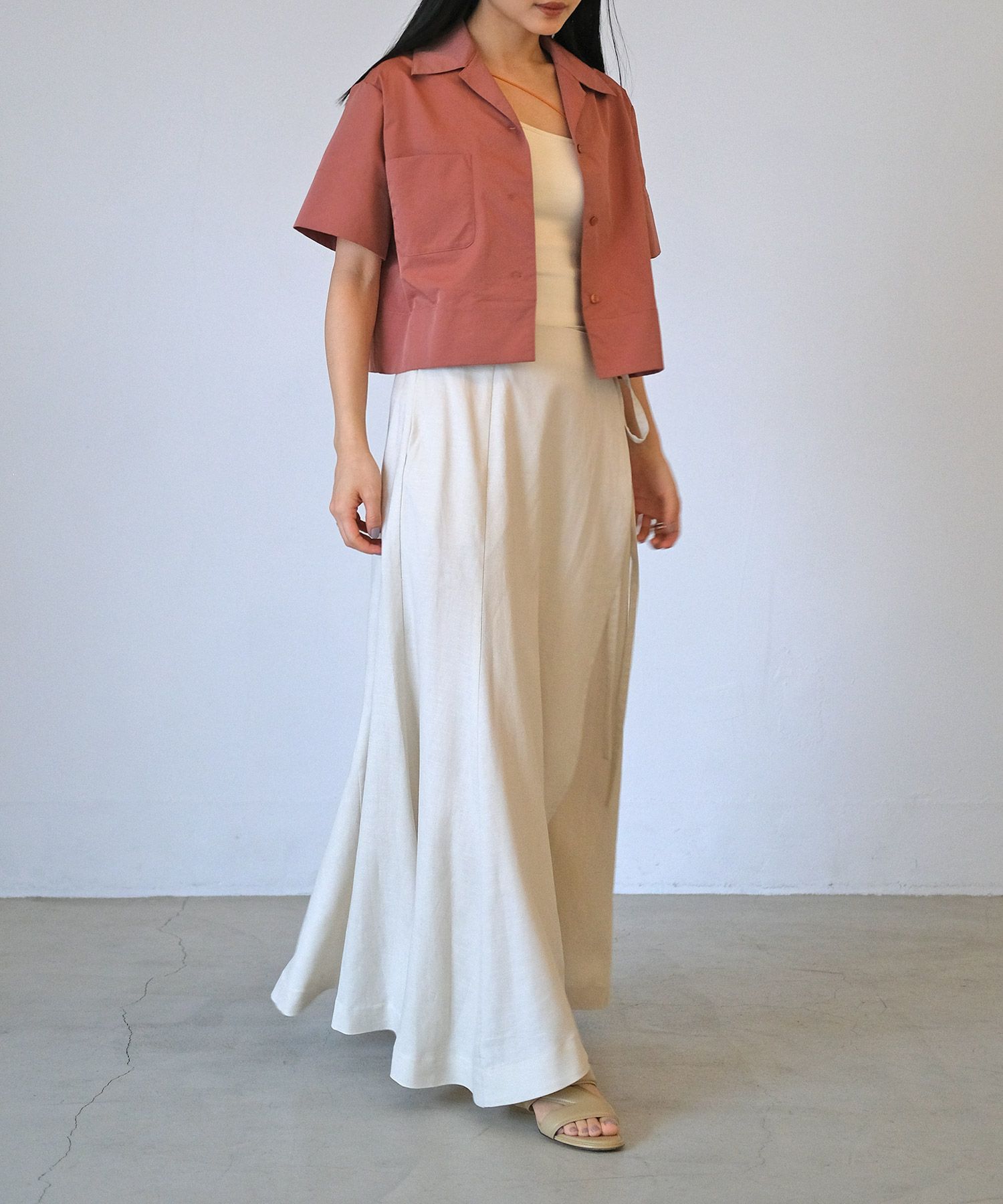 スッキリとしたクロップド丈がバランスよくまとめてくれつつ、目線も上がるのでさり気なくスタイルアップ効果も。