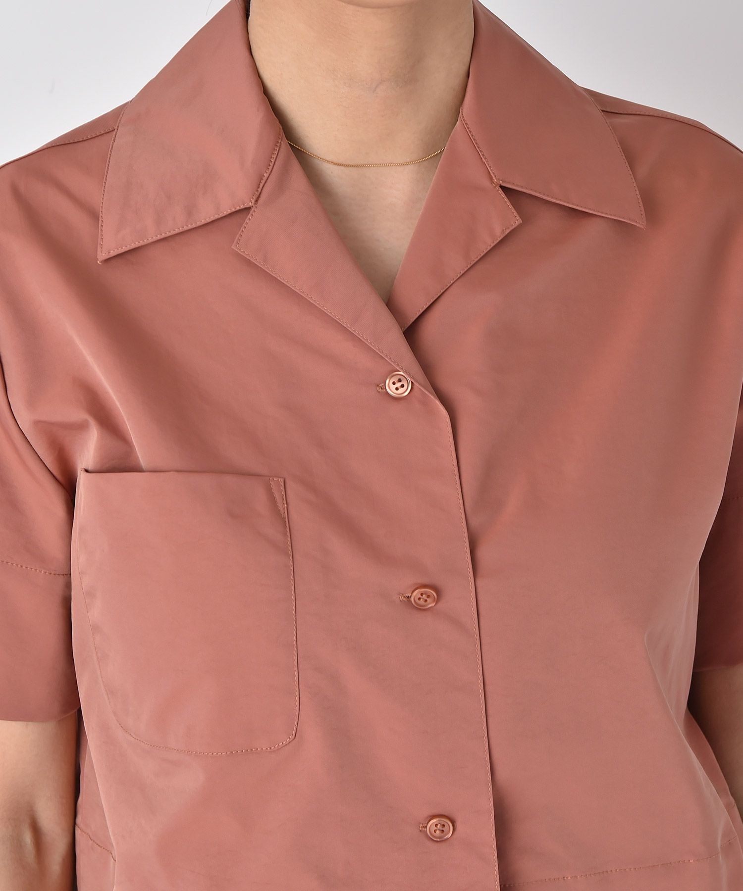 角度によってカラーが異なって見えるシャンブレー素材を使用したショートシャツ。