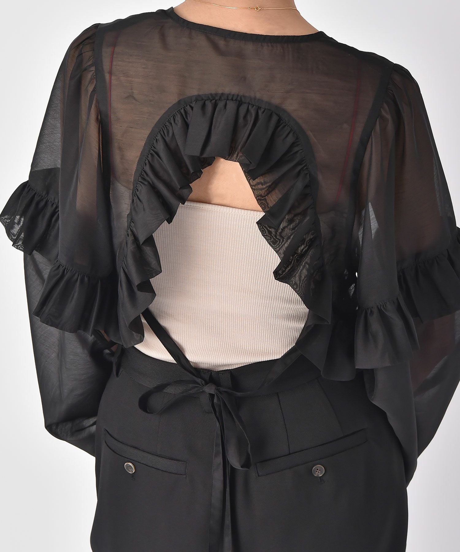バックオープンフリルボレロ