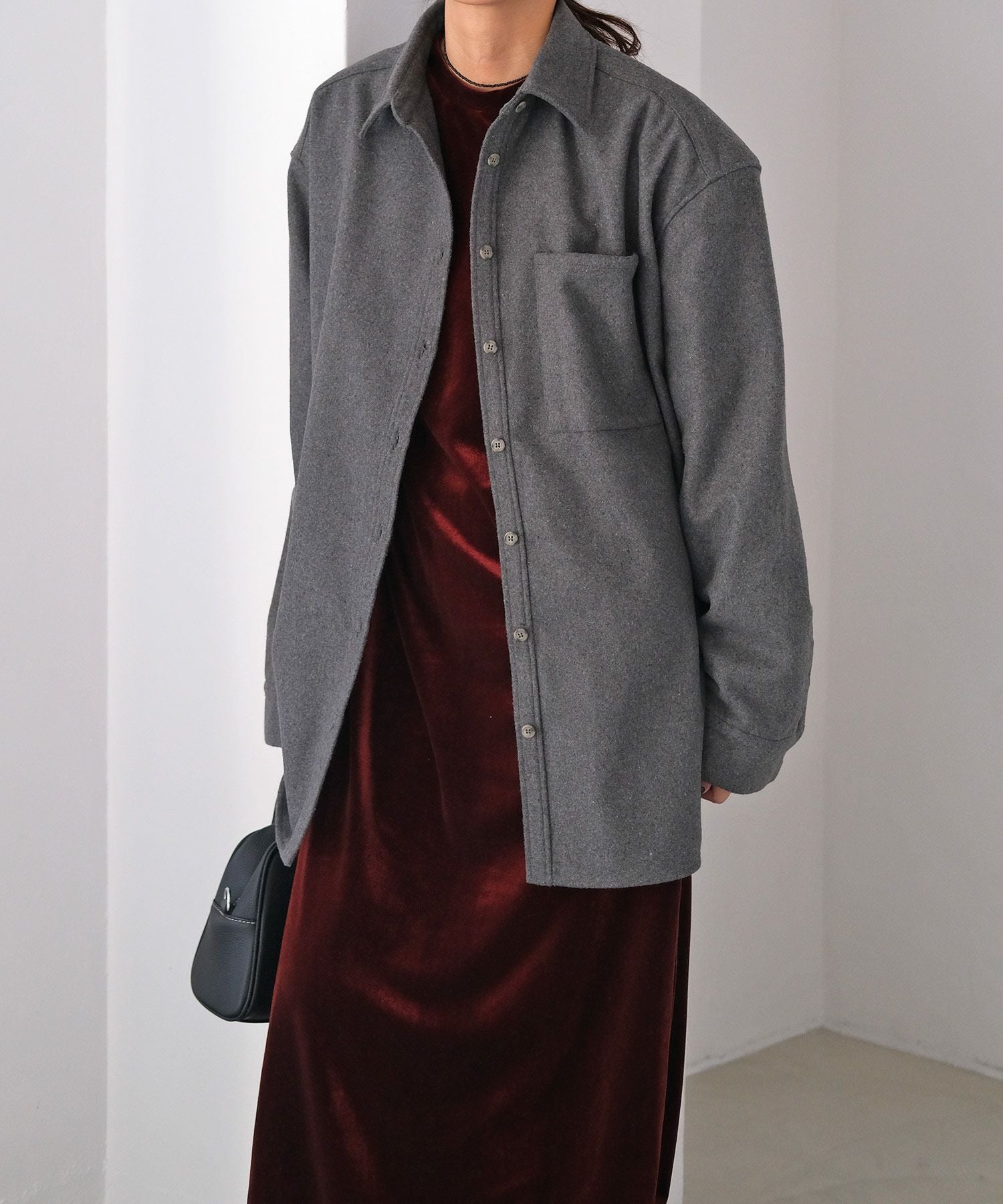 ウール混のやや厚手の生地を使用したシャツジャケット。